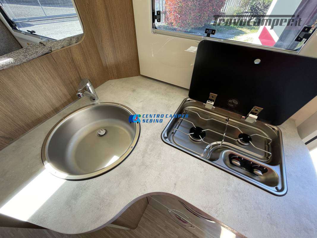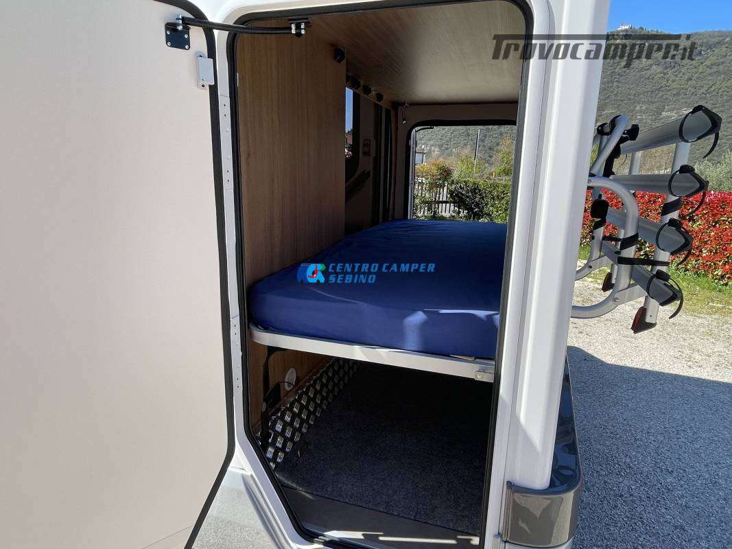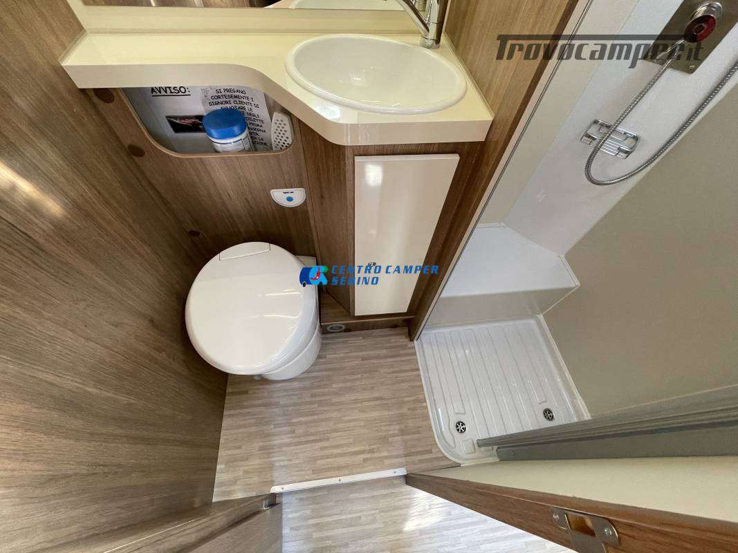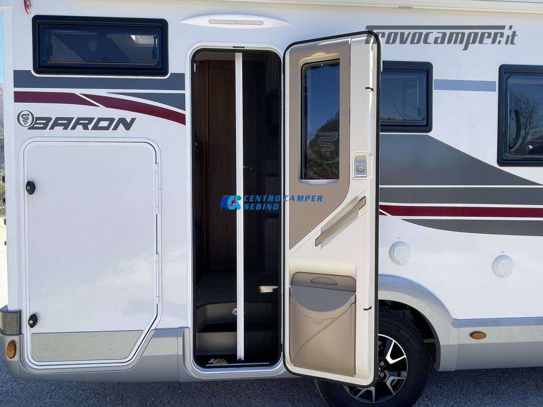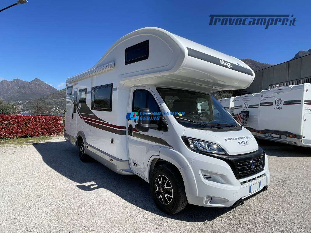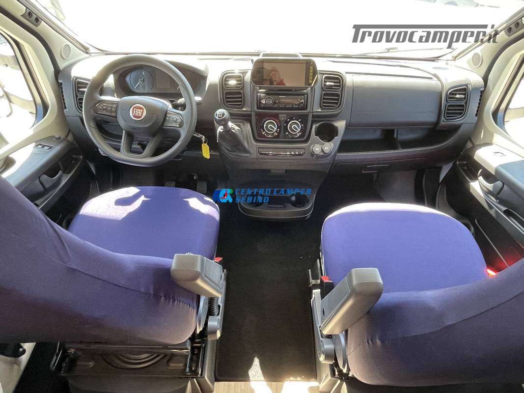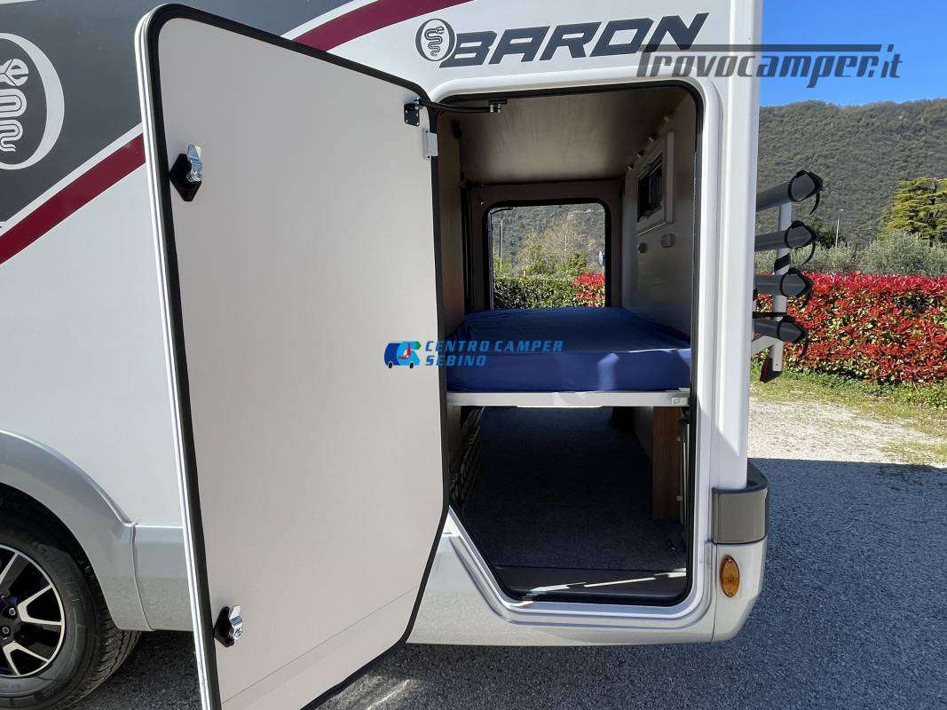 Noleggio Elnagh Baron 22 camper mansardato con 7 posti letto e 7 posti viaggio omologati, doppia dinette affiancata (doppio tavolino) e letti a castello trasversali (gavone a volume variabile).