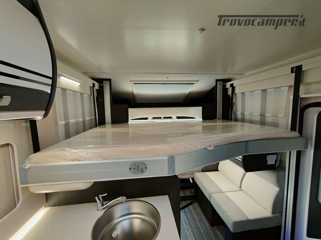 SEMINTEGRALE CON LETTO BASCULANTE ELETTRICO IN DINETTE E MATRIMONIALE TRASVERSALE IN CODA