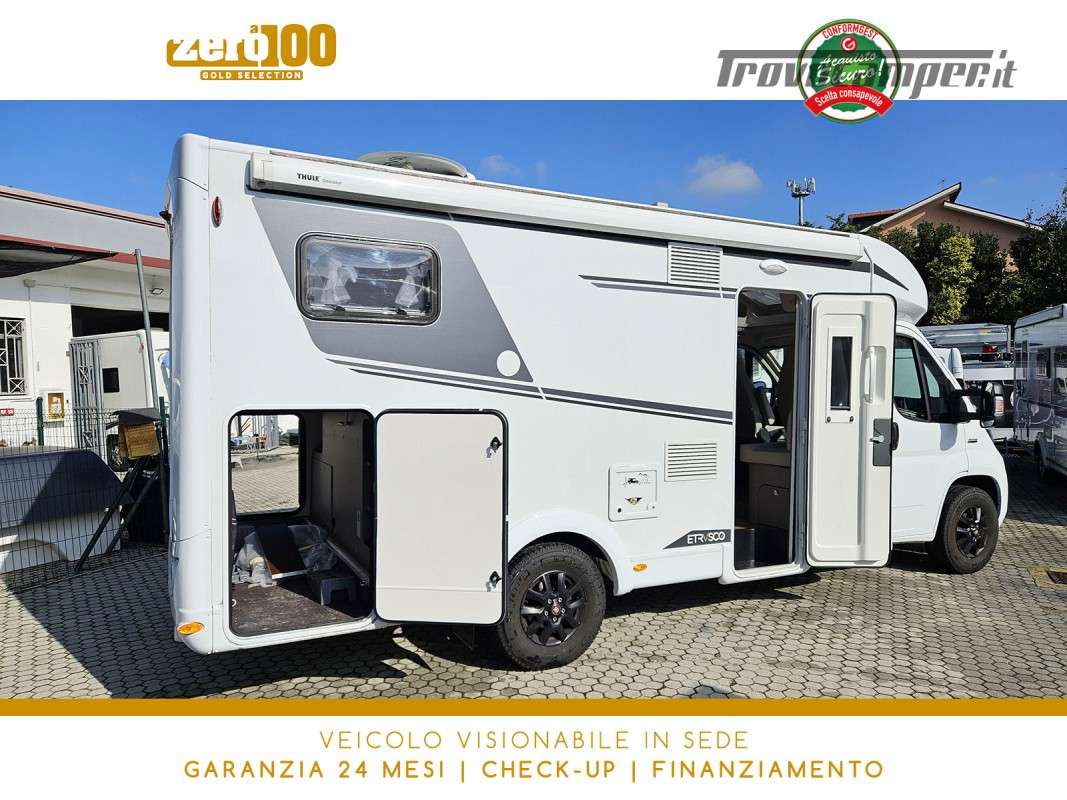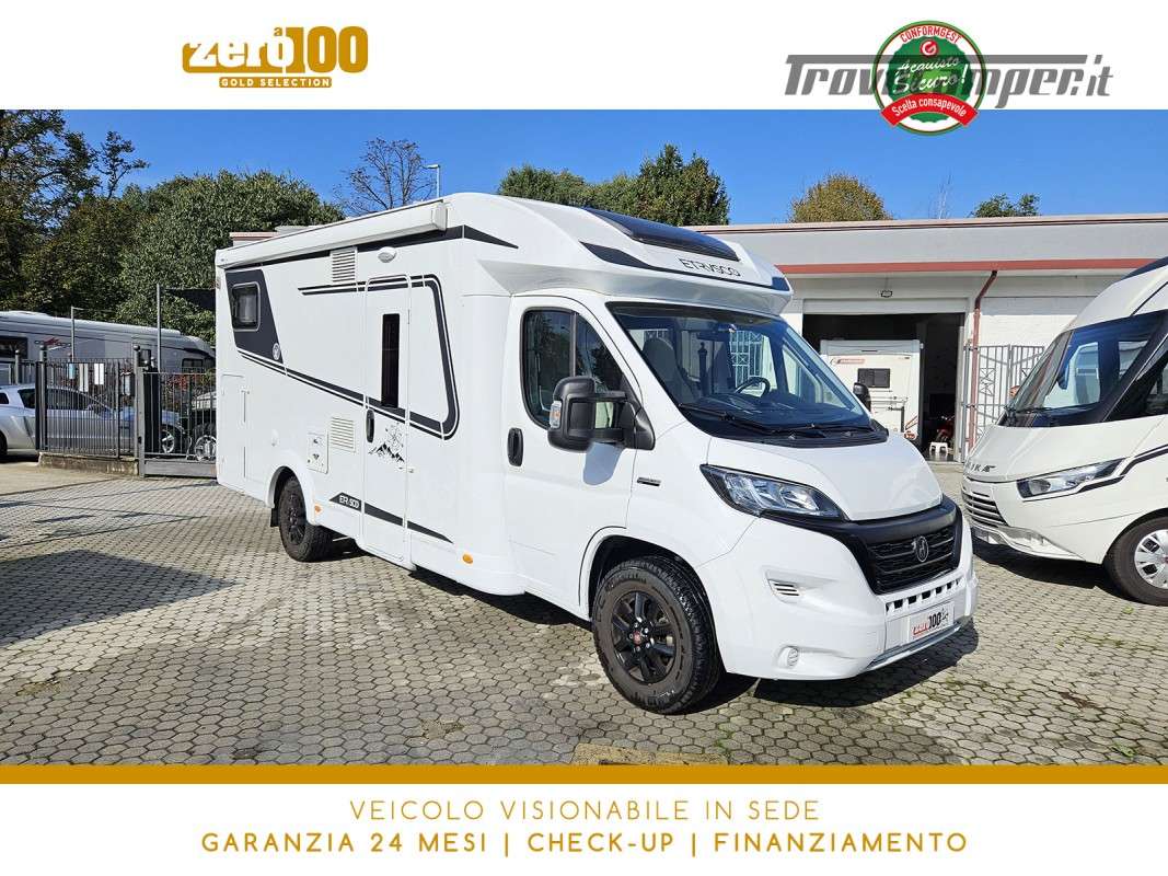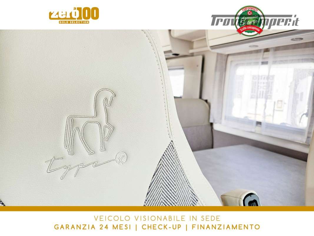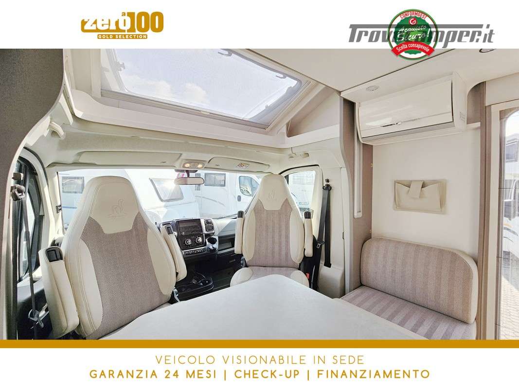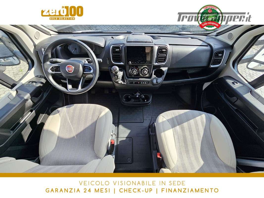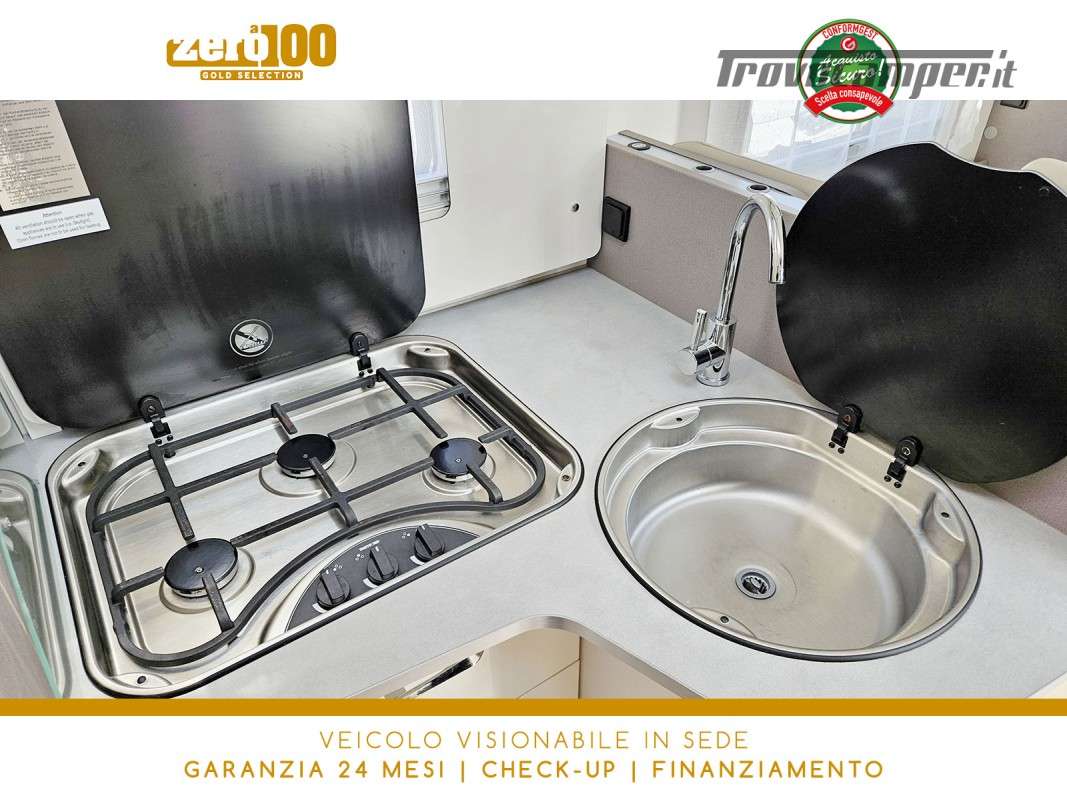 Letto matrimoniale trasversale in coda - Mezza dinette con sedili cabina girevoli trasformabile in letto singolo - Letto basculante anteriore elettrico - Cucina a L 3 fuochi con frigorifero trivalente con cella frigorifera separata - Bagno diviso in due zone con separazione doccia - Garage