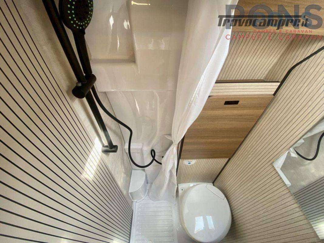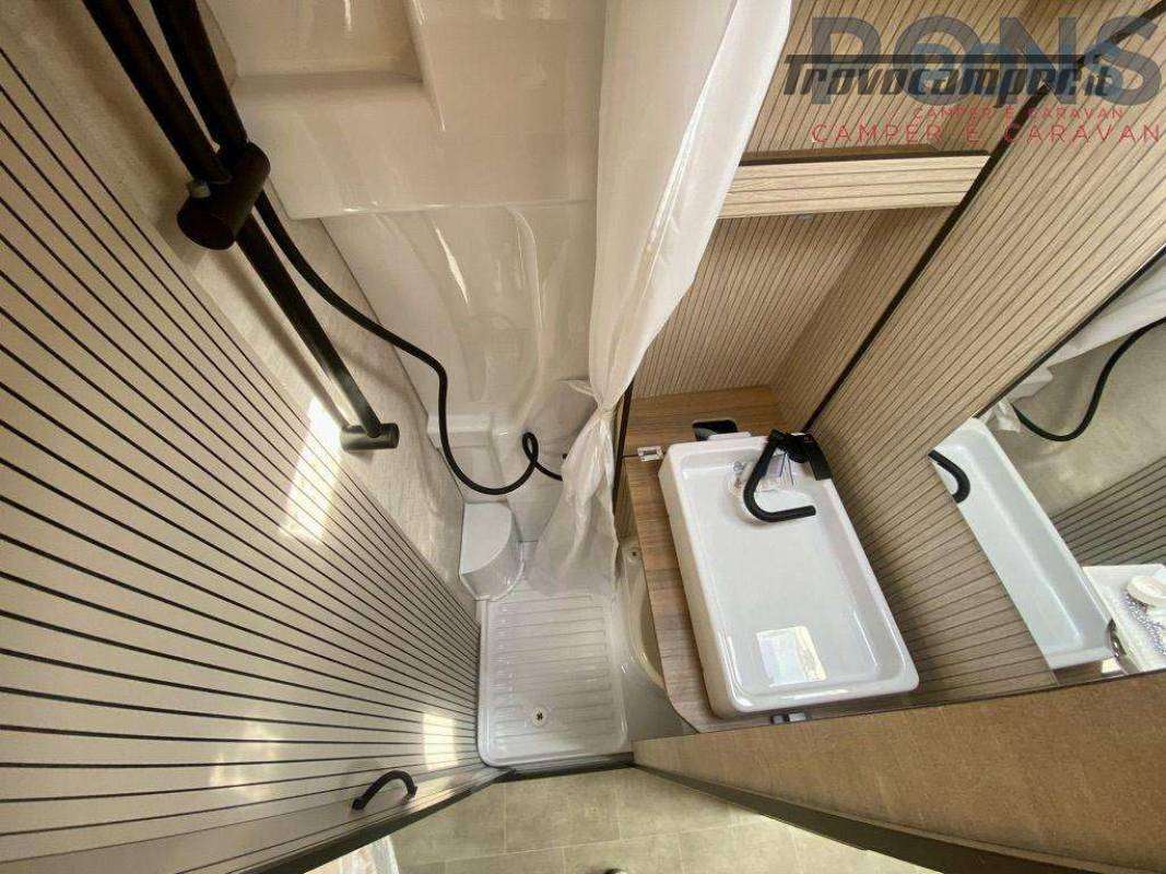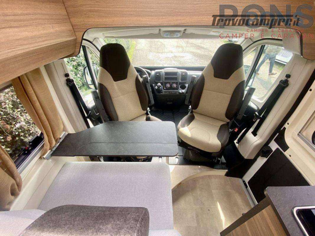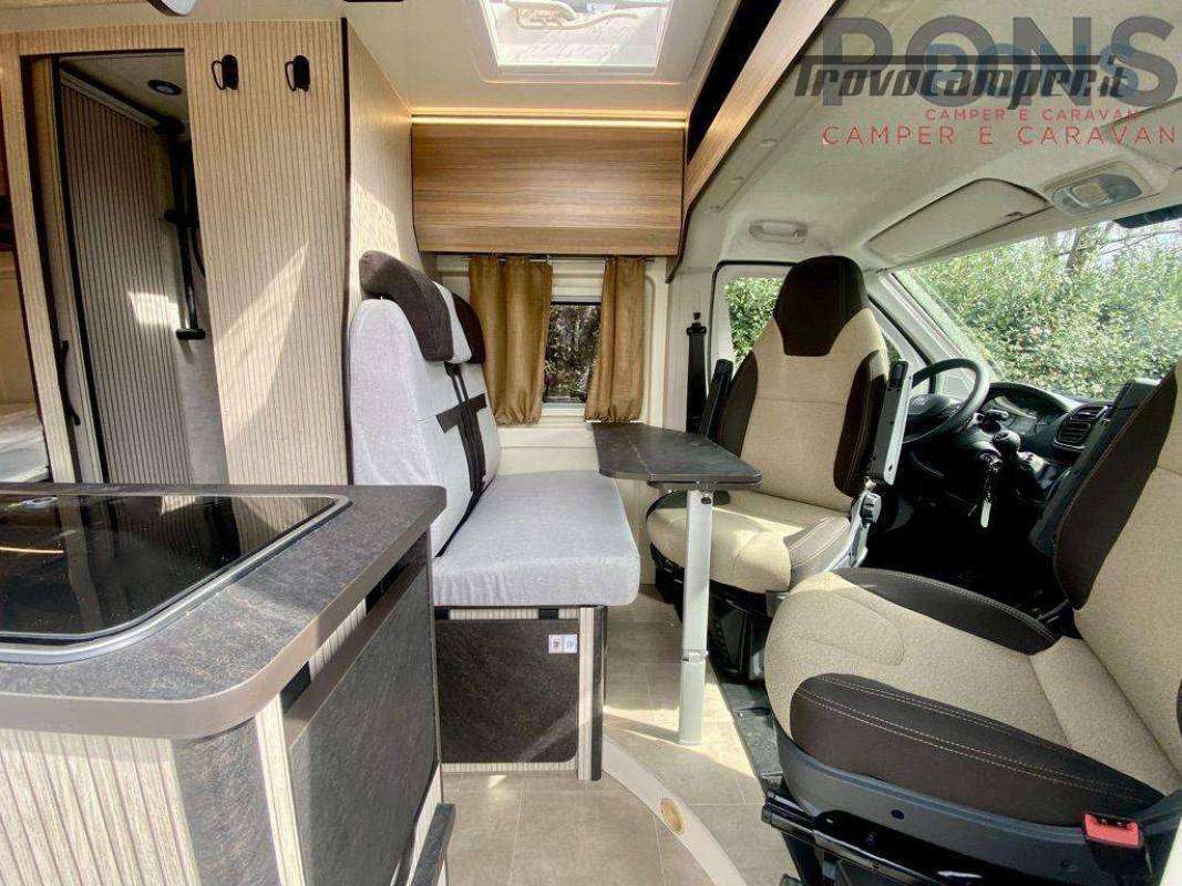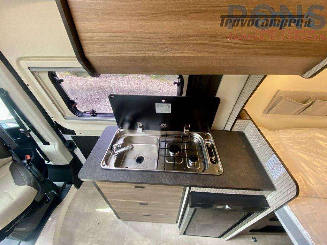 Al suo interno troviamo una dinette comoda e confortevole grazie ai sedili di guida girevoli, con possibilità di trasformazione per ottenere un terzo letto aggiuntivo, tavolo con prolunga , bagno con doccia e wc in un unico ambiente e un angolo cucina con piano cottura a due fuochi, lavello e frigorifero .
