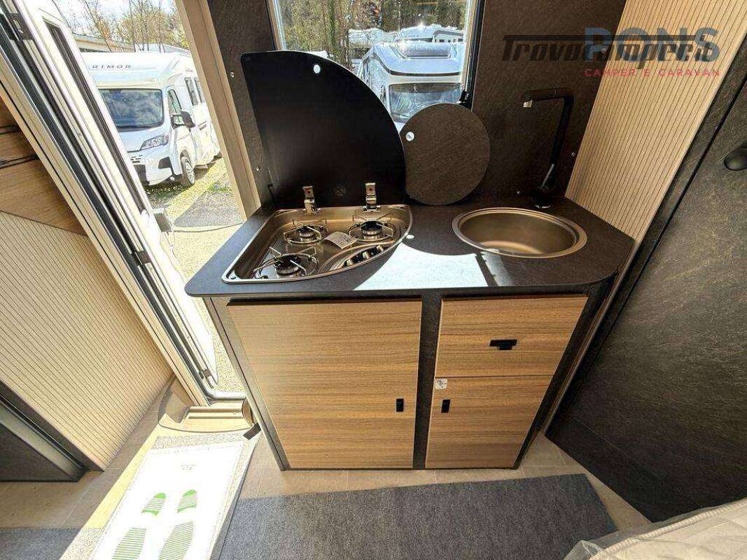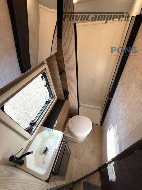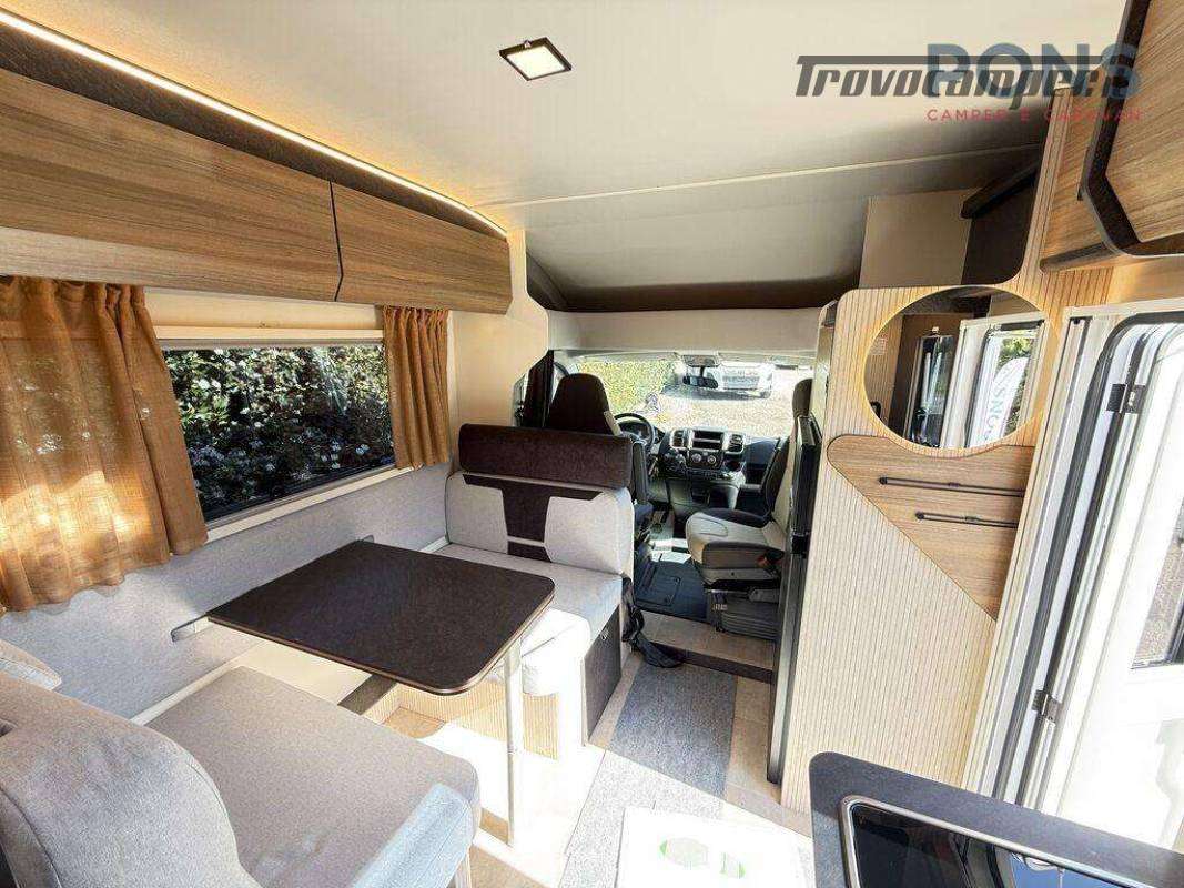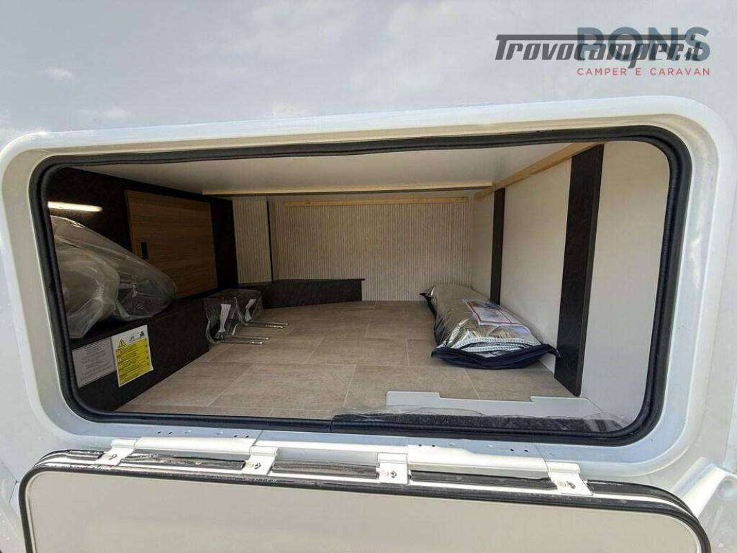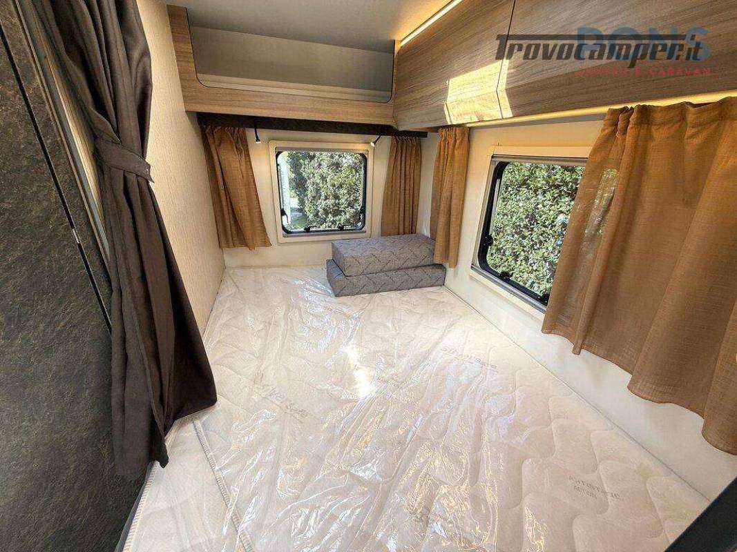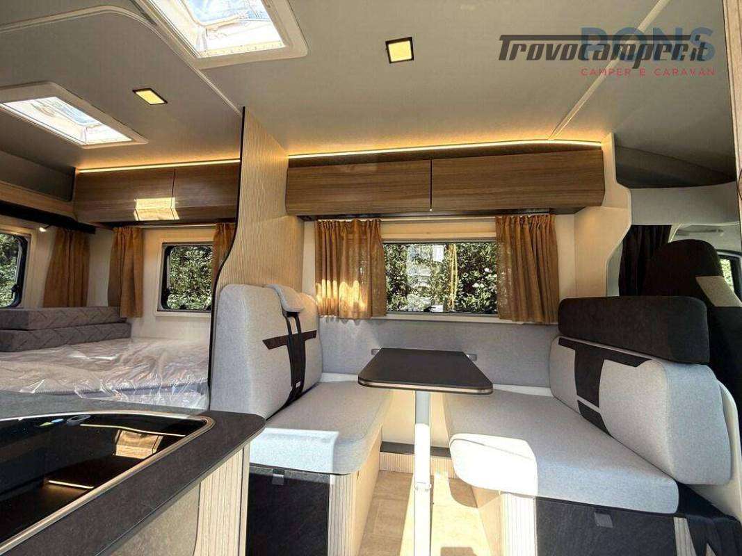 Disposizione del veicolo super confortevole grazie al letto alla francese nella parte posteriore, con spazio di stivaggio sottostante e ulteriore letto basculante sopra la dinette.
