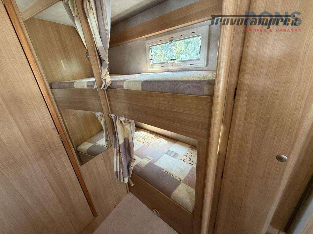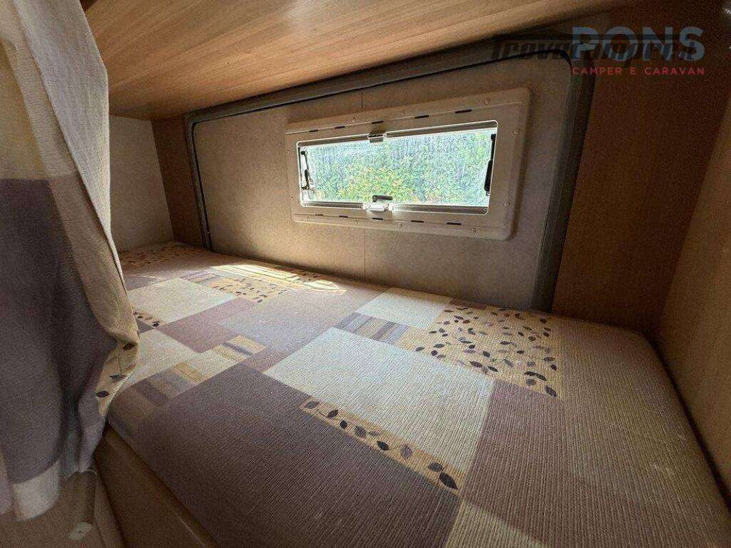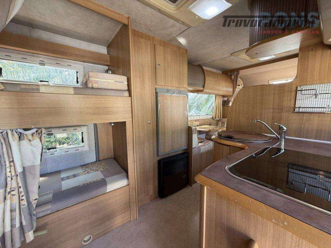 Letti a castello posteriori longitudinali sul lato sinistro, ideali per bambini o ospiti, con accesso facilitato e spazio indipendente.