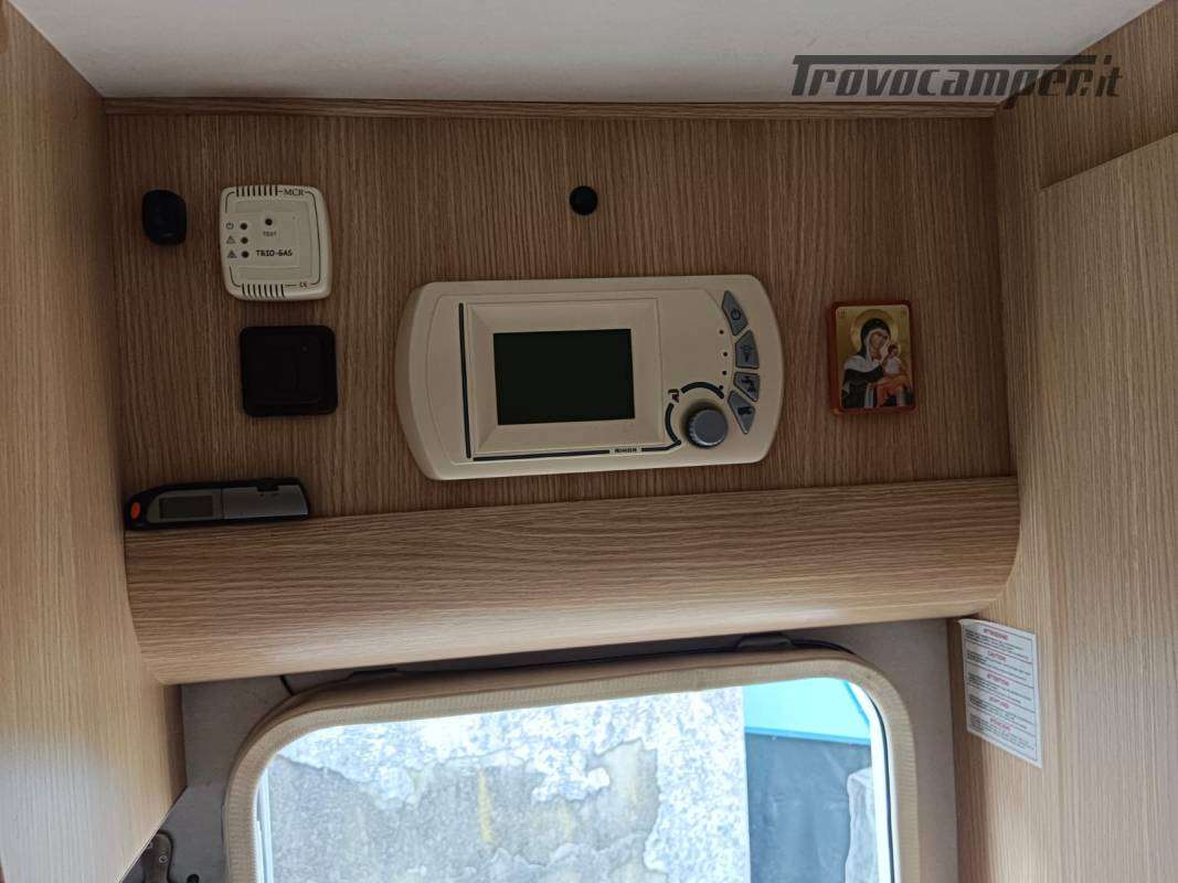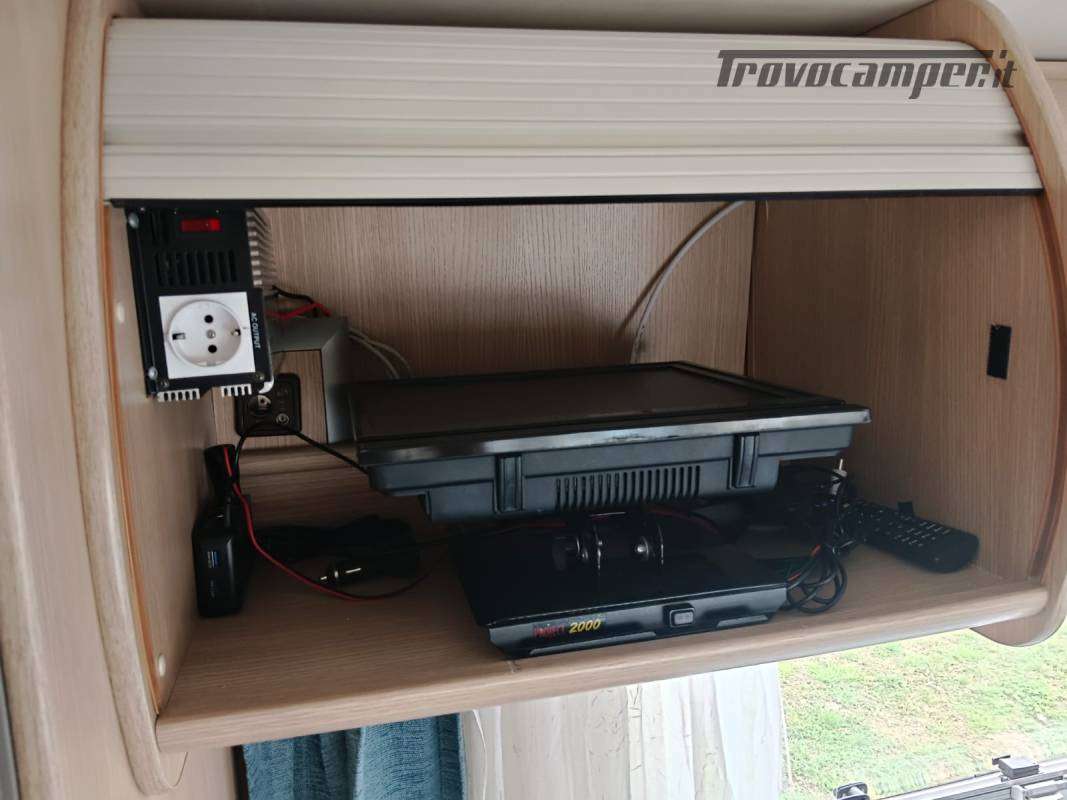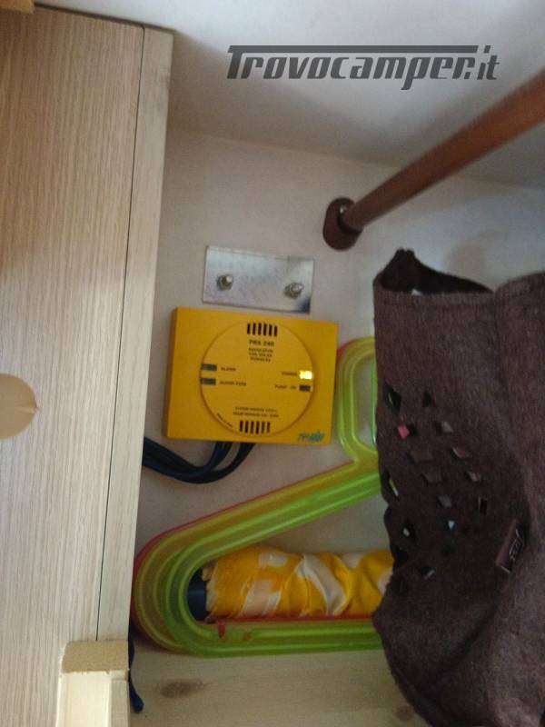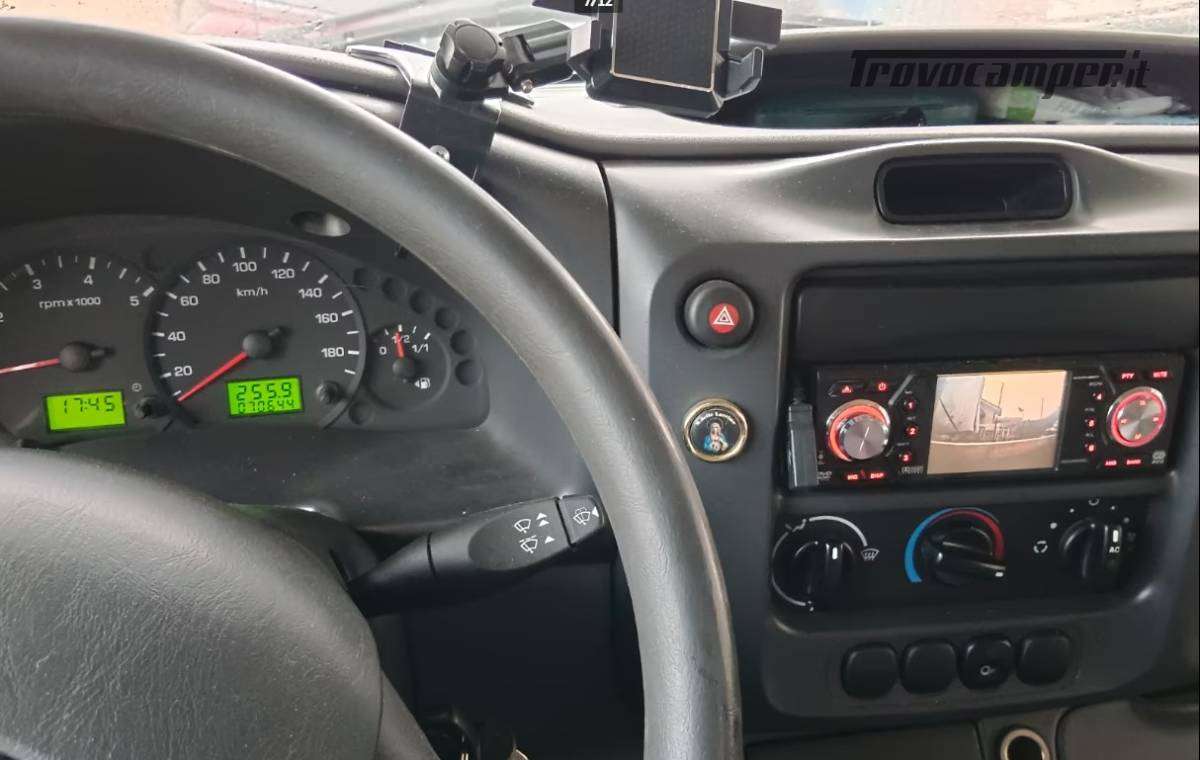 Doppio serbatoio acque grigie, doppia cassetta WC, raffrescatore Viesa e turbovent in cellula (funzionano a 12 V anche in marcia), climatizzatore in cabina x il viaggio, doppio oblò (anche in bagno), antenna TV digitale + antenna satellitare elettrica automatica, frigo + freezer separato trivalente (12 v, 220 v, gas con funzione automatica), pannello solare, 2 batterie cellula da 100 Ah AGM, ampio bagno modificato per esigenze familiari (disponibili plastiche originali), doccia separata zona wc