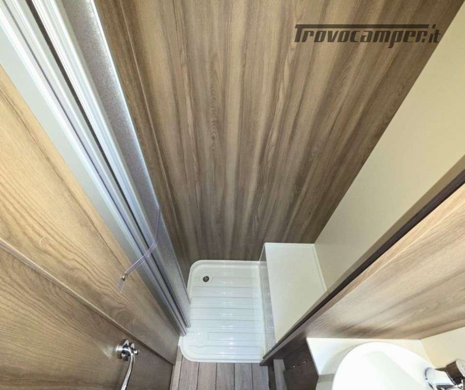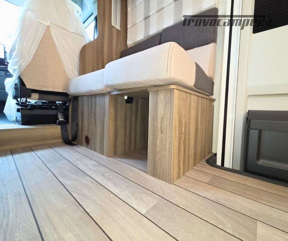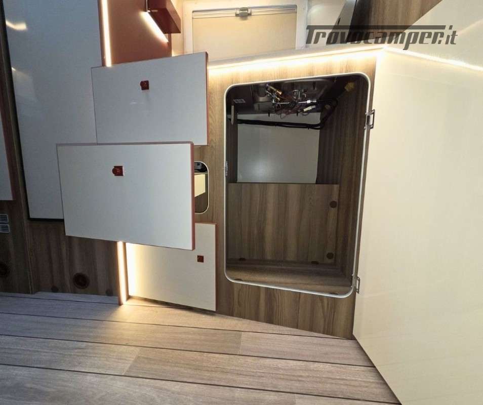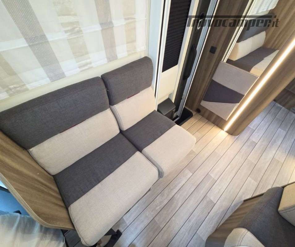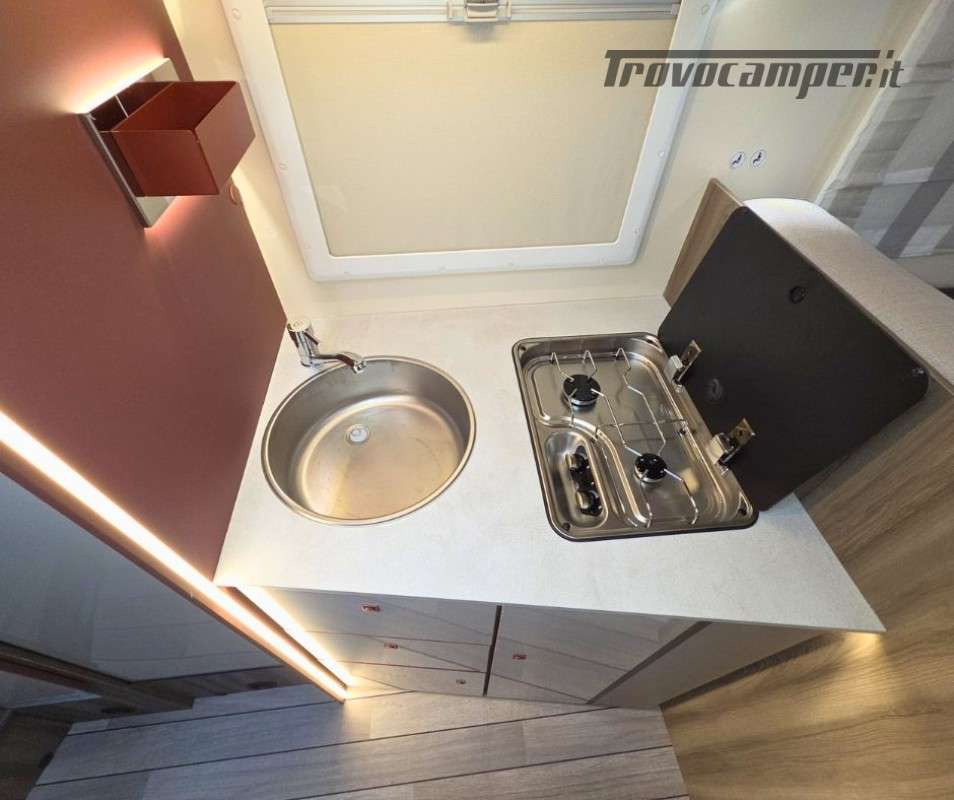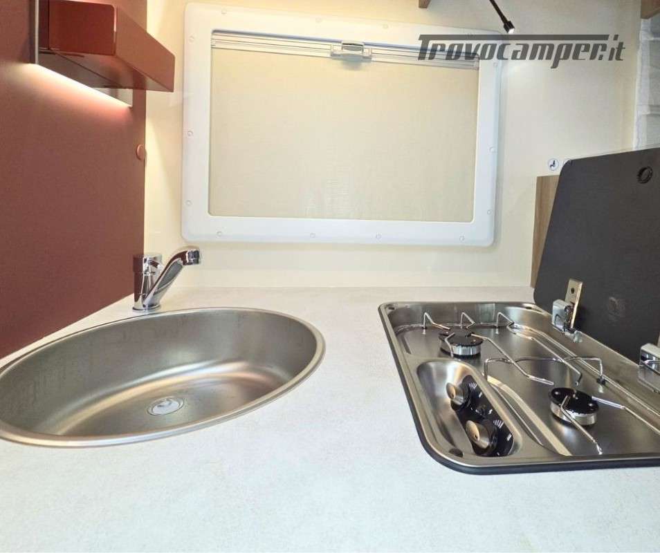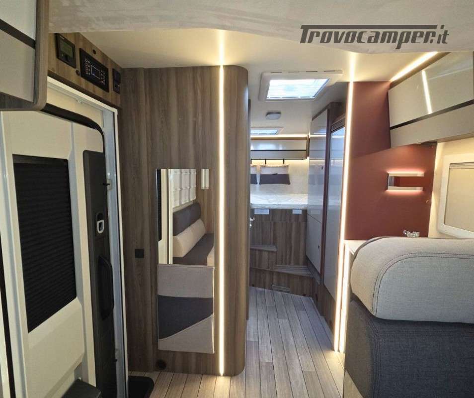 Roller Team Kronos 295 TL su Ford Transit 2000, 165 CV, 5 posti viaggio e 5 posti letto. Camper versatile e moderno con dotazioni premium: retrocamera, cruise control intelligente, climatizzatore automatico, skyroof e pannello solare 200W. Perfetto per viaggi in famiglia, comfort e sicurezza al top in ogni avventura.