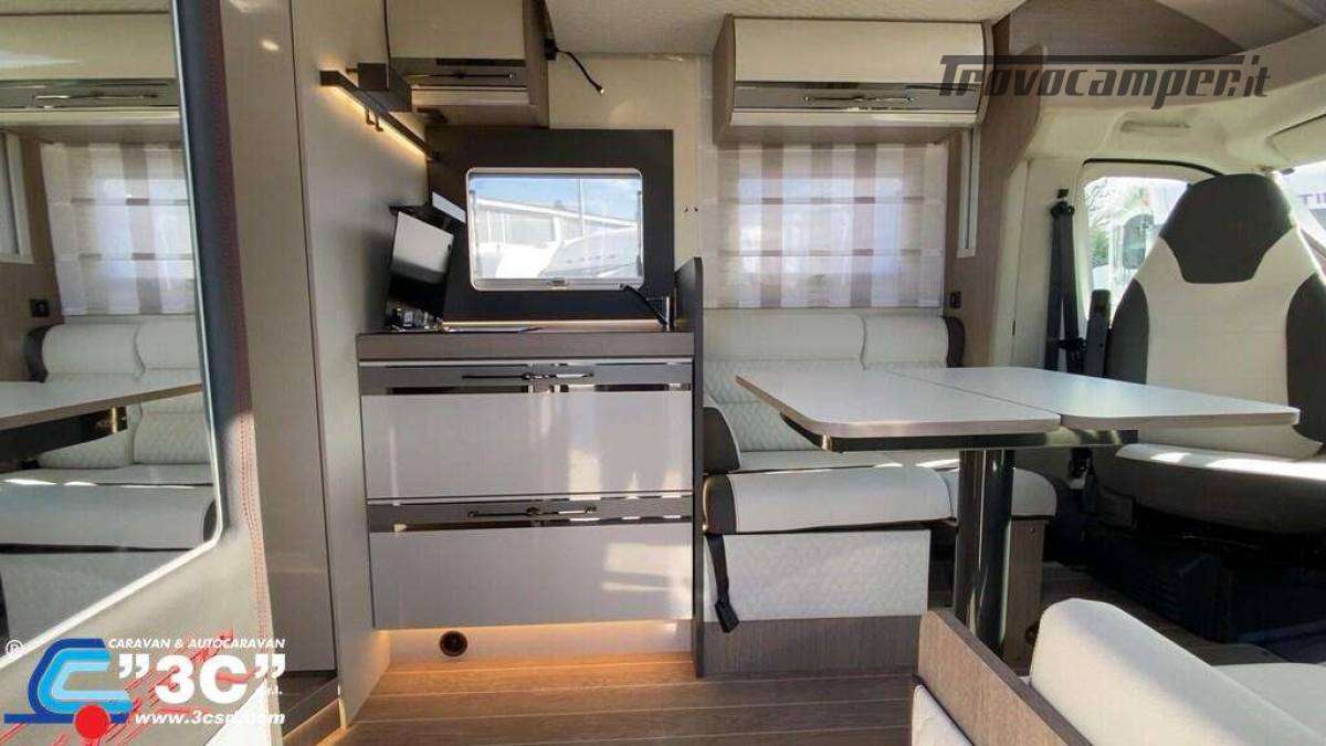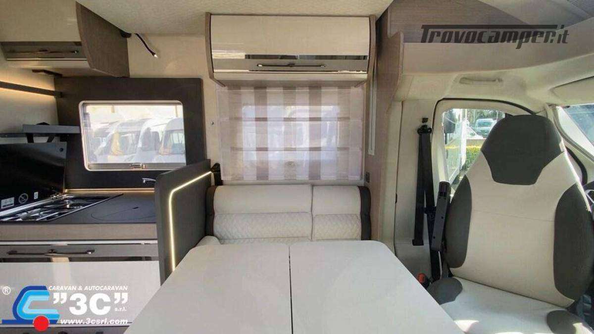 - Pack Zefiro Fendinebbia, Paraurti anteriore in tinta con la carrozzeria, Piastra paramotore nera, Cerchi in lega bicolore da 16?, Volante e pomello del cambio in pelle, Cruscotto Techno, TPMS - Controllo automatico della pressione degli pneumatici, Freno a mano elettrico, Porta con 2 punti di chiusura, con finestra e chiusura centralizzata, Pannello solare da 200W con regolatore MPPT, Cabina plissettata oscurante, Veranda antracite.