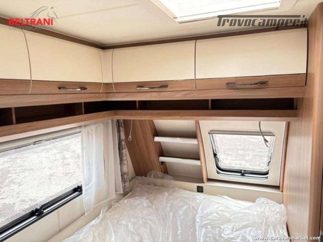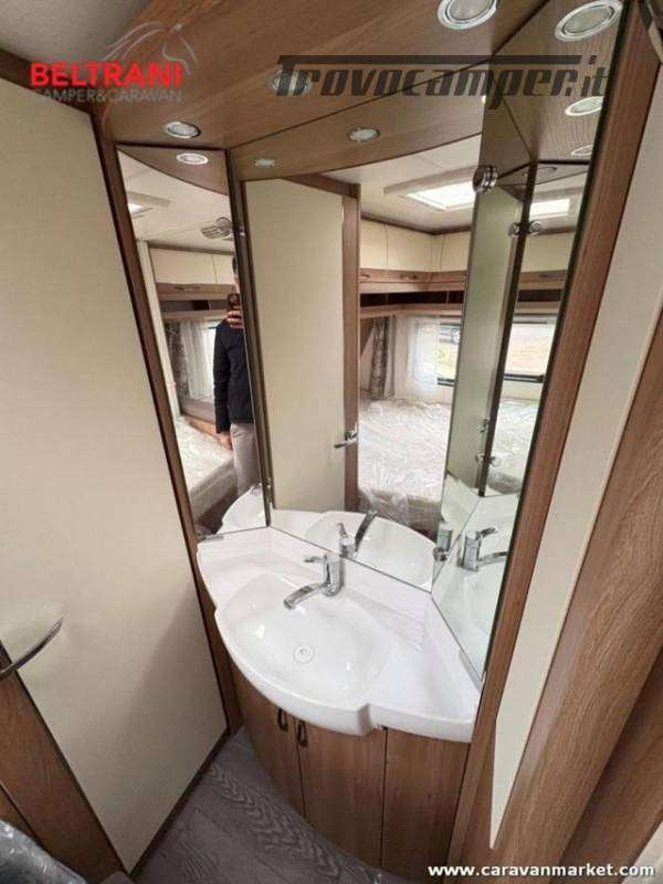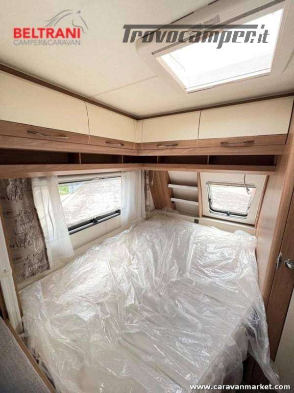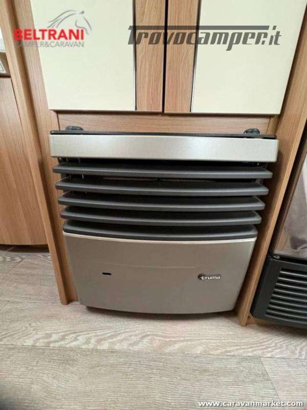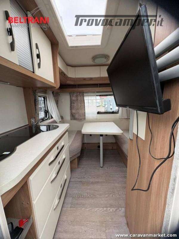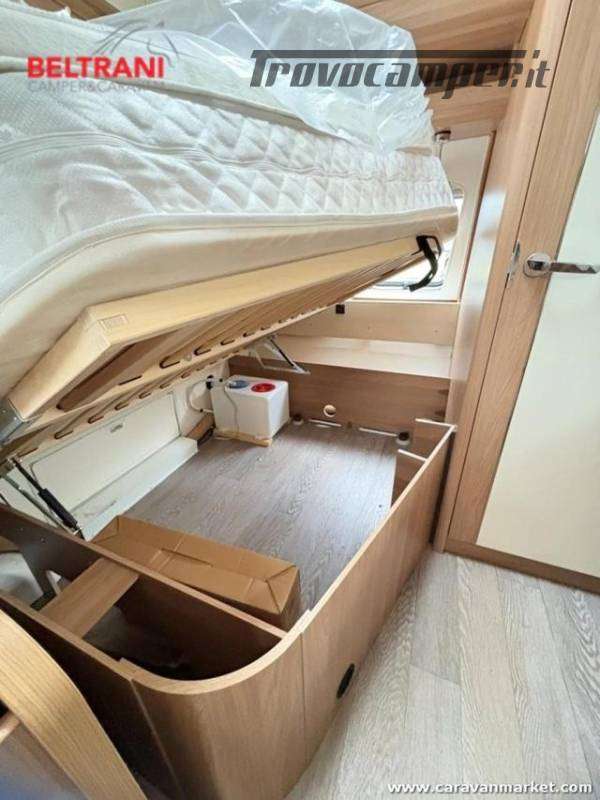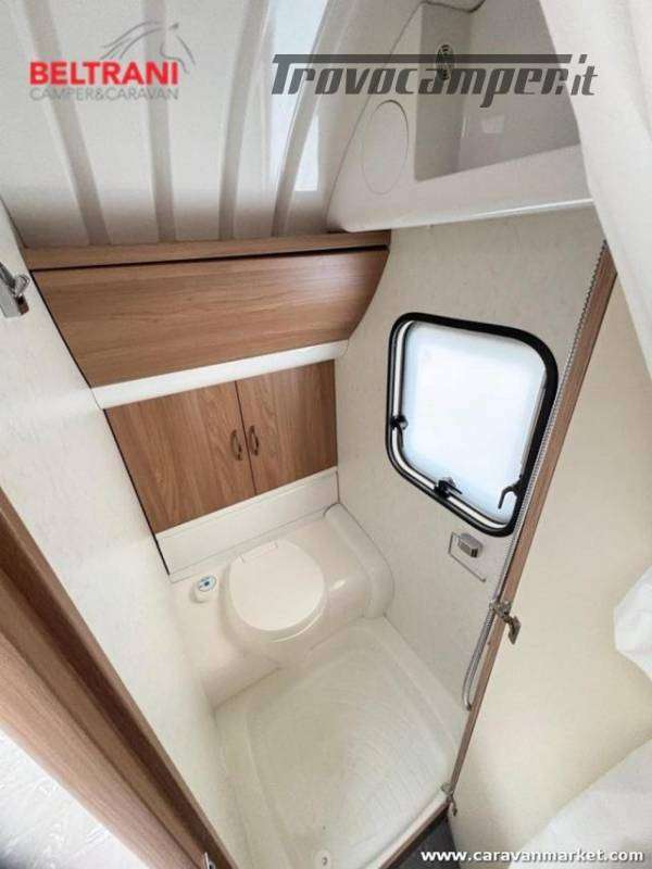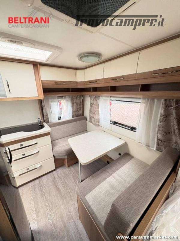 Design e comodità Questa caravan unisce eleganza tedesca a materiali di pregio: interni in legno di faggio naturale, tessuti premium resistenti e oblò panoramici che inondano di luce gli ambienti. Il layout intelligente offre un letto matrimoniale francese anteriore spazioso e confortevole, più un terzo posto dalla dinette convertibile ? tutto in soli 5,97 m di lunghezza.
