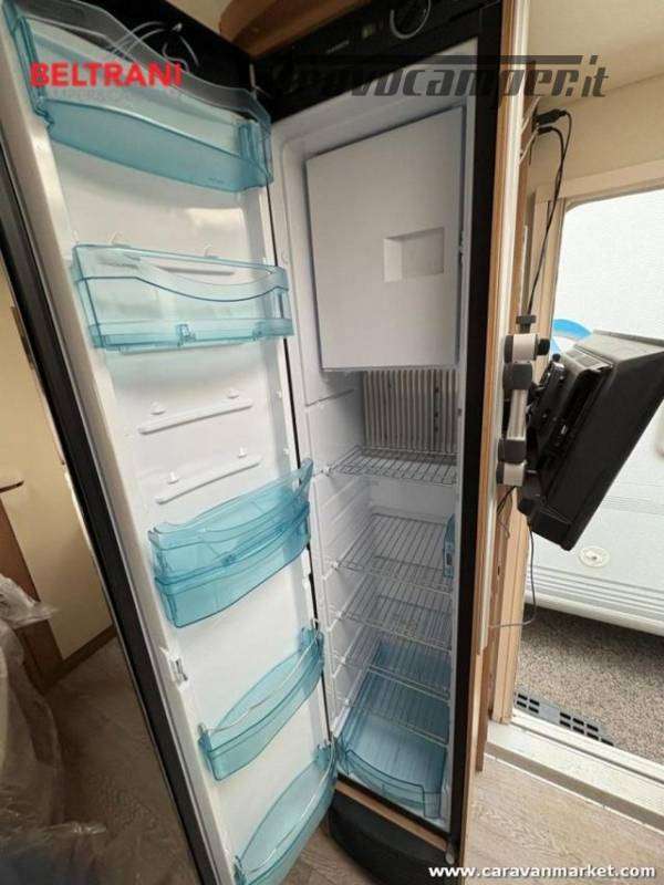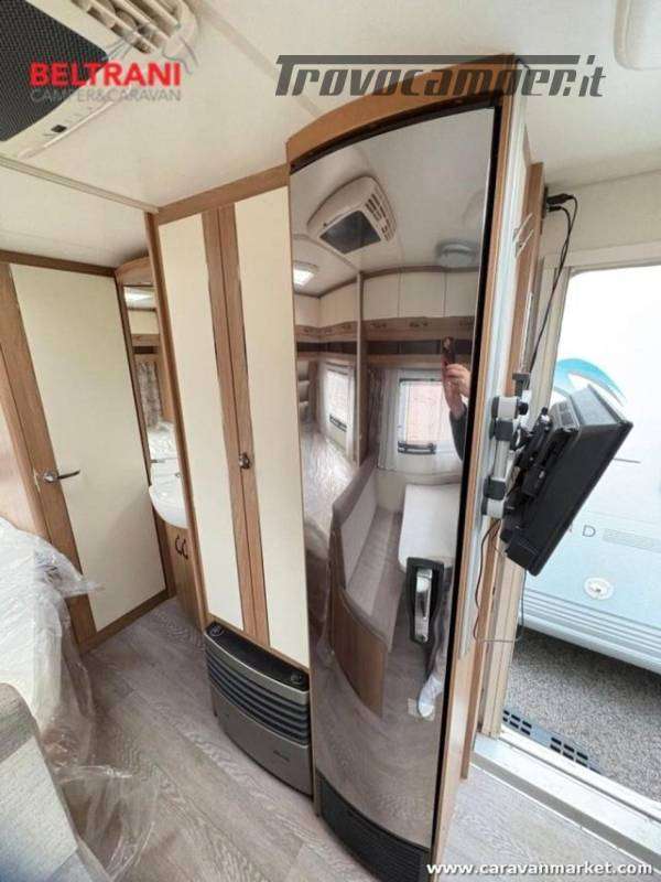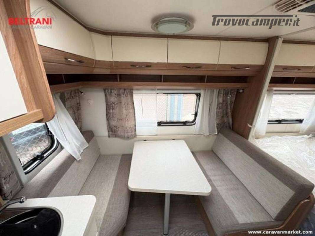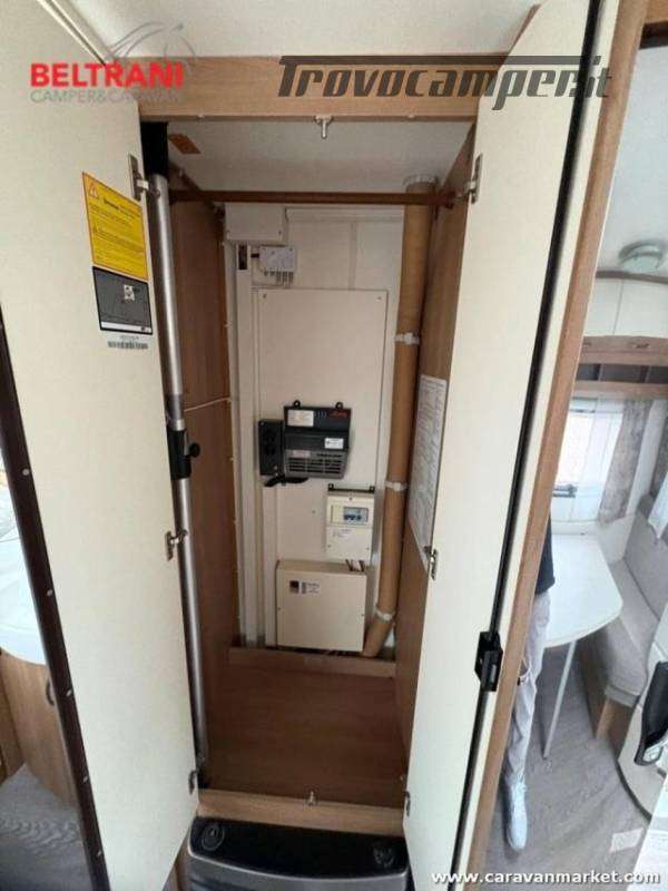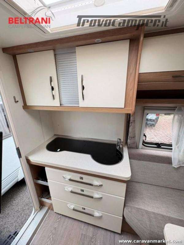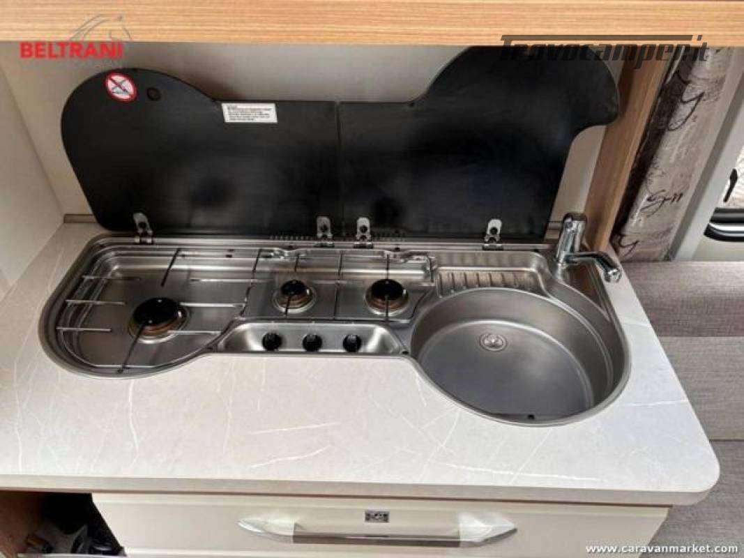 Design e comodità Questa caravan unisce eleganza tedesca a materiali di pregio: interni in legno di faggio naturale, tessuti premium resistenti e oblò panoramici che inondano di luce gli ambienti. Il layout intelligente offre un letto matrimoniale francese anteriore spazioso e confortevole, più un terzo posto dalla dinette convertibile ? tutto in soli 5,97 m di lunghezza.
