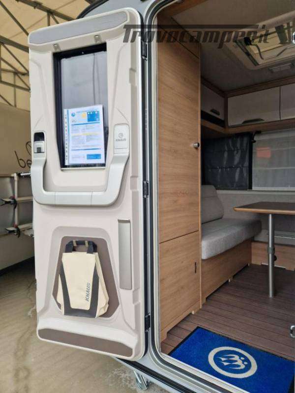 Porta d?ingresso KNAUS PREMIUM: con sistema di chiusura tipo automobilistico, in un unico pezzo, con doppia guarnizione, sistema di chiusura multipla, cerniere a scomparsa, inclusa finestra con tenda plissettata, vano porta ombrelli integrato, applicazioni decorative pregiate, borsa multiuso nel design KNAUS
