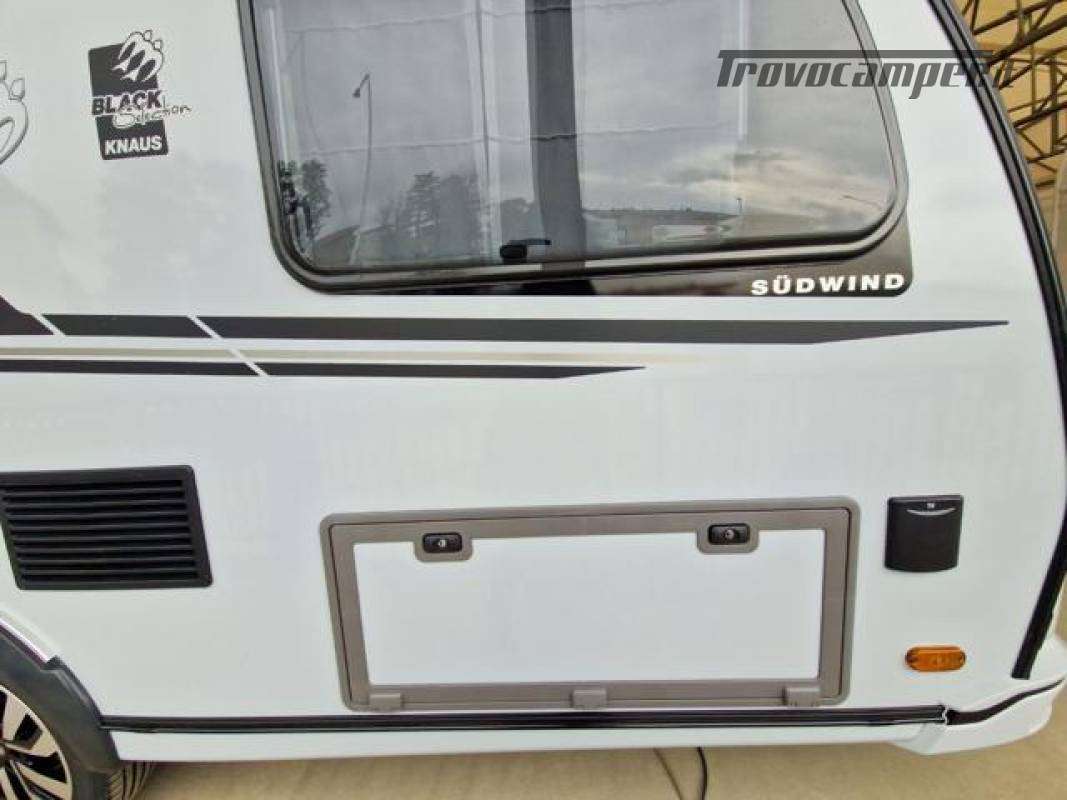 Serbatoio acque grigie da 25 litri, con ruote ??Copritimone ??Presa esterna Combi (corrente + TV) ??Set di riparazione pneumatico ??Predisposizione TV con presa e cablaggio ??Rilevatore di fumo ??Serigrafia "KNAUS 60 YEARS" ??Logo KNAUS per parte anteriore e posteriore, nero/cromo ??Variante tappezzeria di serie con ricamo "BLACK SELECTION"