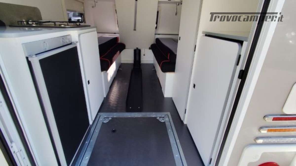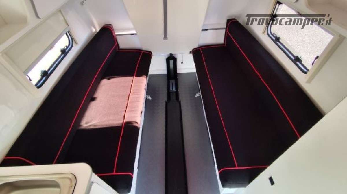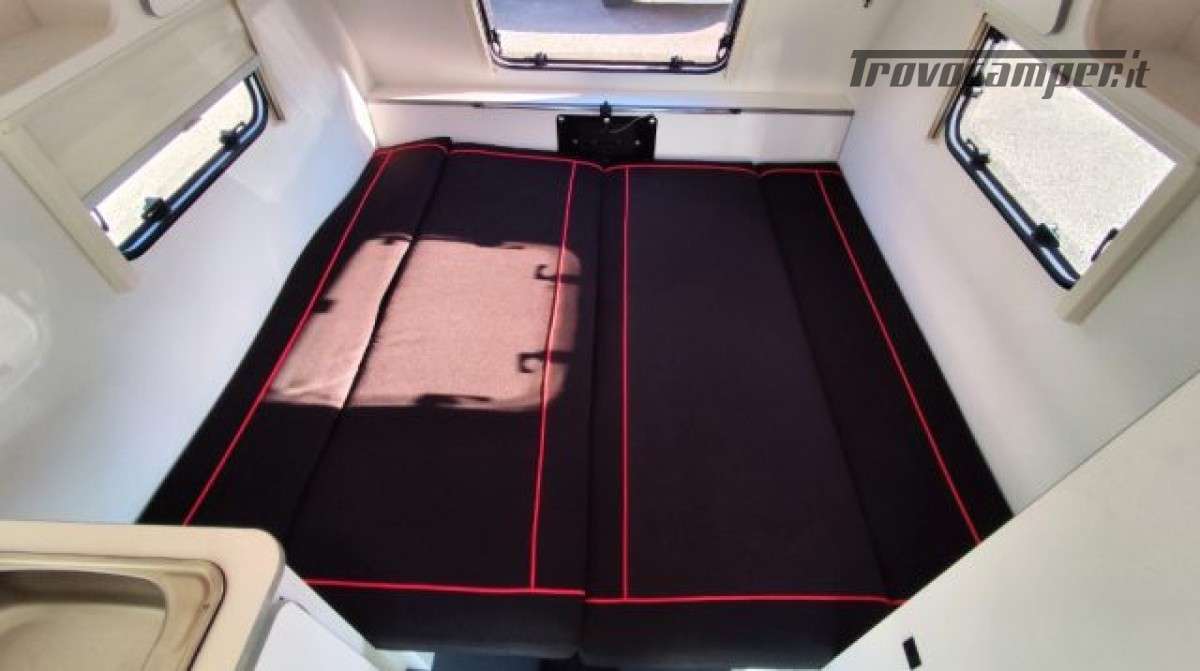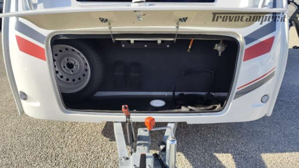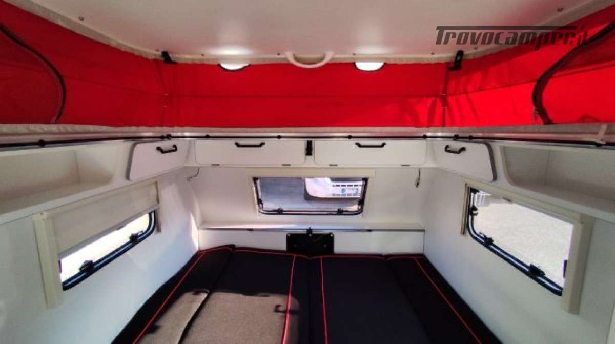 Accesori: Grande porta d?entrata posteriore, Pareti e tetto in vetroresin, Dinette trasormabile in grande letto 187×190 c, Frigorifero 70,Fornello 2 fuochi in acciaio inox + lavello, .Serbatoio di acqua pulita 45 L, Boiler Acqua Calda, Tendalino e PopUp.