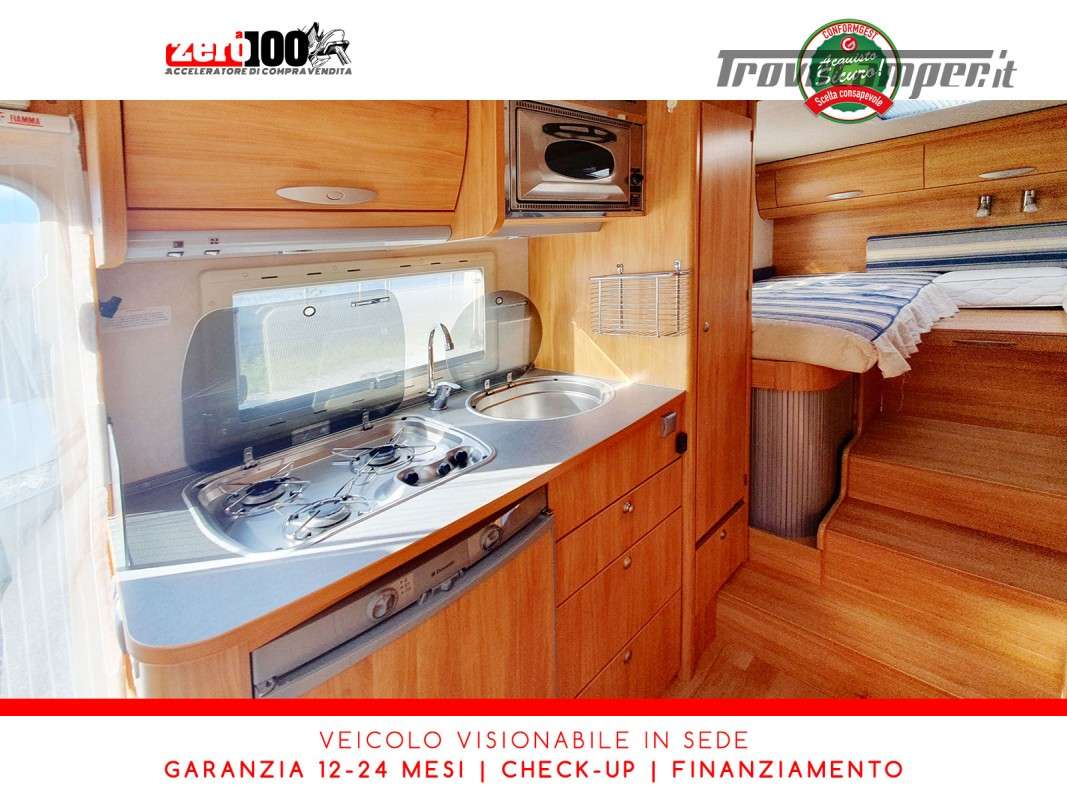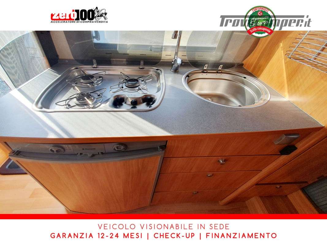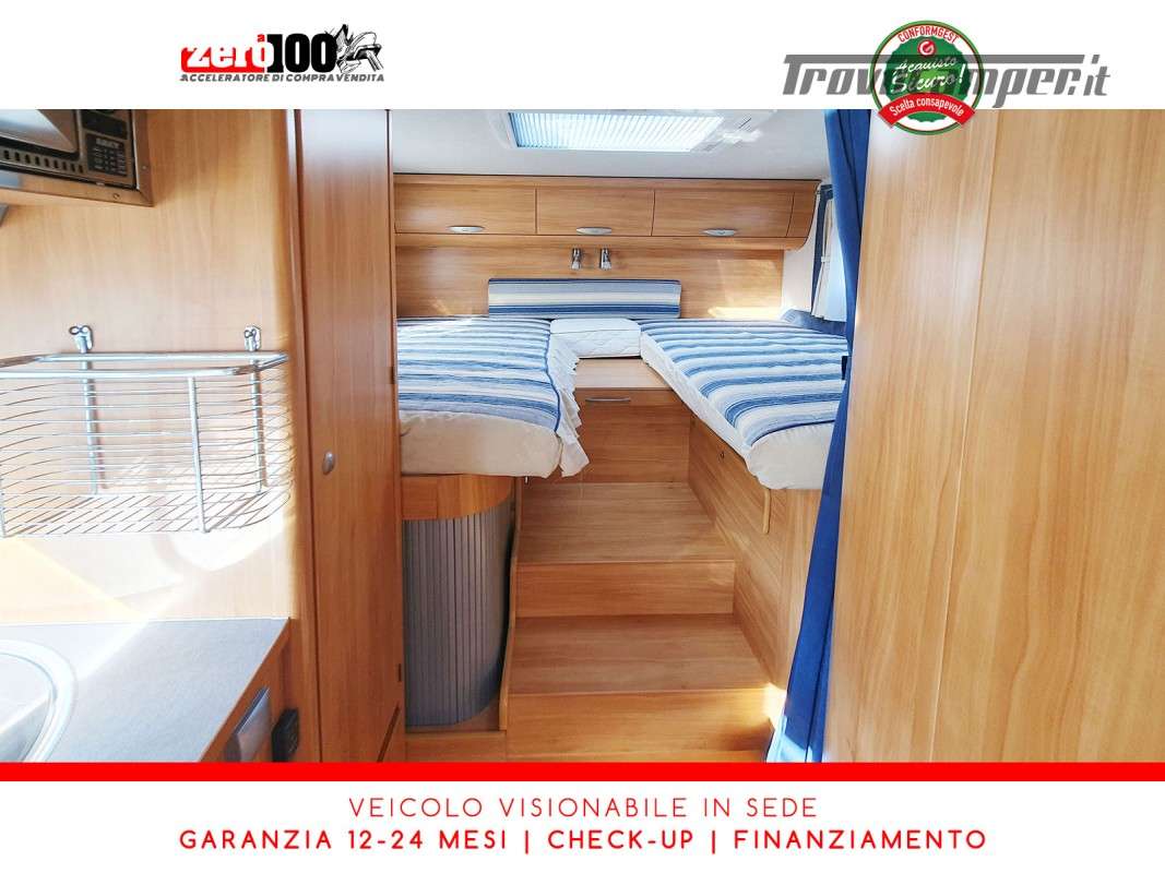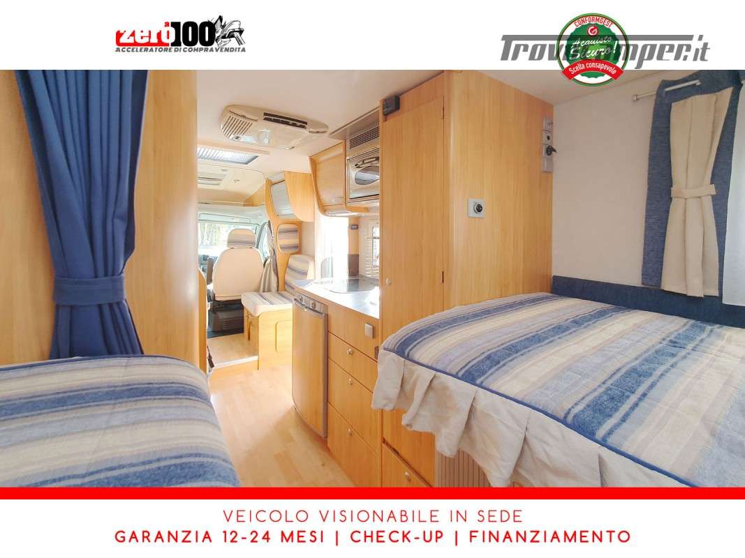 Letti gemelli in coda con garage a volume variabile accessibile da entrambi i lati - Mezza dinette con sedili anteriori girevoli trasformabile in letto matrimoniale - Cucina lineare con piano cottura 3 fuochi, cappa aspirante e forno - Frigorifero 110 lt - Bagno con doccia separata