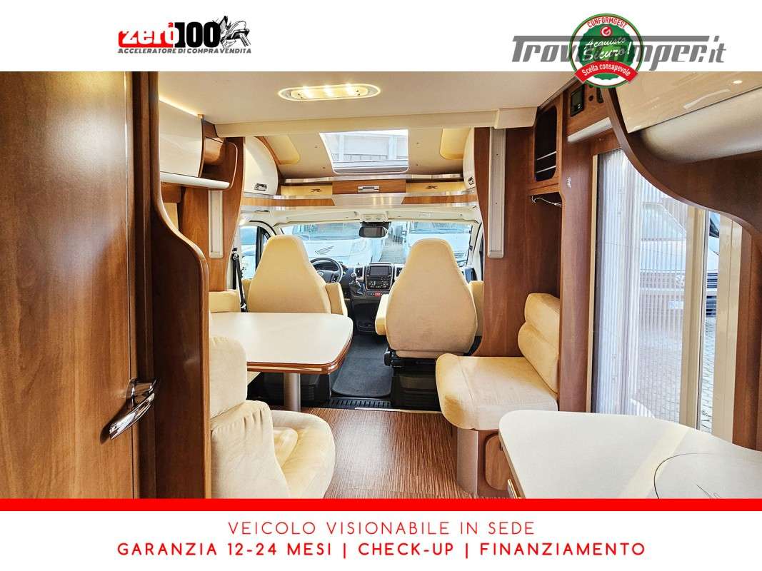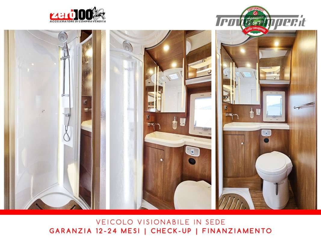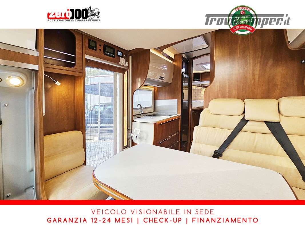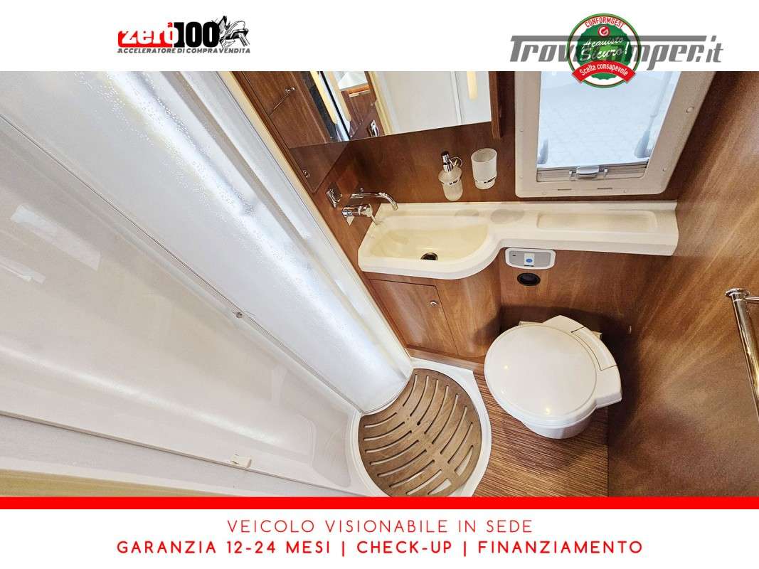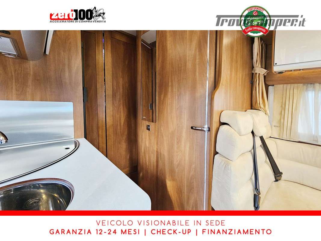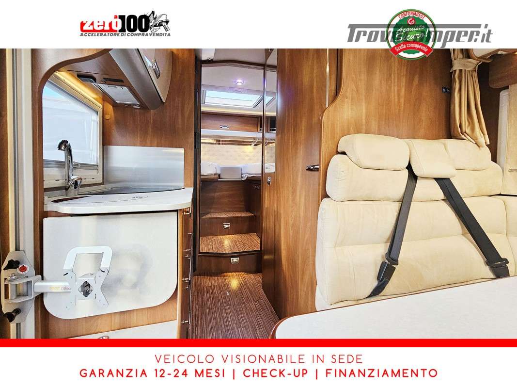 Letti gemelli in coda - Mezza dinette con sedili cabina girevoli - Letto basculante sopra dinette elettrico - Cucina lineare 3 fuochi con piezo, cappa aspirante e forno a gas - Frigorifero trivalente alto - Bagno con finestra e box doccia separato - Garage