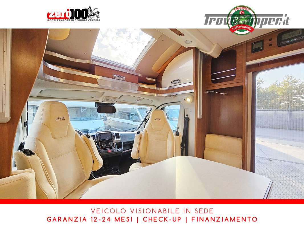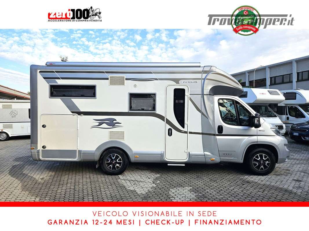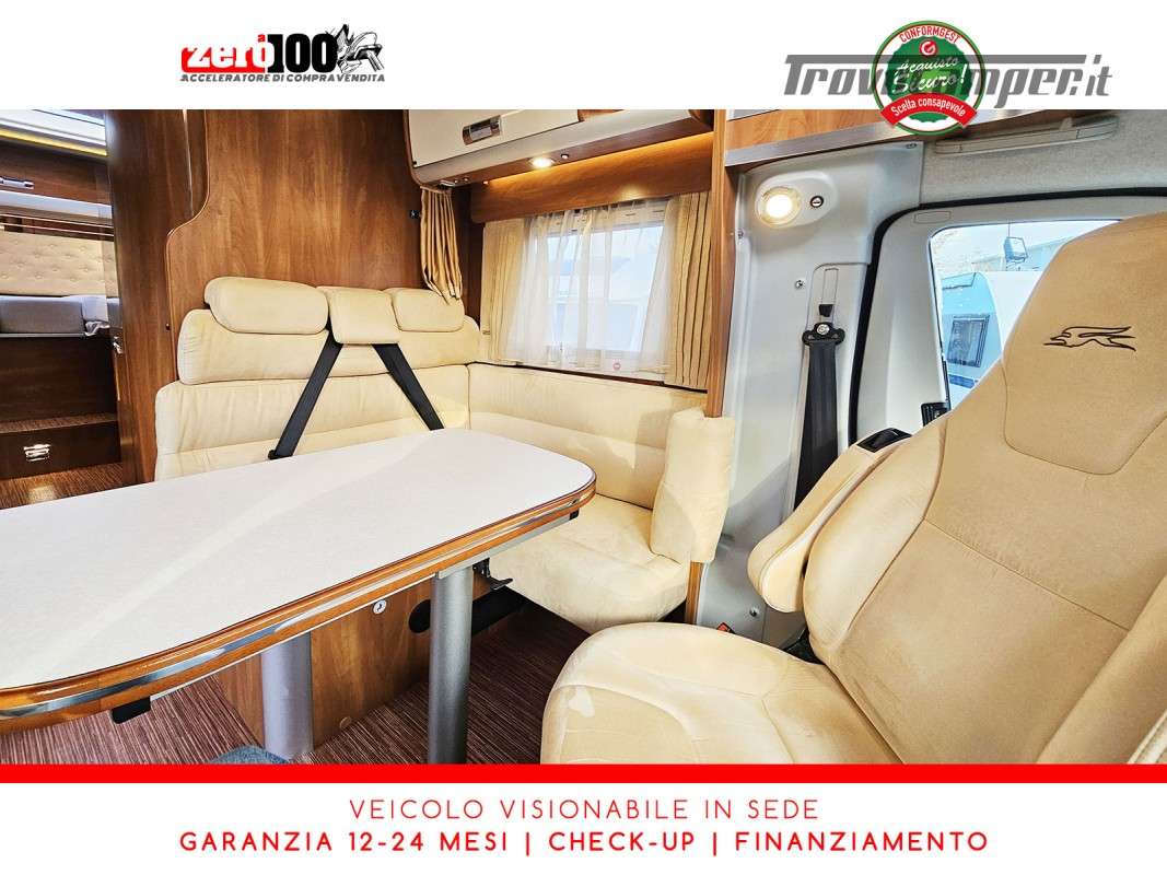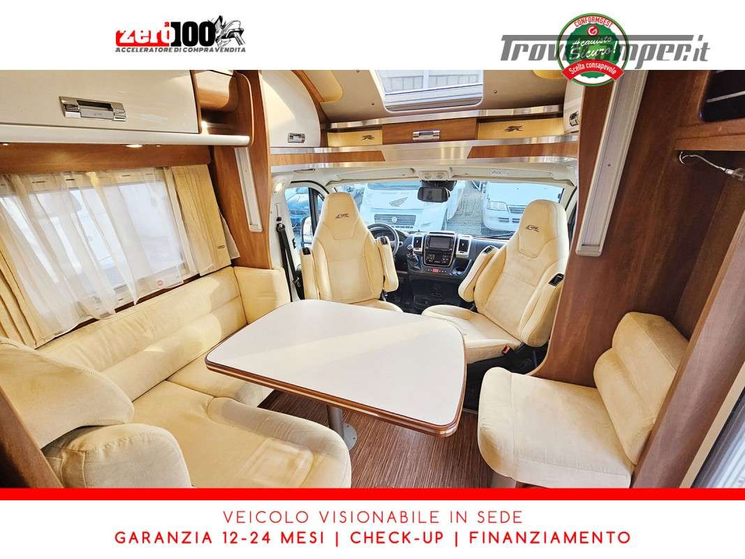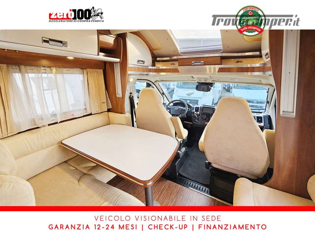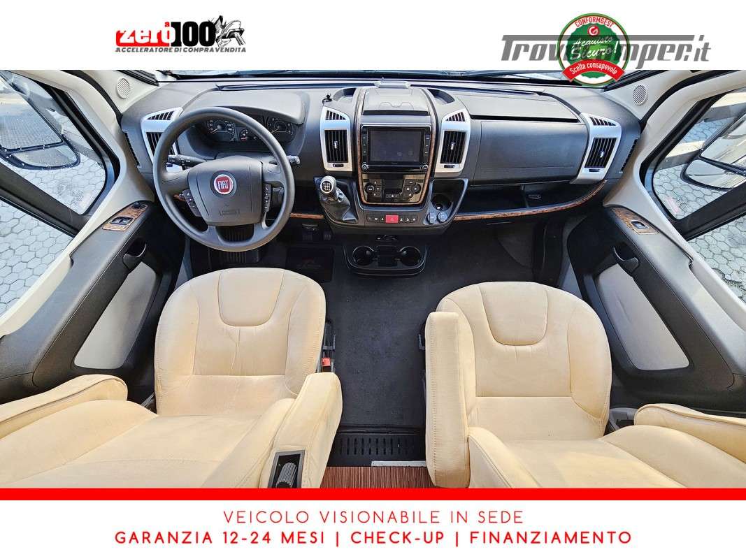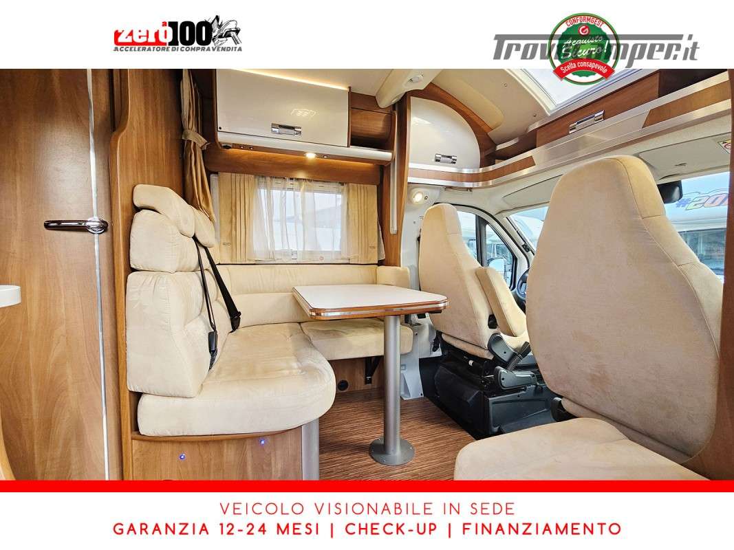 Letti gemelli in coda - Mezza dinette con sedili cabina girevoli - Letto basculante sopra dinette elettrico - Cucina lineare 3 fuochi con piezo, cappa aspirante e forno a gas - Frigorifero trivalente alto - Bagno con finestra e box doccia separato - Garage
