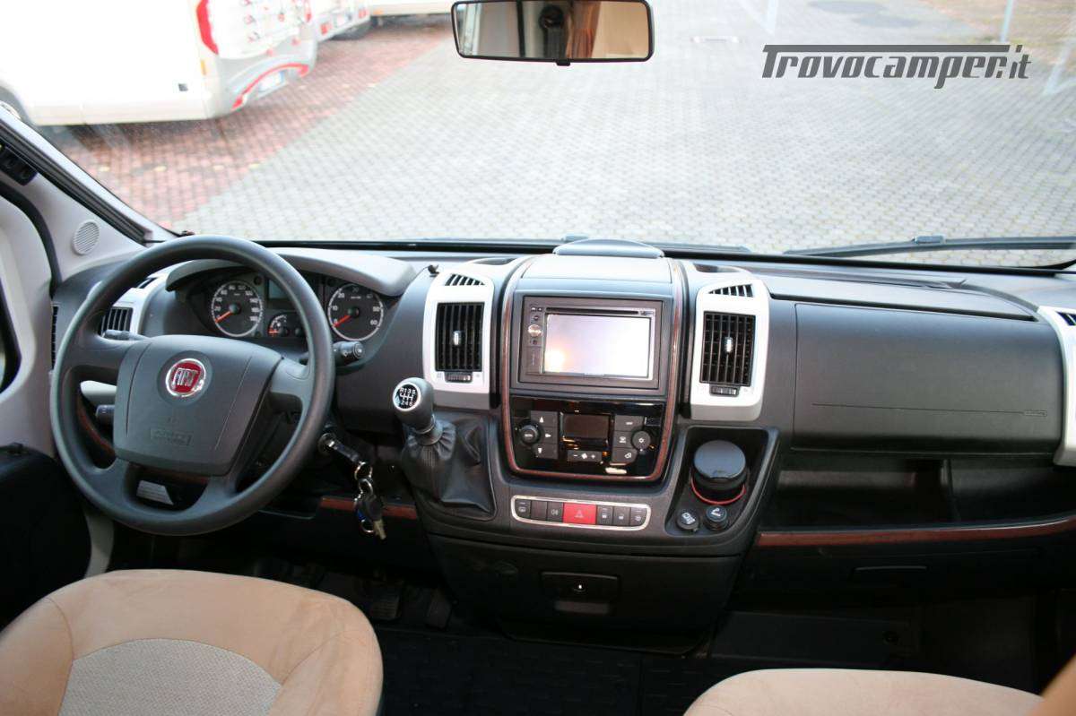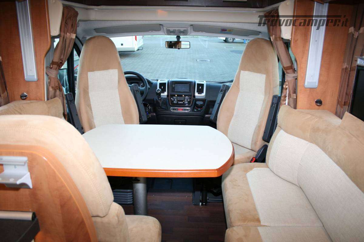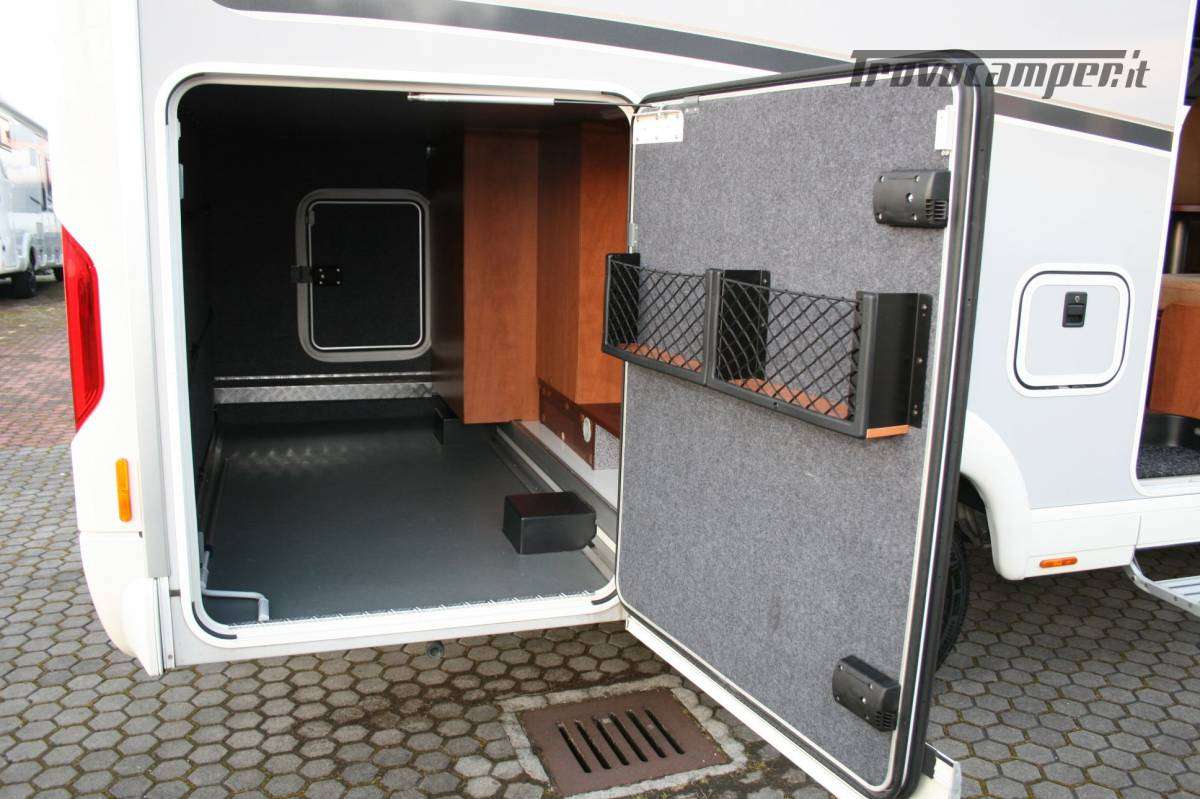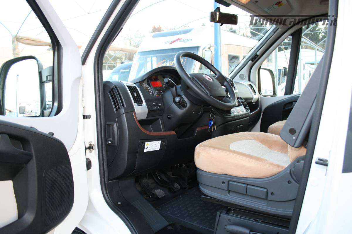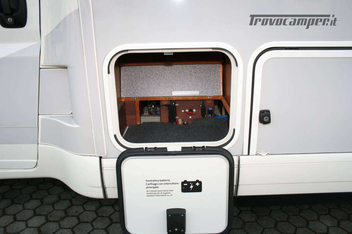 Veranda, letto basculante elettrico con oblò Sky roof su cupolino, SUPERPACCHETTO ( clima cabina automatico, alternatore maggiorato, sedili regolabili in altezza ed inclinazione, cruise control, chiusura centralizzata porte cabina e porta cellula con telecomando con funzione coming home, radica cruscotto e griglie di areazione in color argento, oscuranti Remis in cabina , impianto radio DAB Kenwood DMX125 doppio din touchscreen, retrocamera Carthago, oblo’ Midi-Heki al posto dello standard, illuminazione regolabile, frigorifero da 142 lt a compressore 12V, porta cellula Luxus con doppia chiusura di sicurezza/finestra/chiusura centralizzata , zanzariera avvolgibile porta cellula, tavolo giorno Luxus, materasso letto posteriore in schiuma fredda a 7 zone, box di stivaggio nel doppio pavimento, coprimozzi Carthago, Turbovent zona cucina, garage posteriore con feltro su pareti , reti portaoggetti e luci led ad apertura porta,illuminazione barra 4 mt led in veranda , Sog, set tubi di scarico, predisposizione antenna satellitare, piedini di stazionamento, sistema di sicurezza in viaggia Truma secumotion con scambiatore automatico bombole Duocontrol), meccanica 2300cc 150 cv, sistema di estrazione TFT quick up con TV da 19″, pannello solare, antifurto perimetrale e volumetrico, antenna TV terrestre, presa 12v aggiuntiva, 8 prese USB camera e living , doppio pavimento, luci diurne a led anteriori, doppio airbag, ABS, ASR, ESP e Traction Plus, assistenza alla salita Hill Holder.