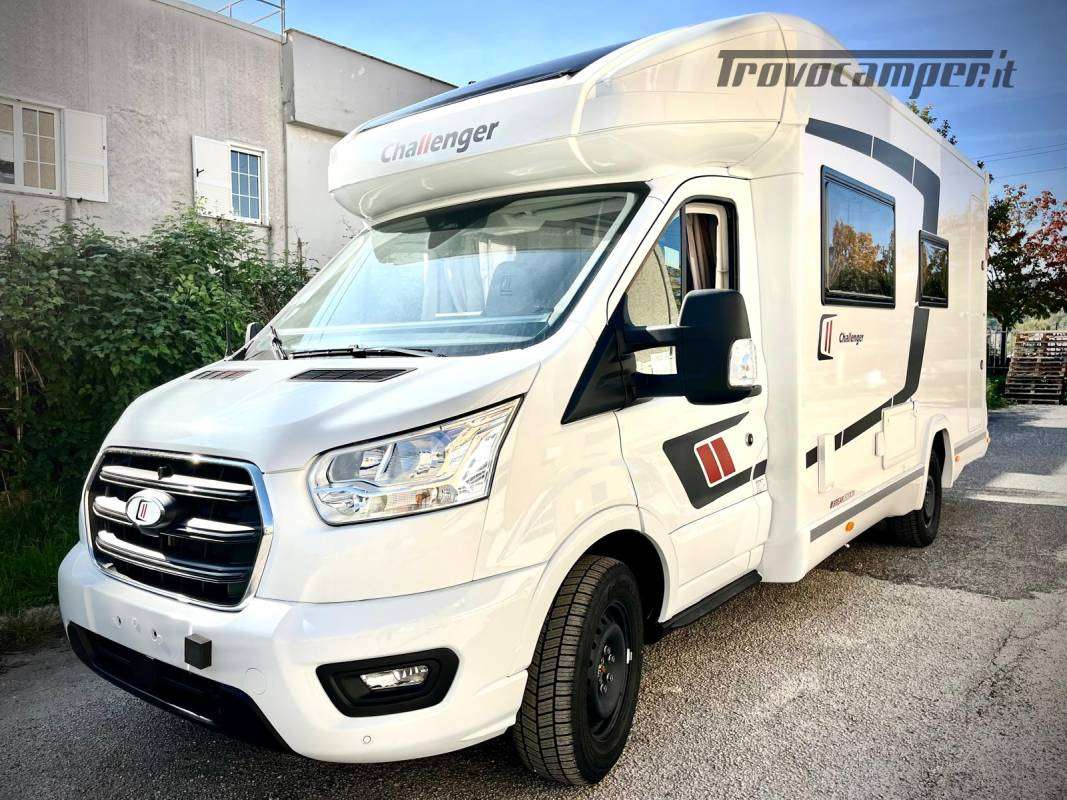 Semintegrale Challenger 260 Break EditionMotore: Ford Transit 2.2 130CV con cambio manualeOmologazione: 4 postiPosti letto: 4Lunghezza: 6,99 metriDotazioni:Di Serie:Airbag per conducente e passeggeroCerchi in acciaio da 16’’ con coperchi grigiClimatizzatore manuale in cabinaESP (Electronic Stability Program) per una guida sicuraEco Pack:Stop and Start per risparmio energeticoAlternatore intelligentePompa carburante a gestione elettronicaComfort e Sicurezza:Finestre a doppio vetro con oscurante/zanzarieraFix and Go per riparazioni rapideFodere sedili cabina coordinate con i tessuti della cellulaHill Descent Control per discese sicureIlluminazione esterna allo sportello di ingressoIsolamento gradino ingressoOblò panoramicoOscuranti isotermici in cabinaPre-cablaggio per telecamera di retromarciaPre-equipaggiamento per TVPredisposizione per pannello solarePrese USB/USB-CRegolatore e limitatore di velocitàRetrovisori elettrici con sbrinatoreRiscaldamento a gasolioSedili cabina girevoli regolabili in altezza con doppio braccioloStruttura IRP (tetto/pavimento/pareti in poliestere, pavimento spessore 64mm)TechniboxTende di separazione cellula/cabinaTraction+ per una migliore aderenzaPack Accessori:TendalinoPannello solarePorta zanzarieraOscuranti plissettati in cabinaKit per l'installazione di una seconda batteriaPack Smart:Sensore livello acqueSensore livello gasControllo livello carica batteriaLocalizzatore GPSSensore di livellamento elettronicoConnessione tramite Bluetooth e internet su abbonamentoPrezzo chiavi in mano: DA € 73.670,00 A € 66.000,00