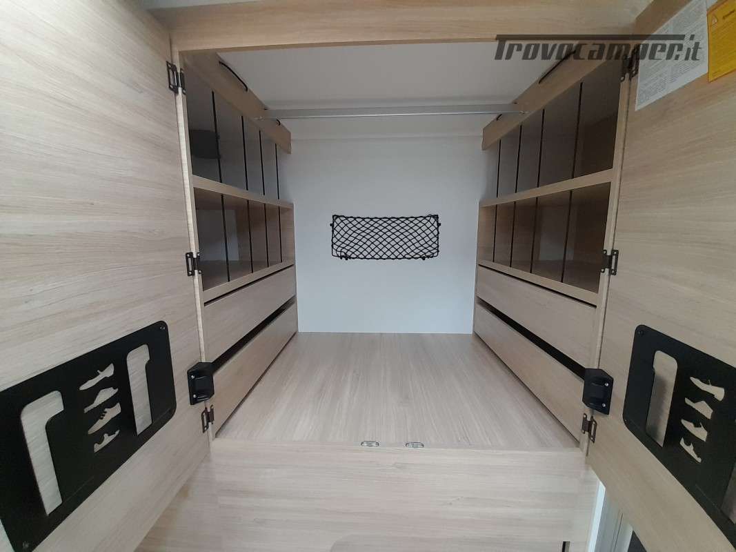 • Pack Accessori: Tenda da sole esterna, Pannello solare, Zanzariera sulla porta di ingresso, Tenda interna cabina, Oscuranti plissettati in cabina, kit d’installazione 2a batteria dei servizi