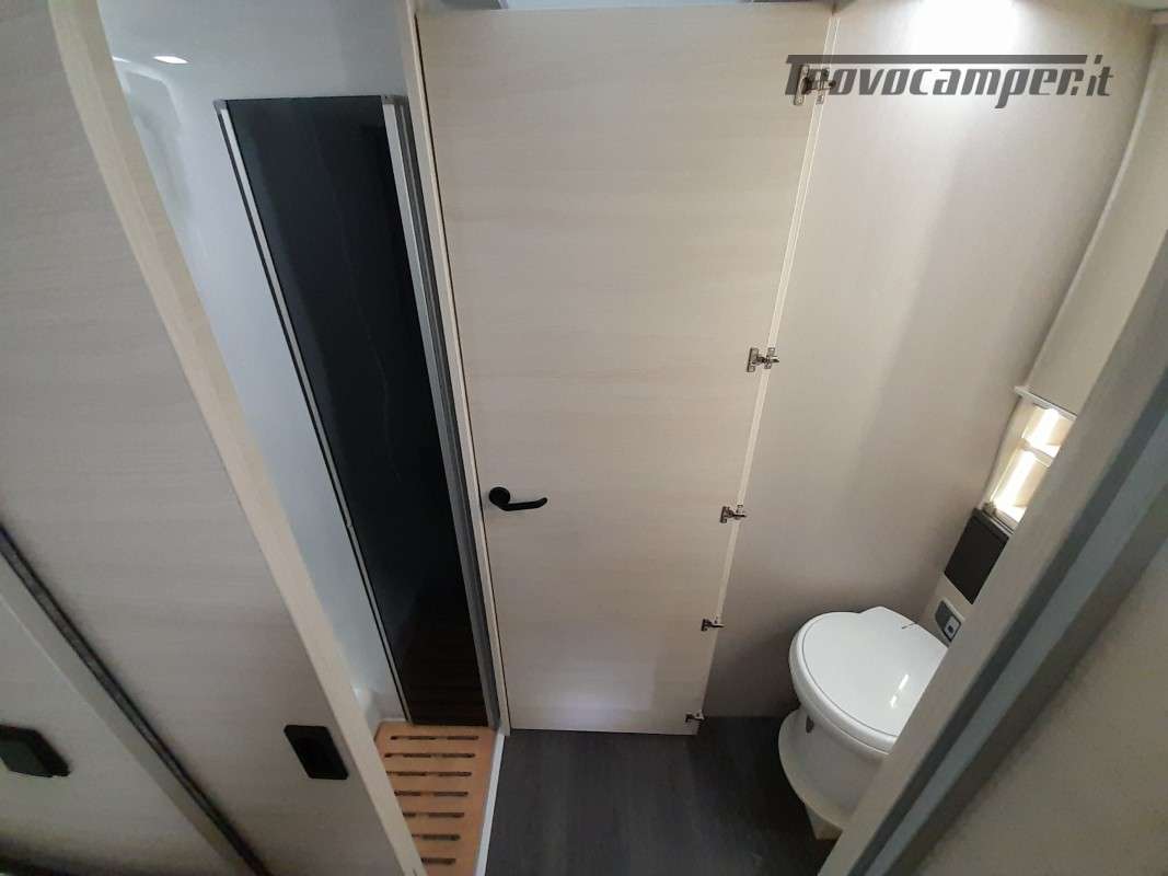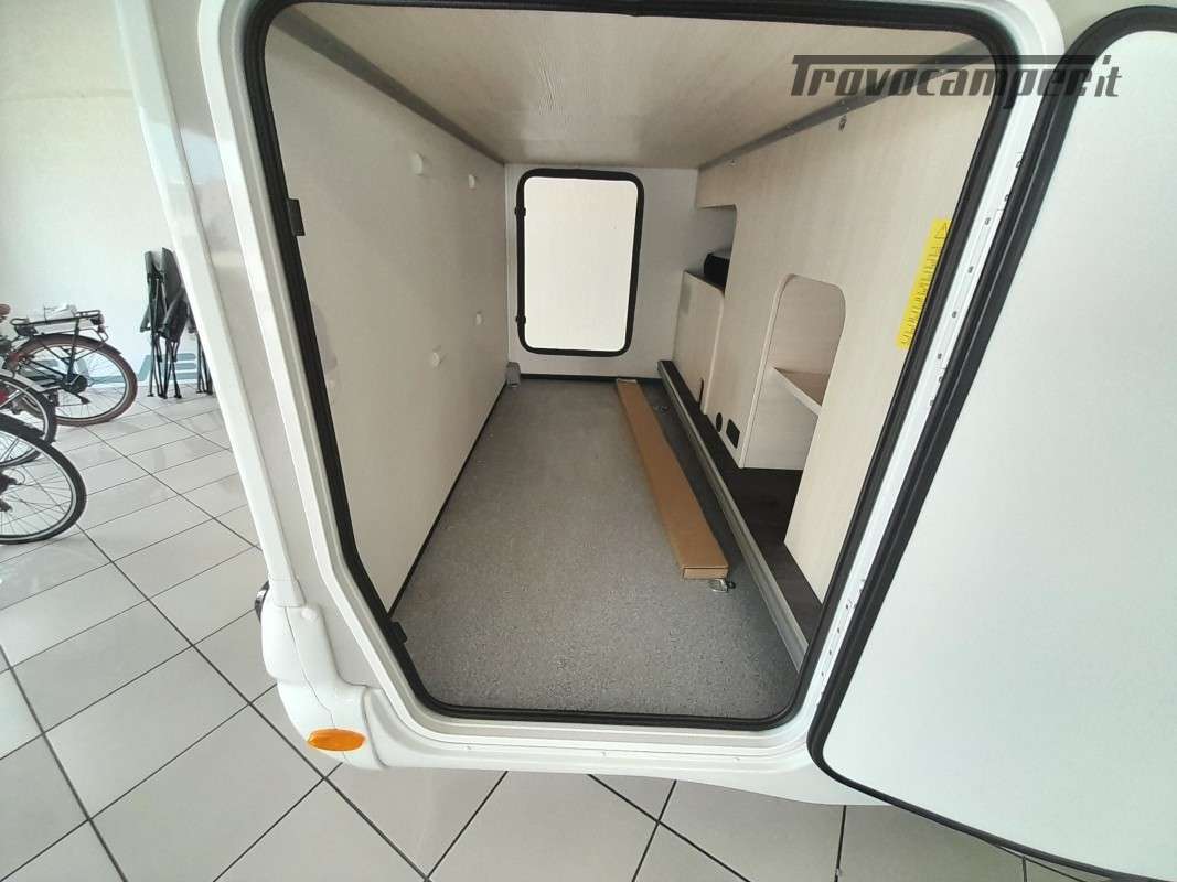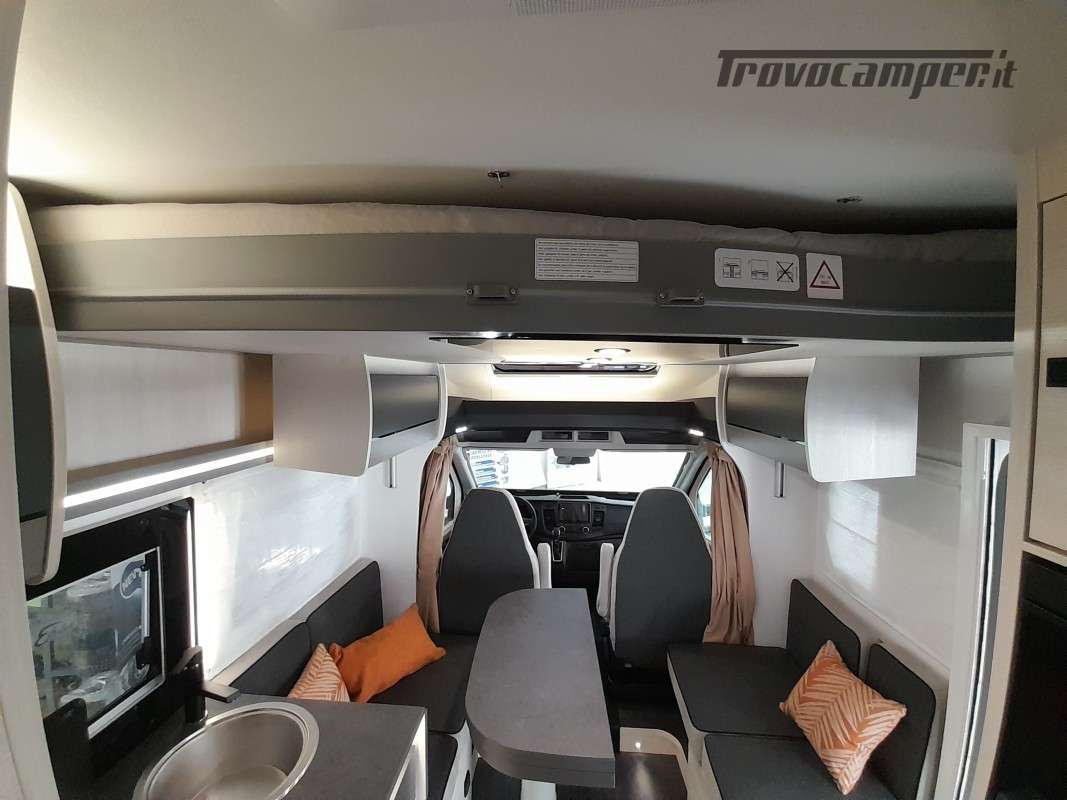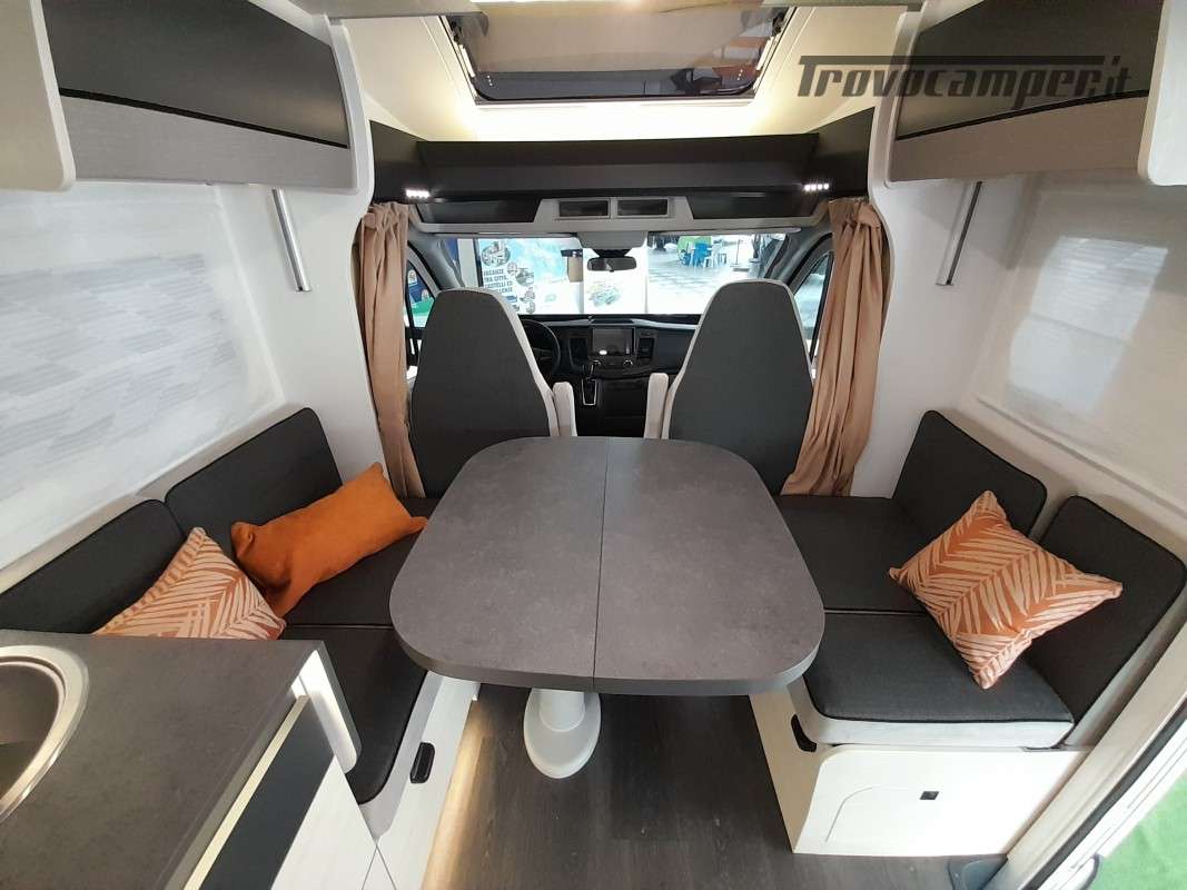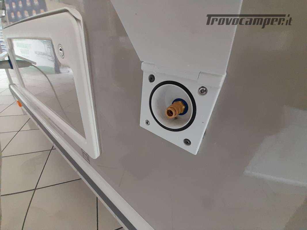 • Pack Accessori Profilato: Tenda da sole esterna, pannello solare, illuminazione esterna sportello di ingresso, zanzariera dello sportello, tenda interna cabina, complementi letto letti gemelli, kit installazione 2a batteria