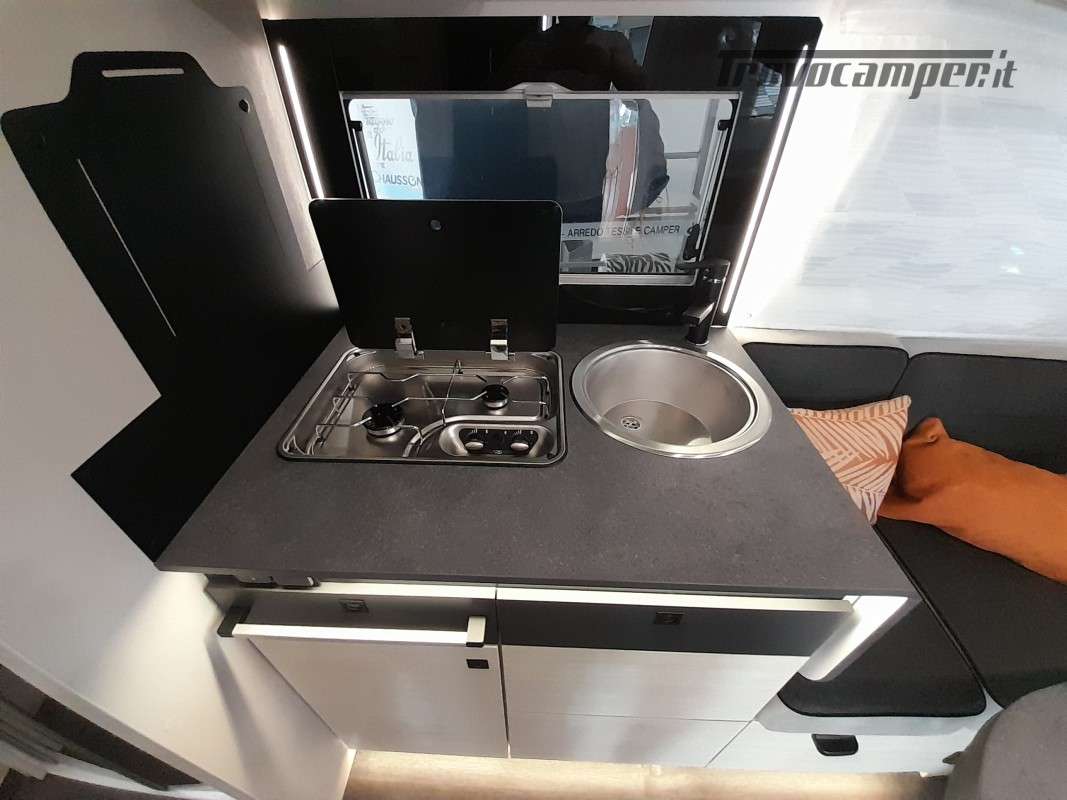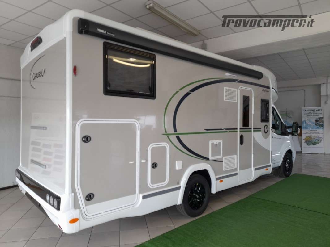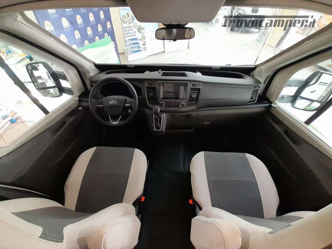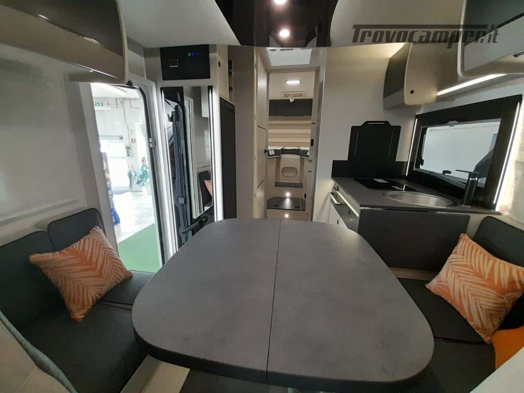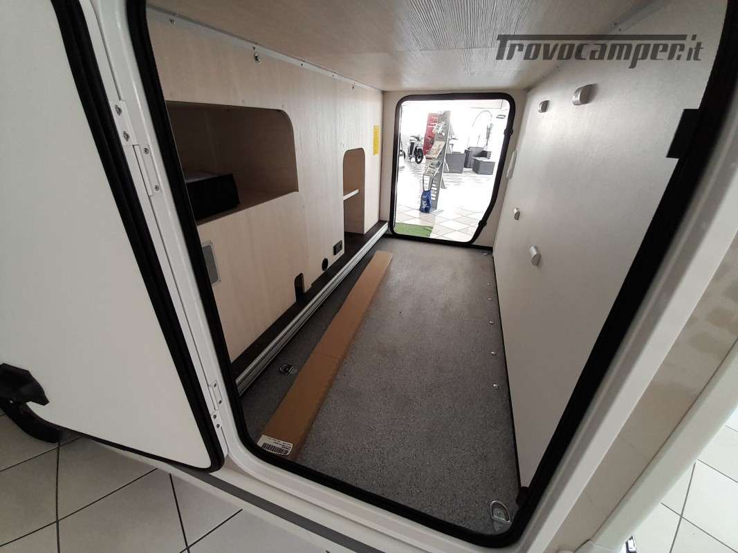 • Pack Accessori Profilato: Tenda da sole esterna, pannello solare, illuminazione esterna sportello di ingresso, zanzariera dello sportello, tenda interna cabina, complementi letto letti gemelli, kit installazione 2a batteria