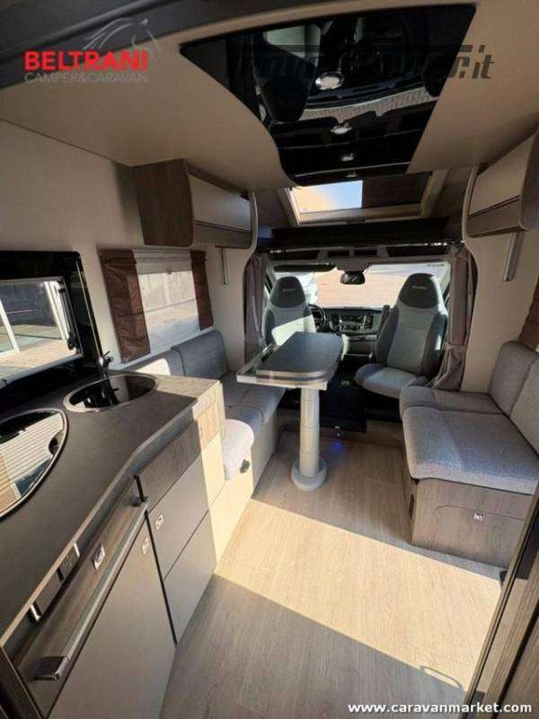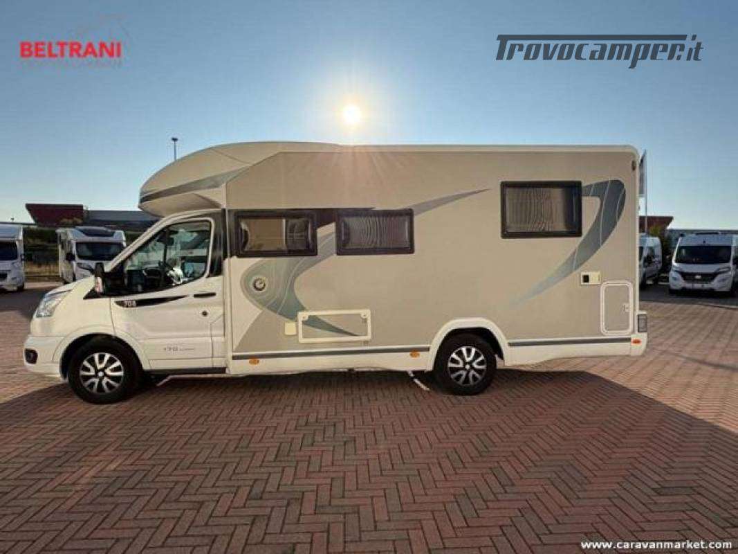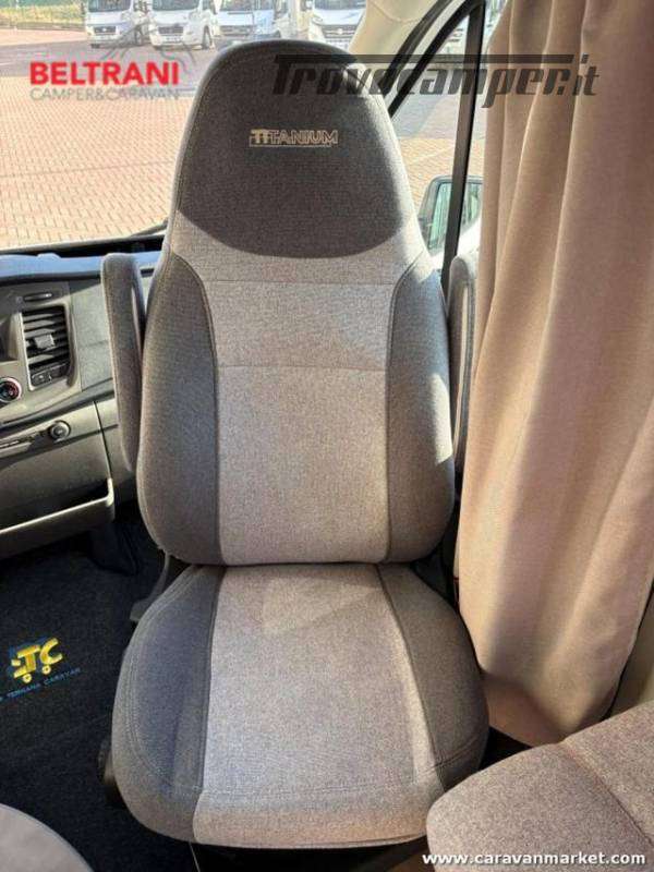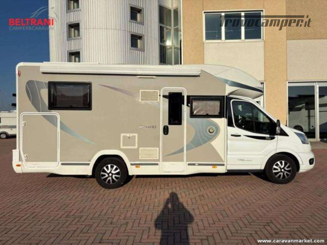 Chausson Titanium 708 2020, semintegrale 7,10 m su Ford 170 CV automatico: letto nautico posteriore regolabile, basculante elettrico, dinette face to face, bagno e doccia separati, frigo capiente e riscaldamento per uso quattro stagioni. Salotto ampio e stivaggi generosi per viaggi confortevoli in 4, ideale per coppie e famiglie che cercano comfort, praticità e guida fluida in soli 7,10 metri.