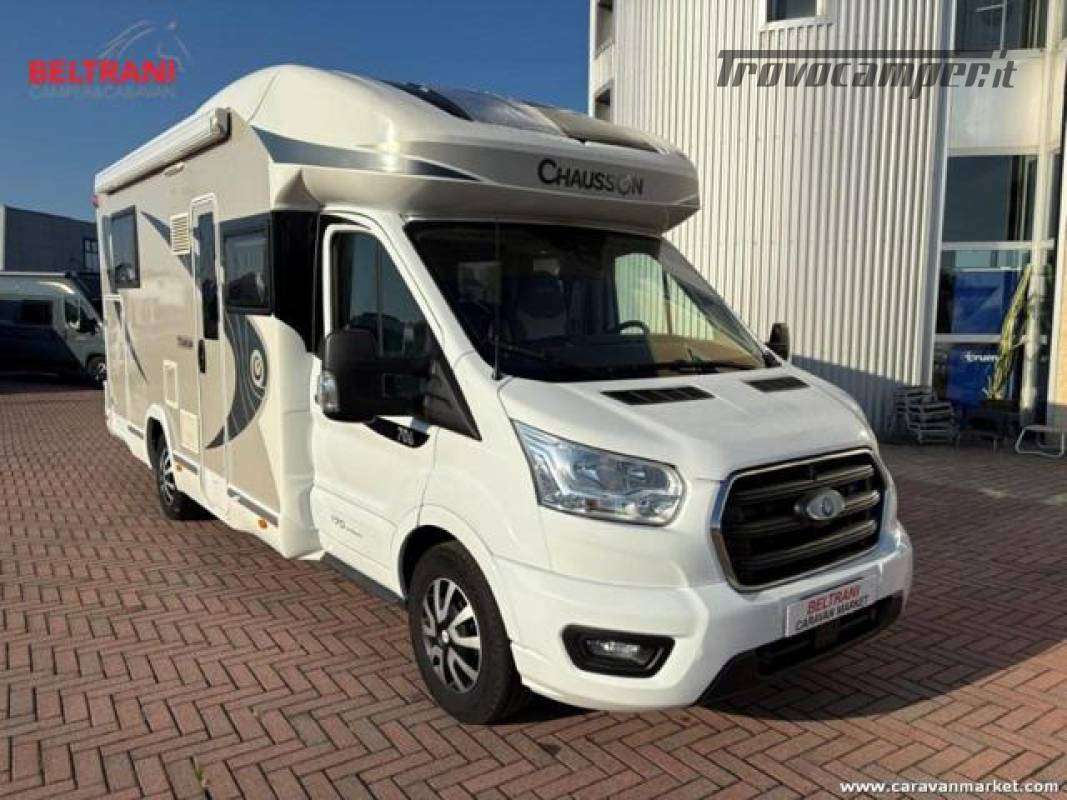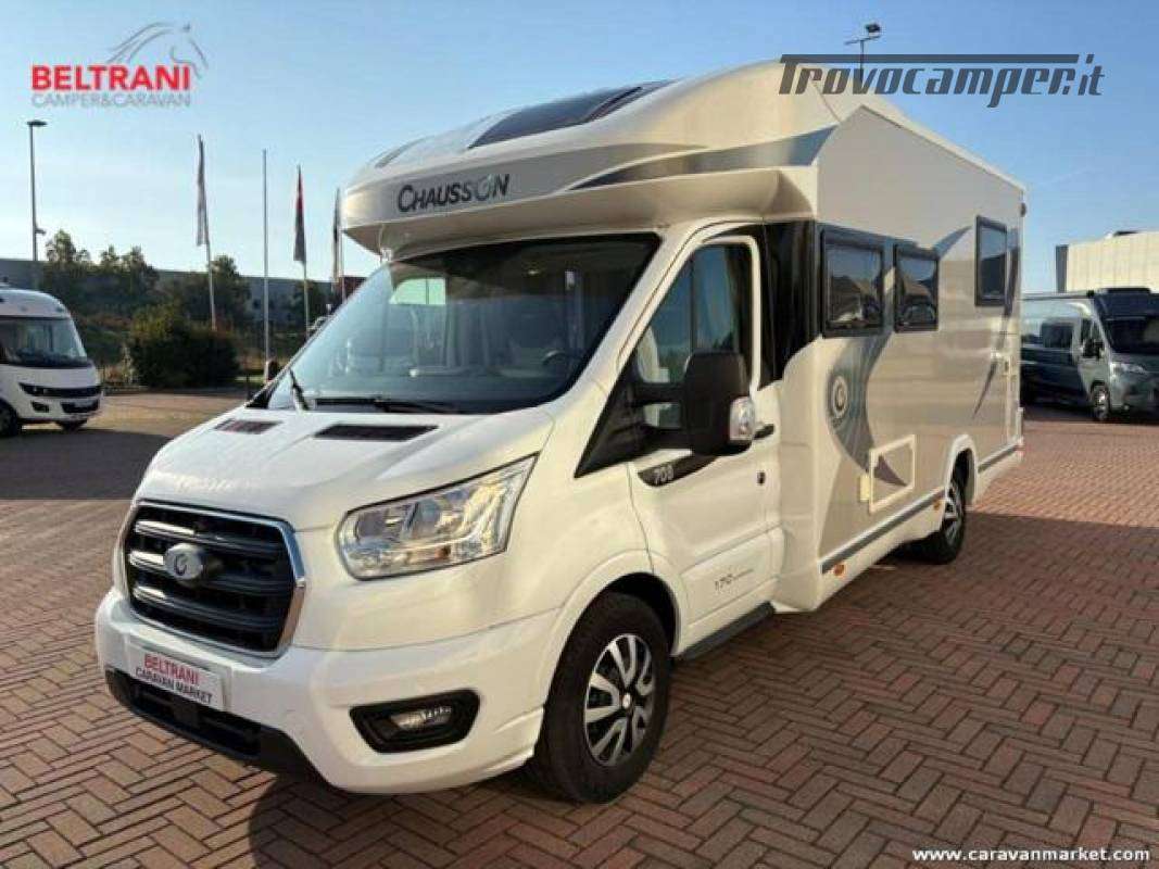 Chausson Titanium 708 2020, semintegrale 7,10 m su Ford 170 CV automatico: letto nautico posteriore regolabile, basculante elettrico, dinette face to face, bagno e doccia separati, frigo capiente e riscaldamento per uso quattro stagioni. Salotto ampio e stivaggi generosi per viaggi confortevoli in 4, ideale per coppie e famiglie che cercano comfort, praticità e guida fluida in soli 7,10 metri.