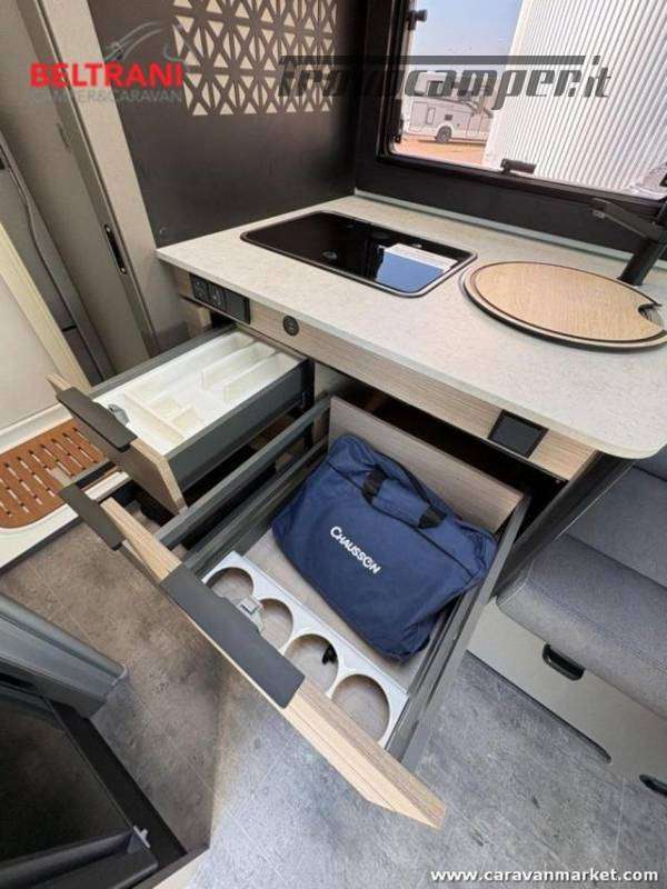 Compatto all?esterno, sorprendentemente spazioso all?interno: il Chausson X550 2024 combina l?agilità di un van (5,99 m x 2,10 m) con il comfort di un semintegrale. Offre un ampio living per cinque persone, letto matrimoniale basculante elettrico, bagno di dimensioni generose e garage posteriore, il tutto in meno di sei metri.