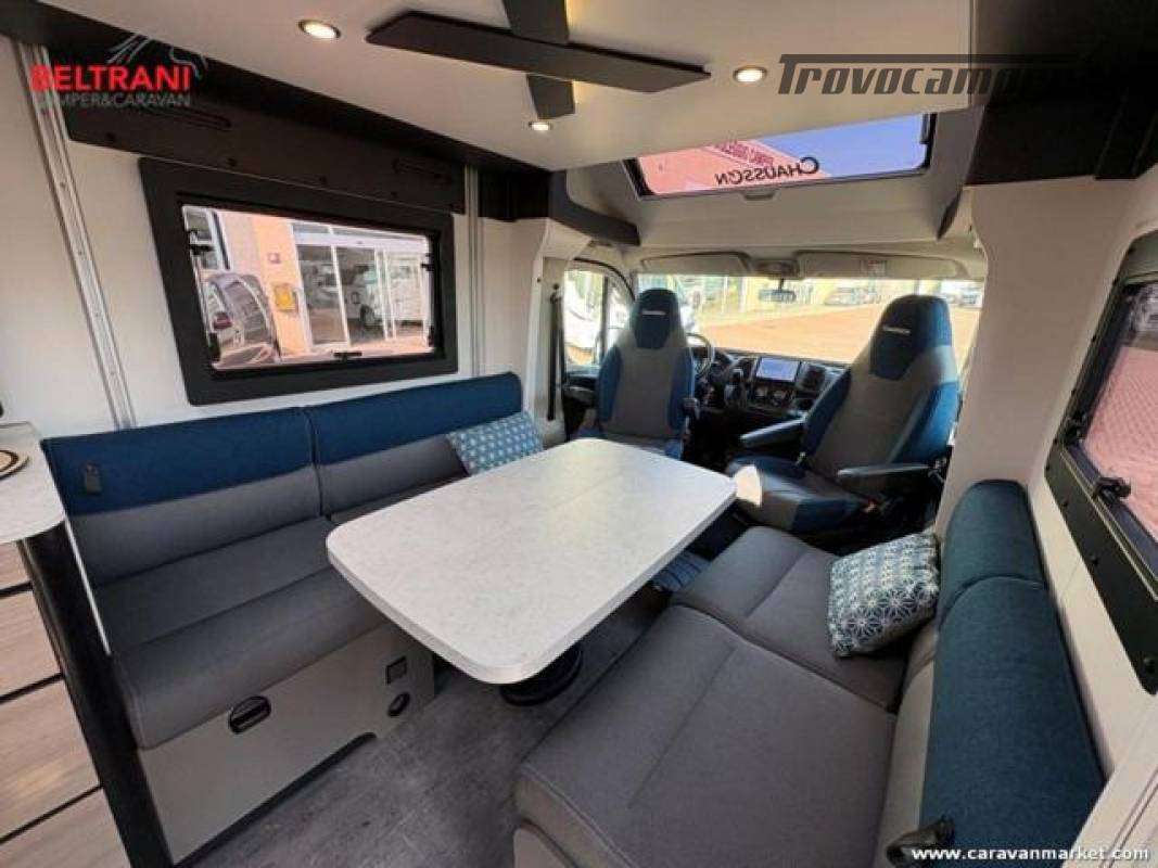 Compatto all’esterno, sorprendentemente spazioso all’interno: il Chausson X550 2024 combina l’agilità di un van (5,99 m x 2,10 m) con il comfort di un semintegrale. Offre un ampio living per cinque persone, letto matrimoniale basculante elettrico, bagno di dimensioni generose e garage posteriore, il tutto in meno di sei metri.