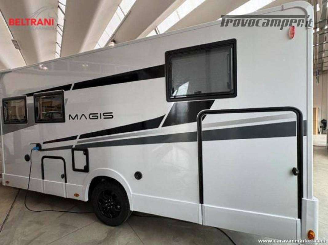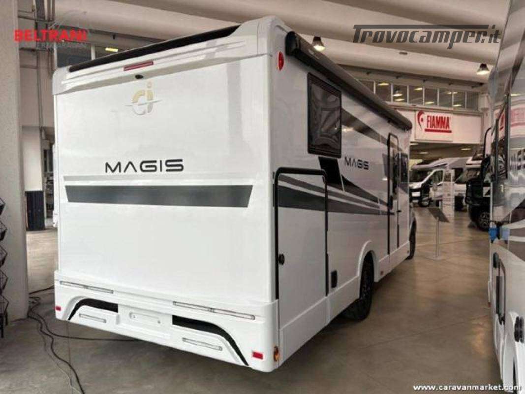 Il CI Magis Elite 87 XT è il camper semintegrale pensato per chi desidera viaggiare con comfort, spazio e tecnologia. Con i suoi 7,45 metri di misura in metri, offre un perfetto equilibrio tra abitabilità e guidabilità, diventando la scelta ideale per famiglie e coppie che vogliono vivere la libertà senza compromessi.All?interno spiccano i letti gemelli posteriori trasformabili in un maxi matrimoniale, una dinette face to face ampia e luminosa con letto basculante elettrico, una cucina completa e funzionale con frigorifero larga e numerosi vani di stivaggio, oltre a un bagno con doccia separata che assicura comodità anche nei viaggi più lunghi.Su strada, il Magis Elite 87 XT si distingue per la meccanica Ford Transit da 165 CV, potente ed affidabile, abbinata ai più moderni sistemi di sicurezza e assistenza alla guida. L?ampio garage posteriore e i numerosi spazi di stivaggio rendono questo camper perfetto per trasportare biciclette, attrezzatura sportiva o bagagli ingombranti.