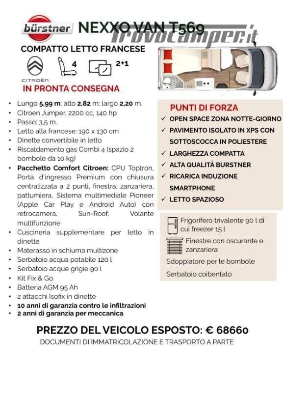 Contatta il venditore e ricordati di dire che hai visto l'annuncio su TrovoCamper!