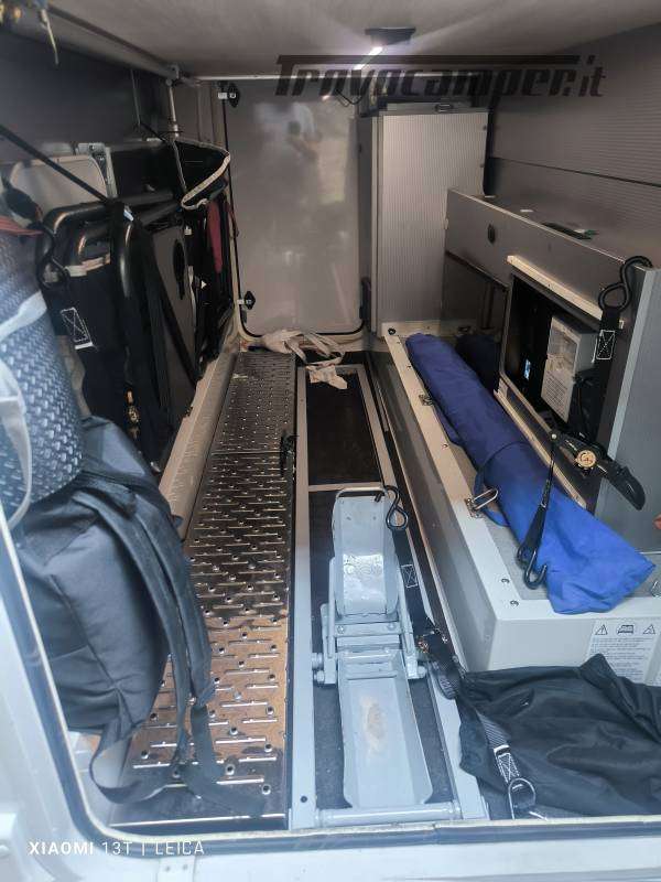 Bagno: finestrato duospace, parete girevole, misure doccia 75x65, wc a cassetta con maceratore e travaso nel nautico 45lt, SOG telecomandato, scarichi (nautico e grigie) riscaldati, motorizzati con videocamere visibile da cruscotto.
