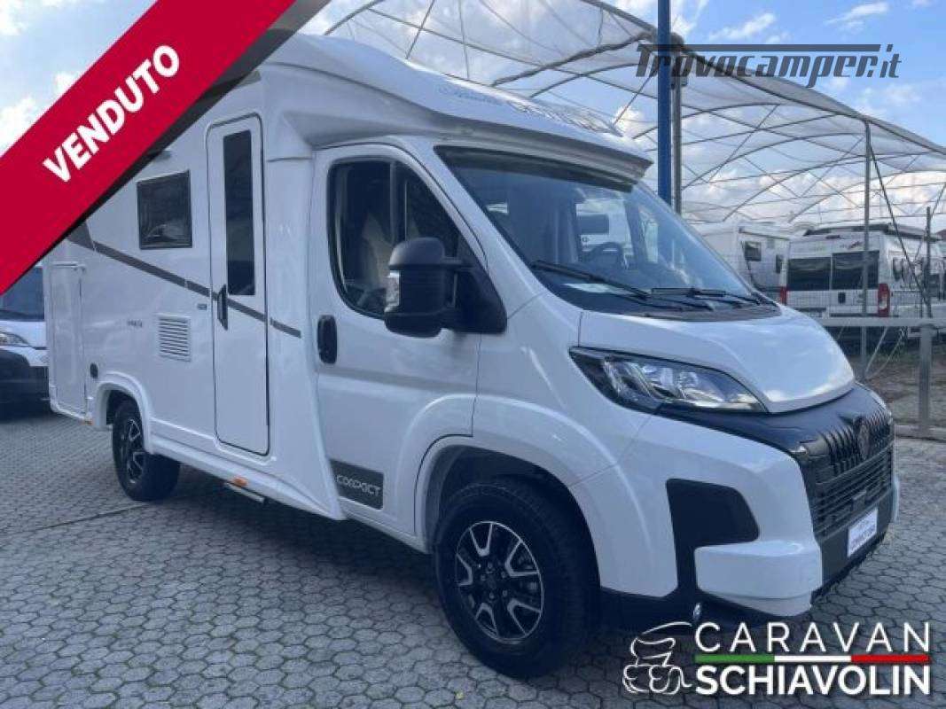 Letto basculante anteriore ? 1.000,00Truma Combi 4000 Diesel ? 610,00Letto supplementare dinette ? 366,00PACK PRIVILEGE COMPACT ? 1.500,00 (Paraurti verniciato, fari fendinebbia, Radio con schermo da 6,8" AppleCarPlay e AndroidAuto, Retrocamera HD, Foderine cabina in tessuto coordinato, Porta a 2 punti XL con finestra e chiusura centralizzata)PACK SPORT ? 1.000,00 (Cerchi in lega 16", Volante e pomello cambio in pelle, inserti del volante in alluminio)DI SERIE sui COMPACT STANDARD : Telaio da 35Qli. 140cv, Climatizzatore cabina, Pneumatic M+S 4 Stagioni,Airbag guidatore e passeggero, Esp, Traction Plus, Hill holder, Hill descent, Start & Stop, Cruise control, Predisposizione radio Dab, Specchietti retrovisori elettrici e riscaldati, Cambio manuale 6 marce, Serbatoio acque grigie riscaldato, Comando Truma CP Plus, Gradino esterno elettrico, Attacchi isofix, Cerchi da 15 in acciaio, Porta cellula XL con un punto di chiusura, KIT Oscurante isolante interno cabina, Finestre con telaio a filo carrozzeria, Predisposizione pannello solare, Predisposizione antenna tv digitale/sat, Zanzariera porta cellula, Luce esterna a led, Tapezzeria di serie DANTE e a richiesta senza sovrapprezzo RAFFAELLO e MICHELANGELO.  PUNTI DI FORZA = Il camper perfetto per chi cerca maneggevolezza e comfort in meno di 6 metri,  offre ambienti ben progettati con letto matrimoniale trasversale posteriore, bagno compatto e funzionale con la parete specchio lavello che ruota creando un grande box doccia, presente anche un grande frigo e una zona giorno pratica e luminosa. La dinette si trasforma in un ulteriore posto letto, mentre il letto basculante anteriore elettrico consente di ospitare comodamente fino a quattro persone. Il garage posteriore, accessibile da entrambi i lati, offre uno spazio di carico sorprendente.CAMPER COMPATTO MADE IN ITALY, SOLO 5.99 MT DI LUNGHEZZA CON LETTO BASCULANTE ANTERIORE ELETTRICO, FRIGORIFERO GRANDE, GARAGE POSTERIORE CON PORTATA 300KG. ANTEPRIMA ASSOLUTA 2026IN PRONTA CONSEGNA .;