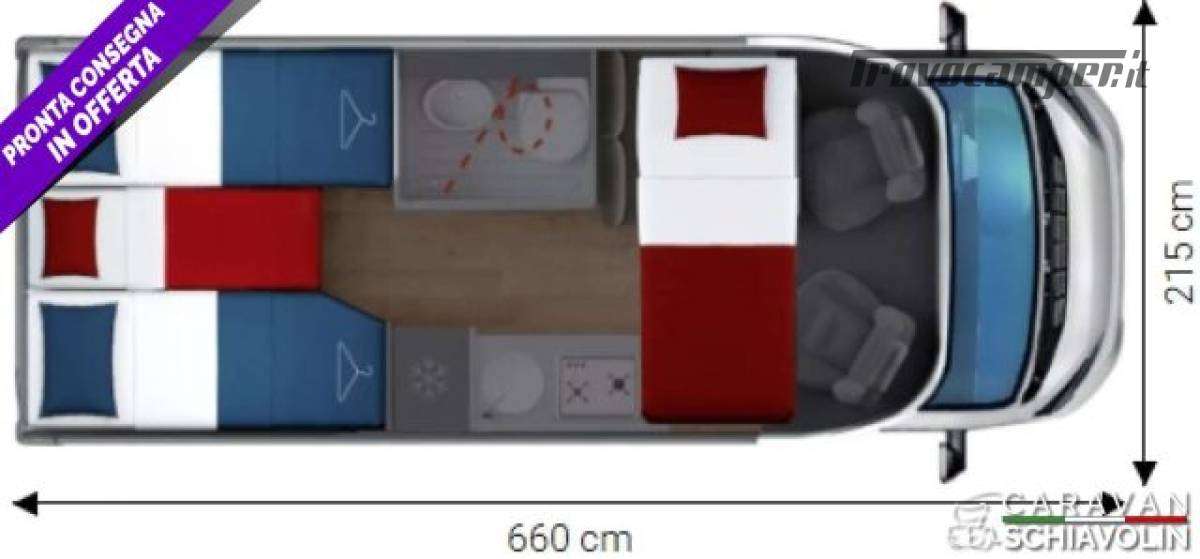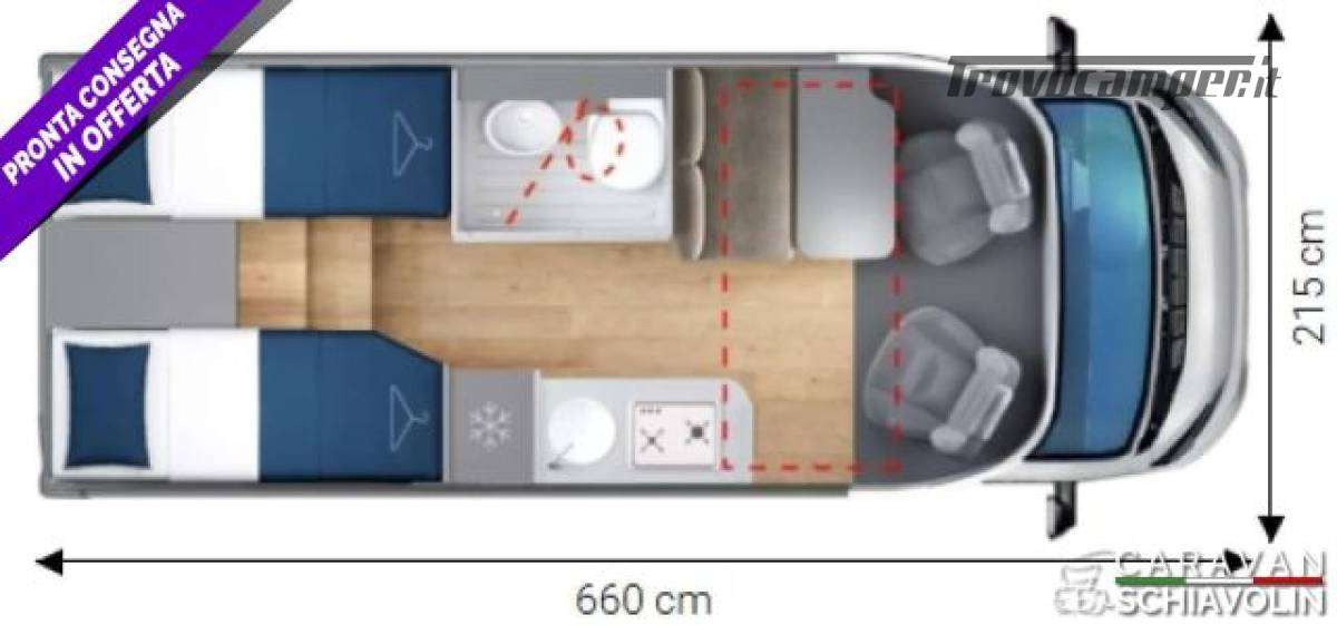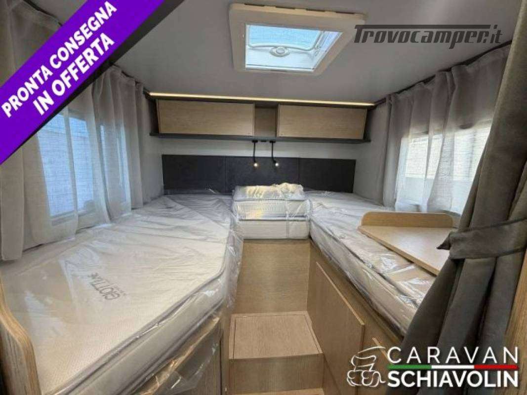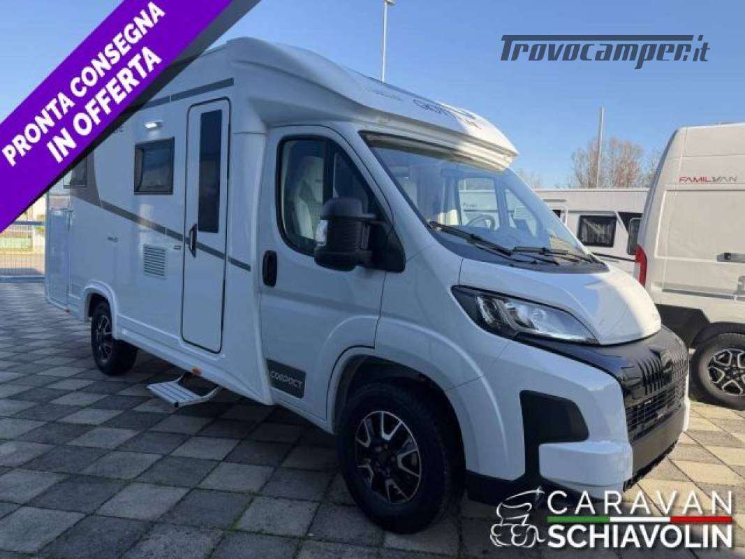 Letto basculante anteriore ? 1.000,00Truma Combi 4000 Diesel ? 610,00PACK PRIVILEGE COMPACT ? 1.500,00 (Paraurti verniciato, fari fendinebbia, Radio con schermo da 6,8" AppleCarPlay e AndroidAuto, Retrocamera HD, Foderine cabina in tessuto coordinato, Porta a 2 punti XL con finestra e chiusura centralizzata)PACK SPORT ? 1.000,00 (Cerchi in lega 16", Volante e pomello cambio in pelle, inserti del volante in alluminio)DI SERIE sui COMPACT STANDARD : Telaio da 35Qli. 140cv, Climatizzatore cabina, Pneumatic M+S 4 Stagioni,Airbag guidatore e passeggero, Esp, Traction Plus, Hill holder, Hill descent, Start & Stop, Cruise control, Predisposizione radio Dab, Specchietti retrovisori elettrici e riscaldati, Cambio manuale 6 marce, Serbatoio acque grigie riscaldato, Comando Truma CP Plus, Gradino esterno elettrico, Attacchi isofix, Cerchi da 15 in acciaio, Porta cellula XL con un punto di chiusura, KIT Oscurante isolante interno cabina, Finestre con telaio a filo carrozzeria, Predisposizione pannello solare, Predisposizione antenna tv digitale/sat, Zanzariera porta cellula, Luce esterna a led, Tapezzeria di serie DANTE e a richiesta senza sovrapprezzo RAFFAELLO e MICHELANGELO. n.b. altro optional a richiesta = Letto supplementare dinette CAMPER SEMINTEGRALE COMPATTO, LETTI GEMELLI SOPRA GARAGE CON PORTATA 300KG, LETTO BASCULANTE ANTERIORE ELETTRICO, GRANDE BAGNO VARIO E FRIGORIFERO GRANDE.NOVITA'  2026IN PRONTA CONSEGNA .;