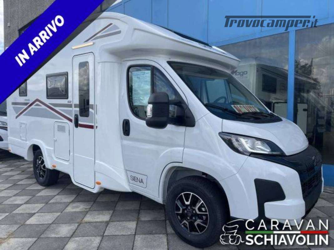 Letto basculante ? 1.000,00Letto supplementare in dinette ? 305,00Truma Combi 4000 Diesel ? 610,00DI SERIE SU QUESTO VEICOLO GLI ADAS A SEGUIRE: Full brake control, Pedestrian detection (frenata automatica d?emergenza, compreso rilevamento pedoni), Lane support System (correzione superamento linea), Driver drowsiness detection (rilevamento sonnolenza conducente), Intelligent speed assist, Traffic signs recognition (riconoscimento segnali stradali), TPMS (sensore pressione pneumatici). DI SERIE NELLA VERSIONE PREMIERE EDITION: Cambio automatico 8 marce, Radio con schermo da 9'' (AppleCarPlay e AndroidAuto), Comandi radio al volante, Oscuranti plissettati in cabina, Tapezzeria ELBA, Coperchio lavello cucina, Duocontrol, Tappeto moquette cellula, tappeto moquette cabina)PACK PRIVILEGE (Paraurti verniciato in tinta, Fari fendinebbia, Porta a 2 punti XL con finestra e chiusura centralizzata, Radio con schermo da 6,8" Apple Car Play e Android auto, Comandi radio al volante, Retrocamera HD, Foderine cabina in tinta con la tapezzeria)PACK SPORT (Cerchi in lega 16" bicolore, Volante e pomello cambio in pelle e Inserti al volante in alluminio)DI SERIE sui SIENA STANDARD : Telaio da 35Qli. 140cv, Climatizzatore cabina, Sospensioni rinforzate bilama posteriori, Pneumatic M+S 4 Stagioni,Airbag guidatore e passeggero, Esp, Traction Plus, Hill holder, Hill descent, Start & Stop, Cruise control, Predisposizione radio Dab, Specchietti retrovisori elettrici e riscaldati, Cambio manuale 6 marce, Serbatoio acque grigie riscaldato, Comando Truma CP Plus, Luci posteriori a Led, Attacchi isofix (non disponibili con dinette face to face) Cerchi da 15 in acciaio, Porta cellula XL con un punto di chiusura, Oscurante isolante interno cabina, Maxi oblò sky View (solo profilati), Predisposizione pannello solare, Predisposizione antenna tv digitale/sat, Zanzariera porta cellula, Luce esterna a led, Tapezzeria Giglio e Pianosa, Letto elettrico anteriose (di serie solo 350e 396)PLUS = Il Siena 330 è ideale per chi desidera un camper agile completo e con una lunghezza di 5,99 mt. offre un letto matrimoniale posteriore una dinette conviviale e un bagno con doccia separatae un frigorifero grande, la cucina laterale è ben attrezzata, gli spazi interni garantiscono comfort e abitabilità in dimensioni contenute. Perfetto per due persone o piccole famiglie. CAMPER SEMINTEGRALE COMPATTO IN VETRORESINA CON LETTO BASCULANTE E COMODO LETTO POSTERIORE BASSO, FRIGO GRANDE E GRANDE BAGNO, TUTTO IN SOLI  599 cm.DI SERIE ATTACCHI ISOFIX SU SEDUTE DINETTENOVITA' 2026IN ARRIVO FOTO DI REPERTORIO.;