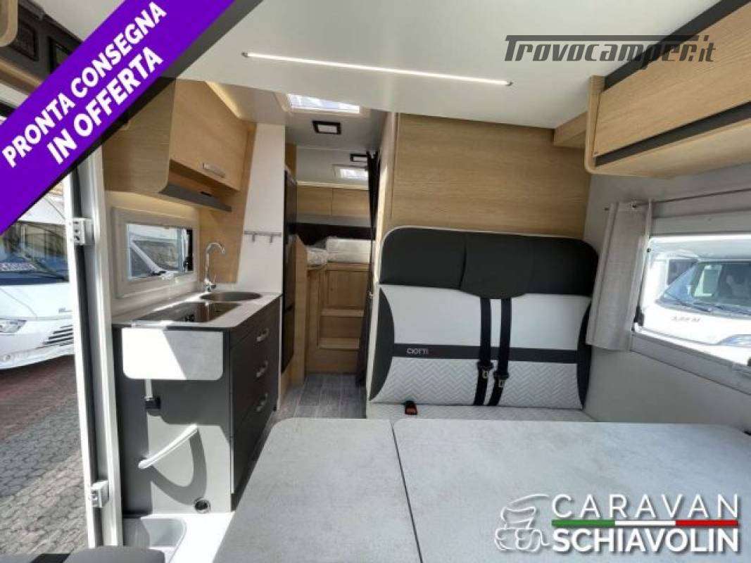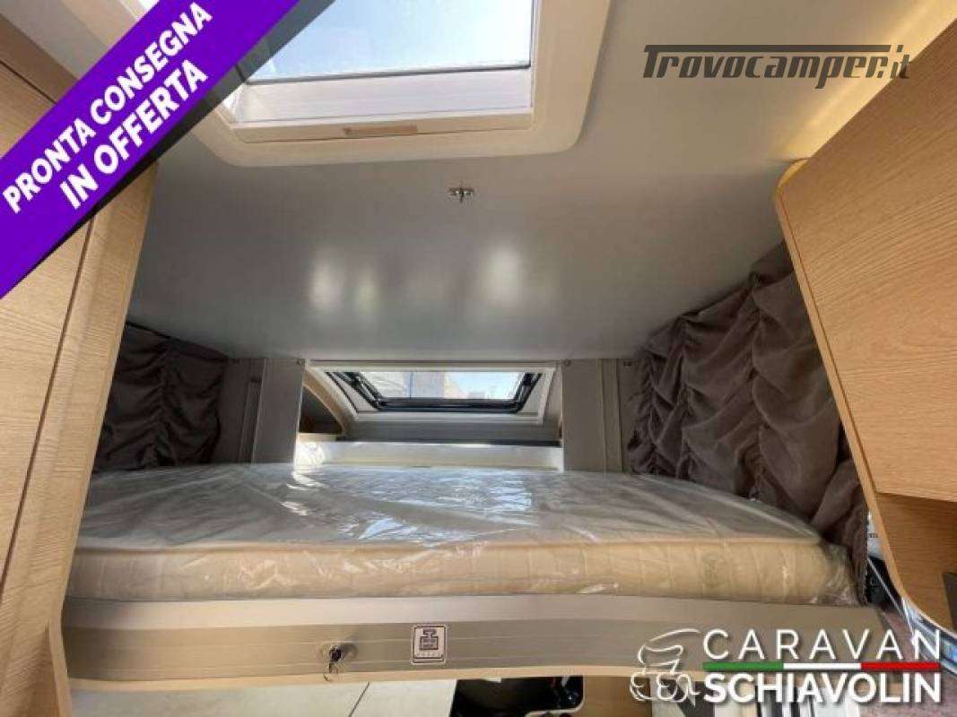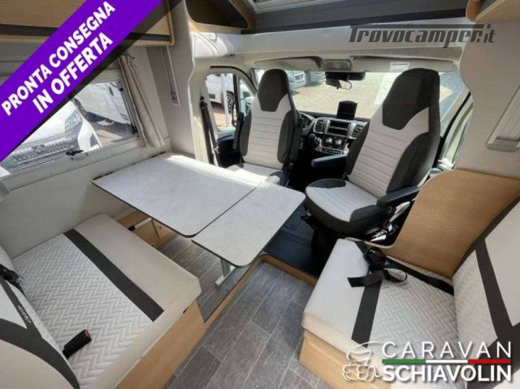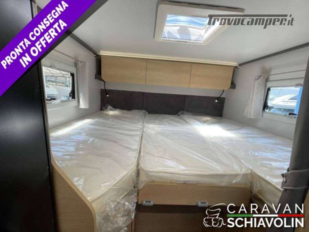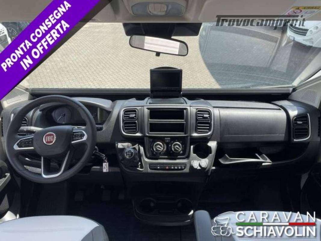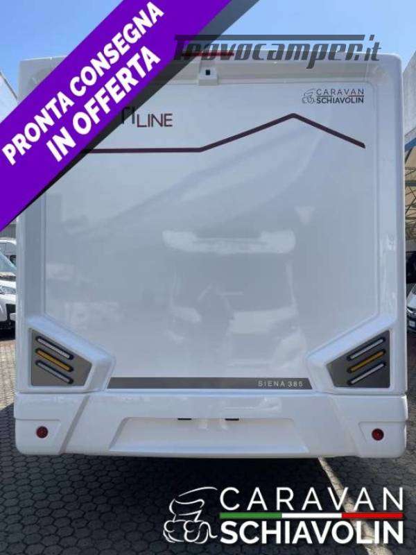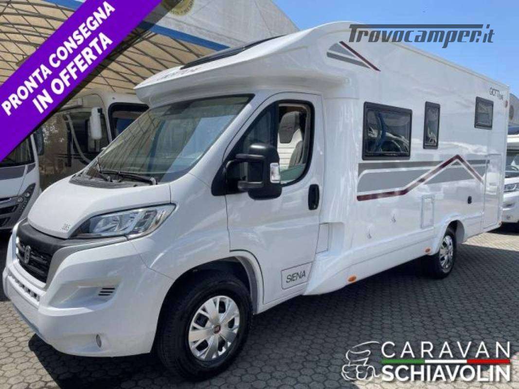 Letto basculante elettrico anteriore ? 1.000,00Truma Combi 4000 Diesel ? 610,00DI SERIE NELLA VERSIONE PREMIERE EDITION: Cambio automatico 8 marce, Radio con schermo da 9'' (AppleCarPlay e AndroidAuto), Comandi radio al volante, Oscuranti plissettati in cabina, Tapezzeria ELBA, Coperchio lavello cucina, Duocontrol, Tappeto moquette cellula, tappeto moquette cabina).PACK PRIVILEGE (Paraurti verniciato in tinta, Fari fendinebbia, Porta a 2 punti XL con finestra e chiusura centralizzata, Radio con schermo da 6,8" Apple Car Play e Android auto, Comandi radio al volante, Retrocamera HD, Foderine cabina in tinta con la tapezzeria)PACK SPORT (Cerchi in lega 16" bicolore, Volante e pomello cambio in pelle e Inserti al volante in alluminio) DI SERIE sui SIENA STANDARD : Telaio da 35Qli. 140cv, Climatizzatore cabina, Sospensioni rinforzate bilama posteriori, Pneumatic M+S 4 Stagioni,Airbag guidatore e passeggero, Esp, Traction Plus, Hill holder, Hill descent, Start & Stop, Cruise control, Predisposizione radio Dab, Specchietti retrovisori elettrici e riscaldati, Cambio manuale 6 marce, Serbatoio acque grigie riscaldato, Comando Truma CP Plus, Luci posteriori a Led, Attacchi isofix (non disponibili con dinette face to face) Cerchi da 15 in acciaio, Porta cellula XL con un punto di chiusura, Oscurante isolante interno cabina, Maxi oblò sky View (solo profilati), Predisposizione pannello solare, Predisposizione antenna tv digitale/sat, Zanzariera porta cellula, Luce esterna a led, Tapezzeria Giglio e Pianosa, Letto elettrico anteriose (di serie solo 350e 396)PLUS = Semintegrale ideale per chi desidera un camper versatile con i suoi 6,99 metri di lunghezza, letti posteriori gemelli con materasso in dotazione per essere uniti, bagno con box doccia, zona zona giorno luminosa e accogliente. La dinette si trasforma in un ulteriore posto letto e sopra il soggiorno c'è un letto matrimoniale discendente elettrico rendendo questo modello perfetto per coppie o piccoli nuclei familiari. L'ampio garage posteriore, accessibile da entrambi i lati, consente di portare tutto il necessario per ogni avventura. ? PLUS = Semintegrale ideale per chi desidera un camper versatile con i suoi 6,99 metri di lunghezza, letti posteriori gemelli con materasso in dotazione per essere uniti, bagno con box doccia, zona zona giorno luminosa e accogliente. La dinette si trasforma in un ulteriore posto letto e sopra il soggiorno c'è un letto matrimoniale discendente elettrico rendendo questo modello perfetto per coppie o piccoli nuclei familiari. L'ampio garage posteriore, accessibile da entrambi i lati, consente di portare tutto il necessario per ogni avventura.
