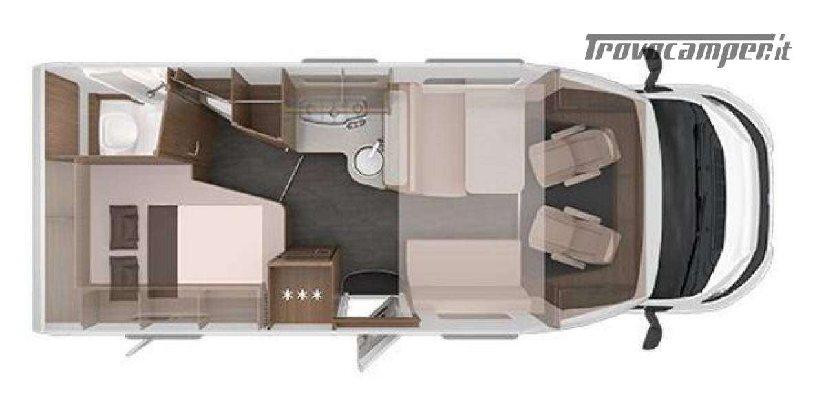 DISPOSIZIONE Letto basculante anteriore e letto matrimoniale laterale posteriore