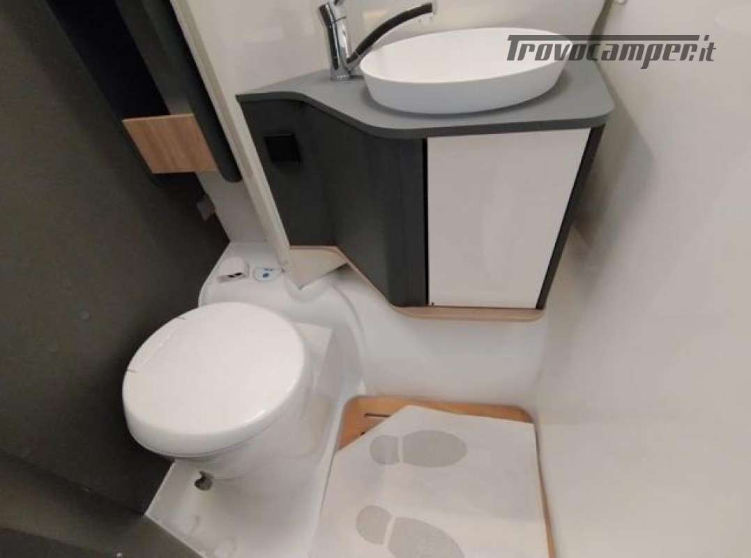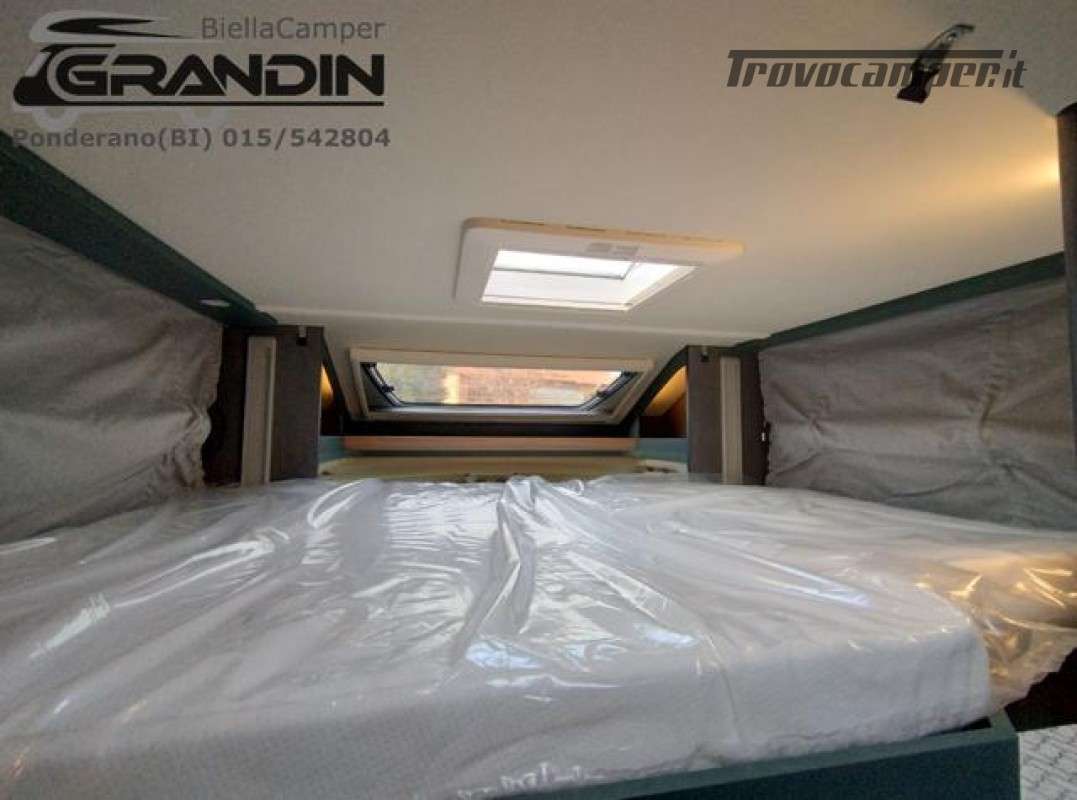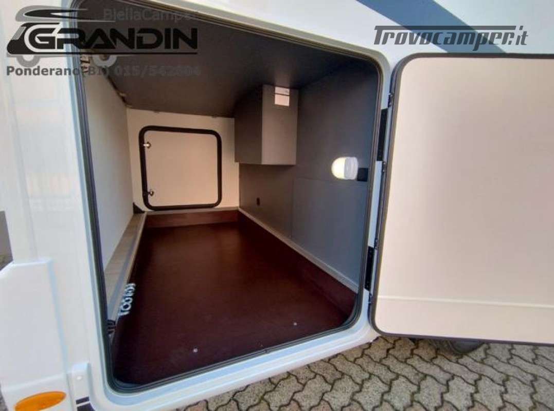 Letto basculante in dinette e letti gemelli in coda con ampio garage portamoto.