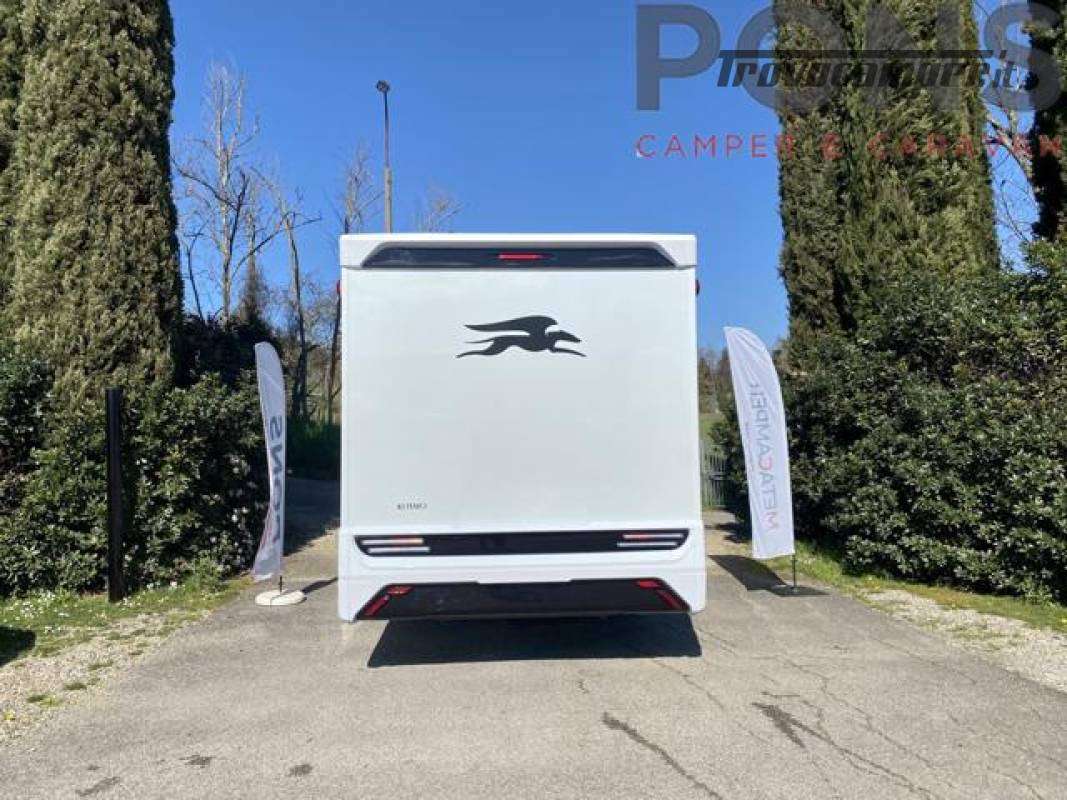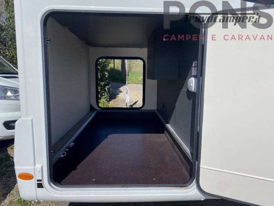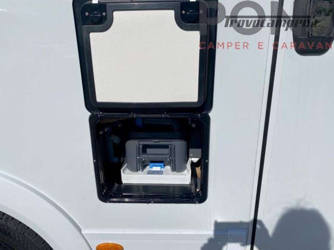 Piano cottura a 3 fuochi, lavello in acciaio inox e frigorifero con selezione automatica della fonte di energia; bagno con doccia separata; e nella parte posteriore letti gemelli con possibilità di trasformazione in matrimoniale con scaletta e, al di sotto, un guardaroba con binario estraibile; altri due posti letto ricavabili dal letto basculante elettrico sopra il soggiorno.