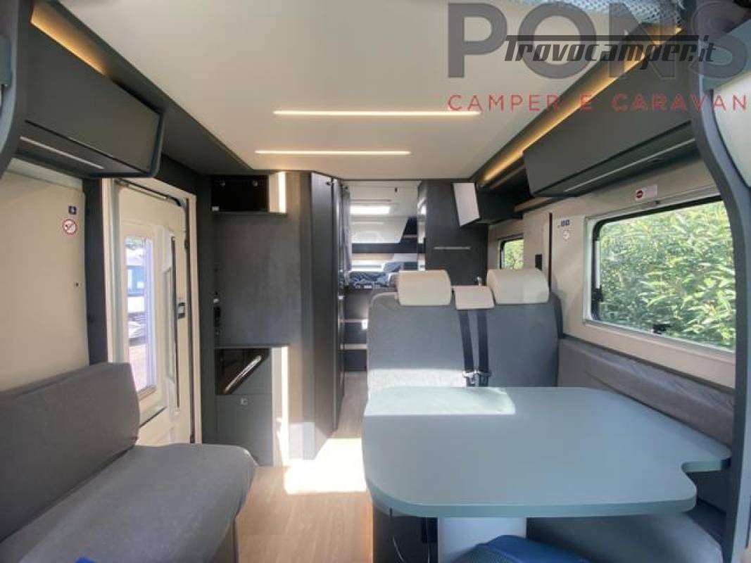 Nella sua lunghezza sotto i 7 mt questo bellissimo veicolo offre una luminosa zona giorno grazie al maxi oblò panoramico; dinette dotata di un tavolo ergonomico con piano traslabile anti-graffio e anti impronte, sedili cabina girevoli, numerosi pensili per lo stivaggio e un vano porta-scarpe all?ingresso.