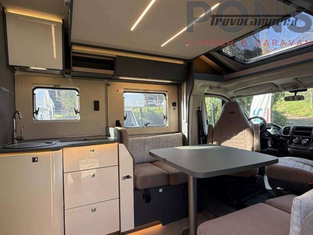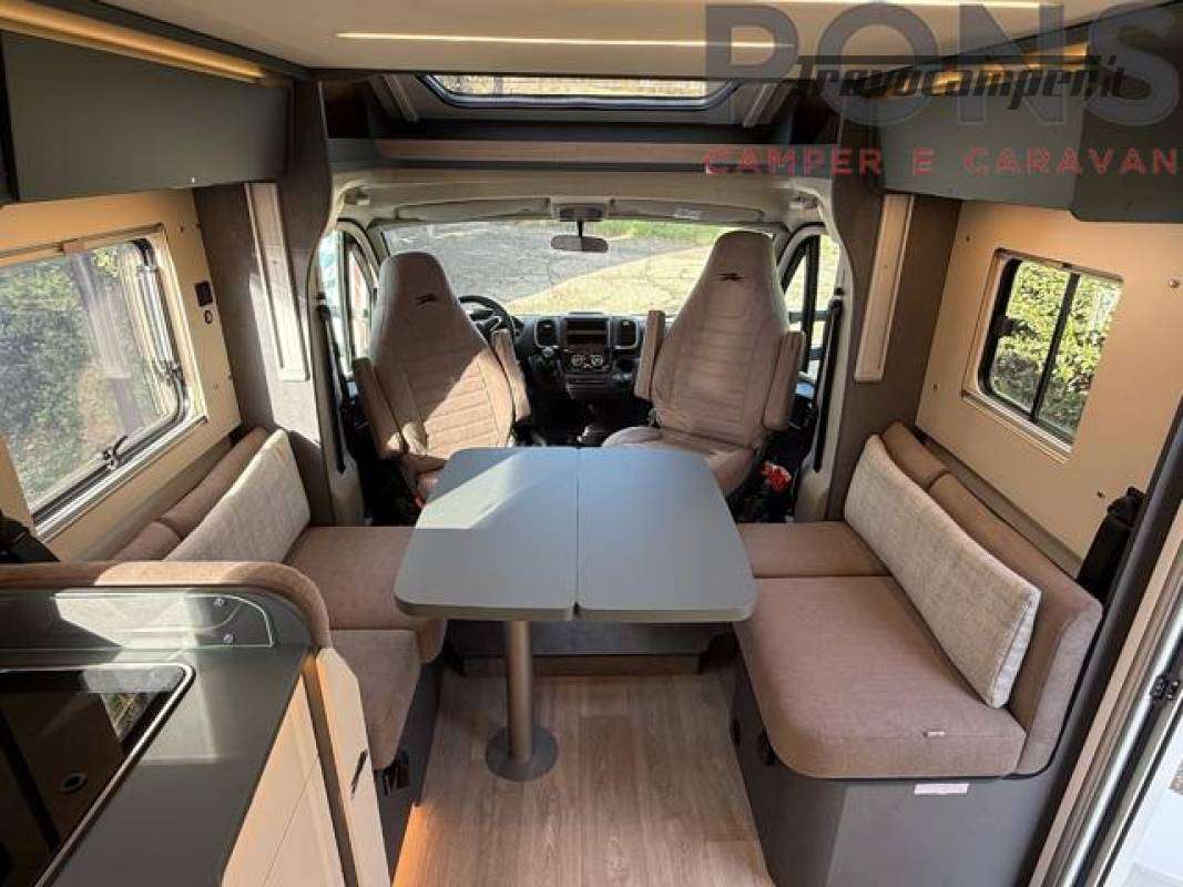 All?ingresso trovi un ampio soggiorno con doppia seduta contrapposta e tavolo centrale regolabile e ribaltabile: un vero salotto, luminosissimo grazie al grande skyroof e alle finestre laterali e a una completa illuminazione full Led. Sedili cabina girevoli e arredi moderni nei toni grigio/tortora, con la tappezzeria Siena e i cuscini Liguria che rendono l?ambiente caldo e accogliente.