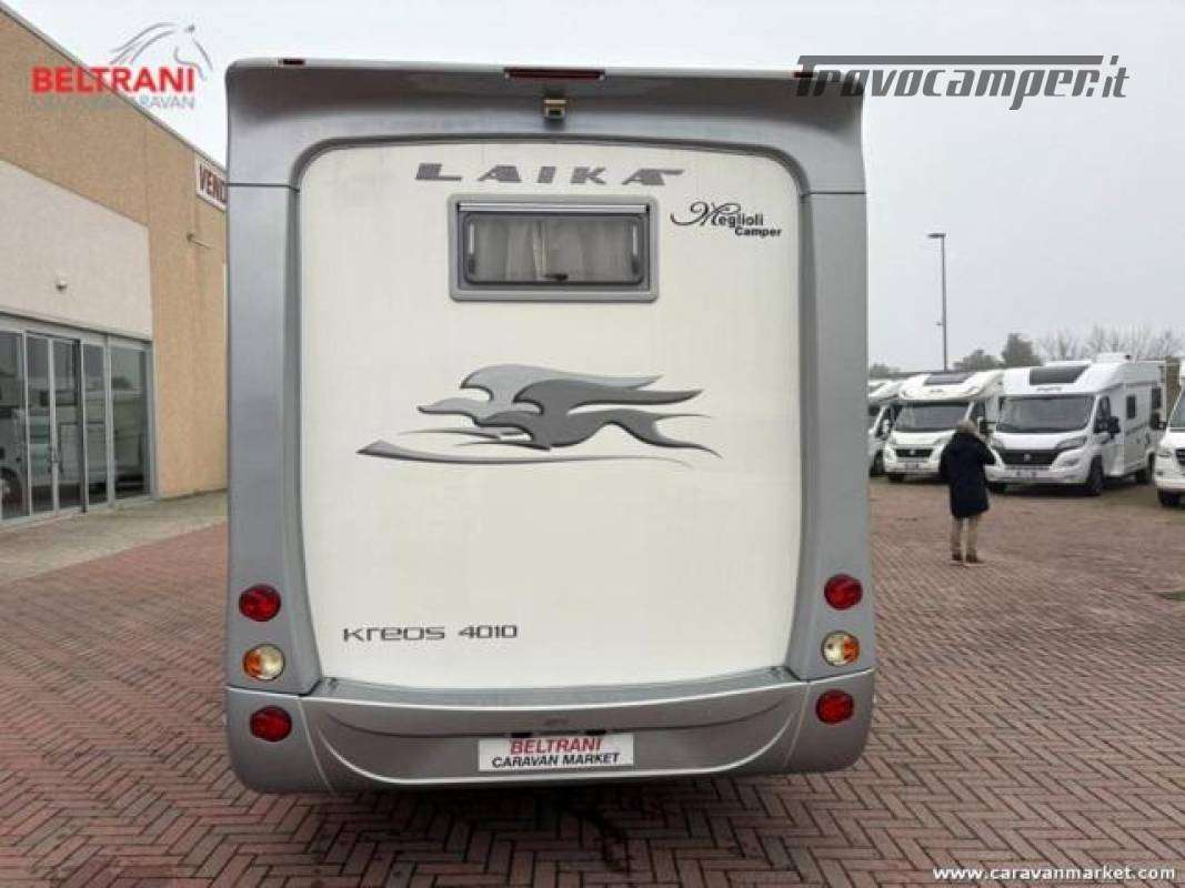 Laika Kreos 4010 semintegrale usato anno 2013, in pronta consegna, tenuto molto bene e pronto per partire. Layout pratico e molto richiesto, con letto matrimoniale trasversale in coda, ideale per chi vuole comfort notturno senza rinunciare alla vivibilità della zona giorno. Camper con 4 posti omologati e 4 posti letto grazie al letto basculante sopra la dinette, perfetto per viaggi in coppia o in famiglia, con qualità costruttiva Laika e ambienti accoglienti.
