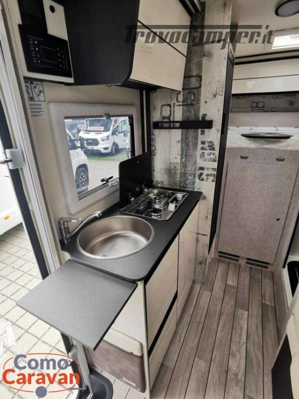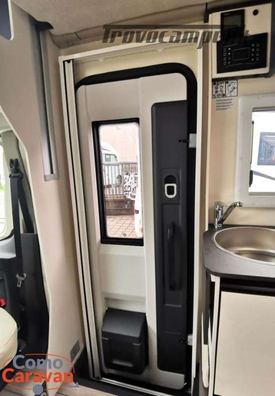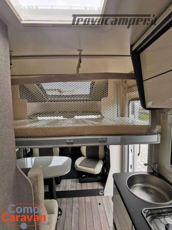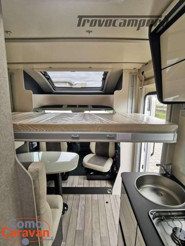 Motore da 165 CV Light Duty con cambio manuale , Fari "High Series" con luci di svolta statiche, Vano portaoggetti con serratura, Finiture plancia e "Trend", Paraurti e modanature laterali verniciati in tinta con la carrozzeria, Porta XL con 2 punti di chiusura con finestra e chiusura centralizzata, Pannello solare da 200W con regolatore MPPT, Pannello di controllo CP Plus, Braccio TV, Tetto panoramico, Coprilavello, Fodere sedili coordinate alla tappezzeria, Tende da cabina plissettate