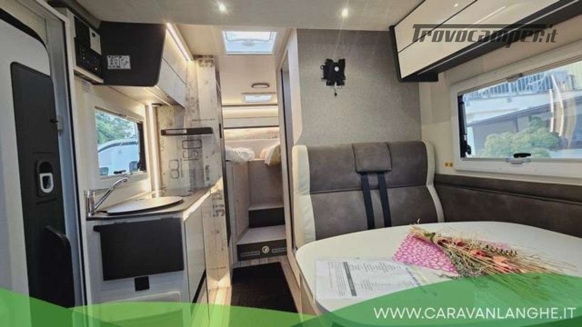 PACK SLIM Motore da 165 cv - Fari "High Series"con luci di svolta statiche - Vano portaoggetti con serratura - Finiture plancia e "Trend" -Paraurti e modanature laterali verniciati in tinta con la carrozzeria Porta con 2 punti di chiusura, con finestra e chiusura centralizzata - Pannello solare da 200 W con regolatore MPPT - Pannello di controllo CP-Plus Braccio televisivo - tetto panoramico Coprilavello - Coprisedili cabina