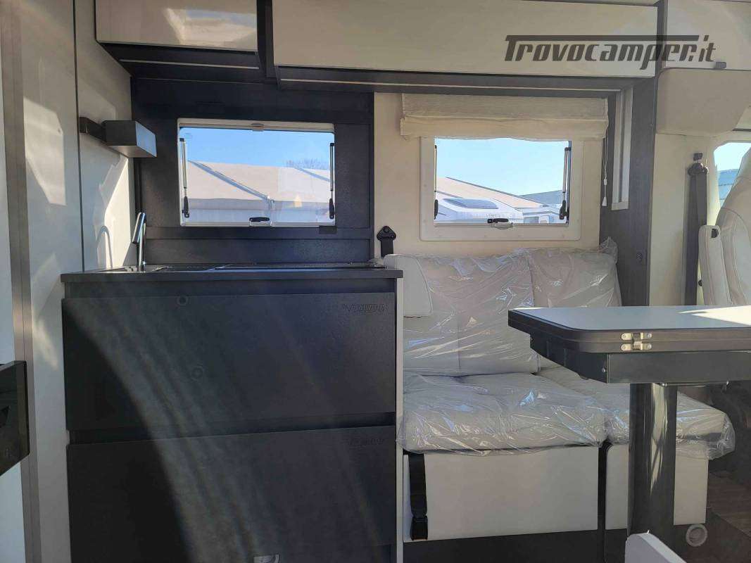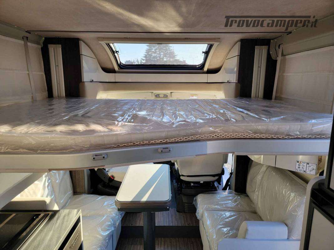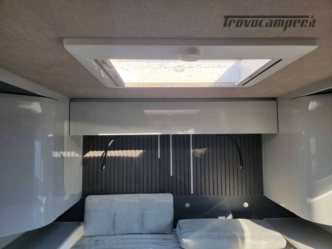 Semintegrale con letto centrale, lungo 7,47 metri, con grande salone face to face.