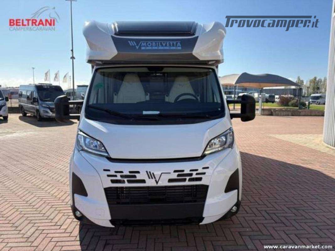Mobilvetta Krosser P86 2026 | Automatico. Semintegrale con doppio pavimento tecnico e layout con letti gemelli posteriori, pensato per chi cerca comodità di alto livello e ampia capacità di stivaggio in ogni stagione, Il cambio automatico su Fiat Ducato 2.2 rende la guida fluida e sicura, mentre il living face?to?face con skydome, cucina centrale completa e toilette con doccia separata mettono a disposizione spazi luminosi e funzionali per la vita a bordo, Fari full LED, ampio garage passante collegato all?abitacolo e dotazioni moderne per 4 posti viaggio/letto completano un allestimento curato, ideale per viaggi lunghi con comodità, tecnologia e design in puro stile Mobilvetta