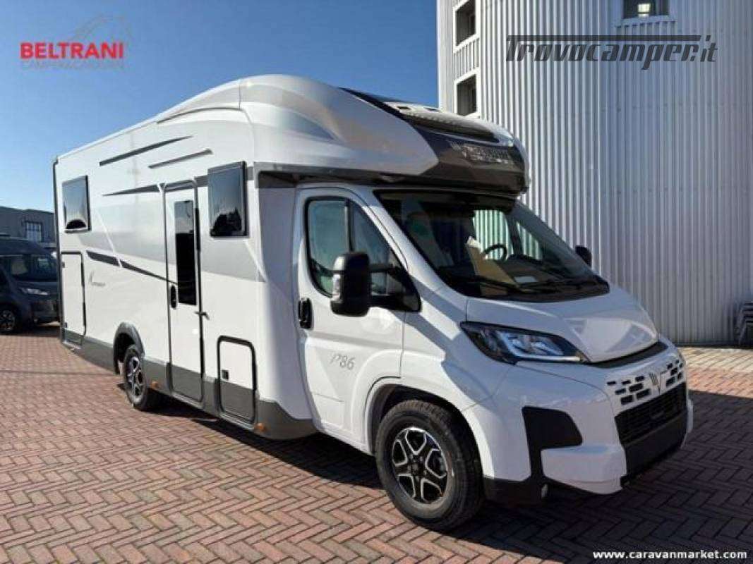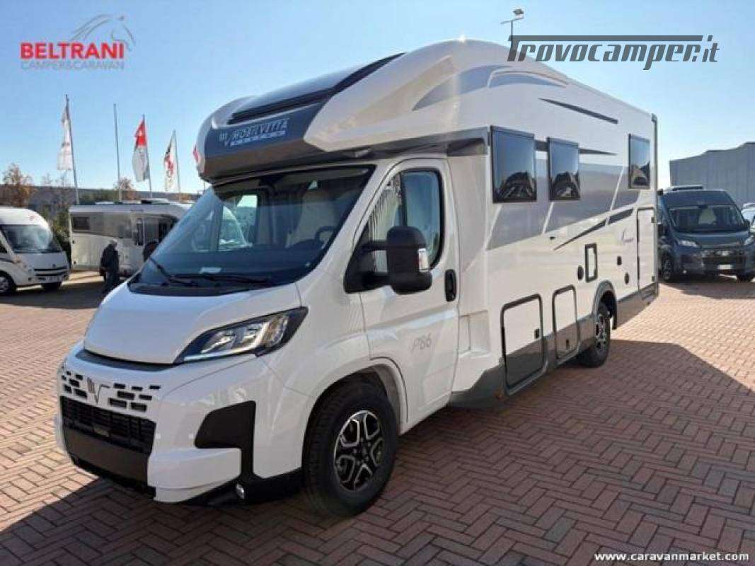 Mobilvetta Krosser P86 2026 | Automatico. Semintegrale con doppio pavimento tecnico e layout con letti gemelli posteriori, pensato per chi cerca comfort di alto livello e grande capacità di stivaggio in ogni stagione, Il cambio automatico su Fiat Ducato 2.2 rende la guida fluida e sicura, mentre il living face?to?face con skydome, cucina centrale completa e toilette con doccia separata offrono spazi luminosi e funzionali per la vita a bordo, Fari full LED, ampio garage passante collegato all?abitacolo e dotazioni moderne per 4 posti viaggio/letto completano un allestimento curato, ideale per viaggi lunghi con comfort, tecnologia e design in puro stile Mobilvetta