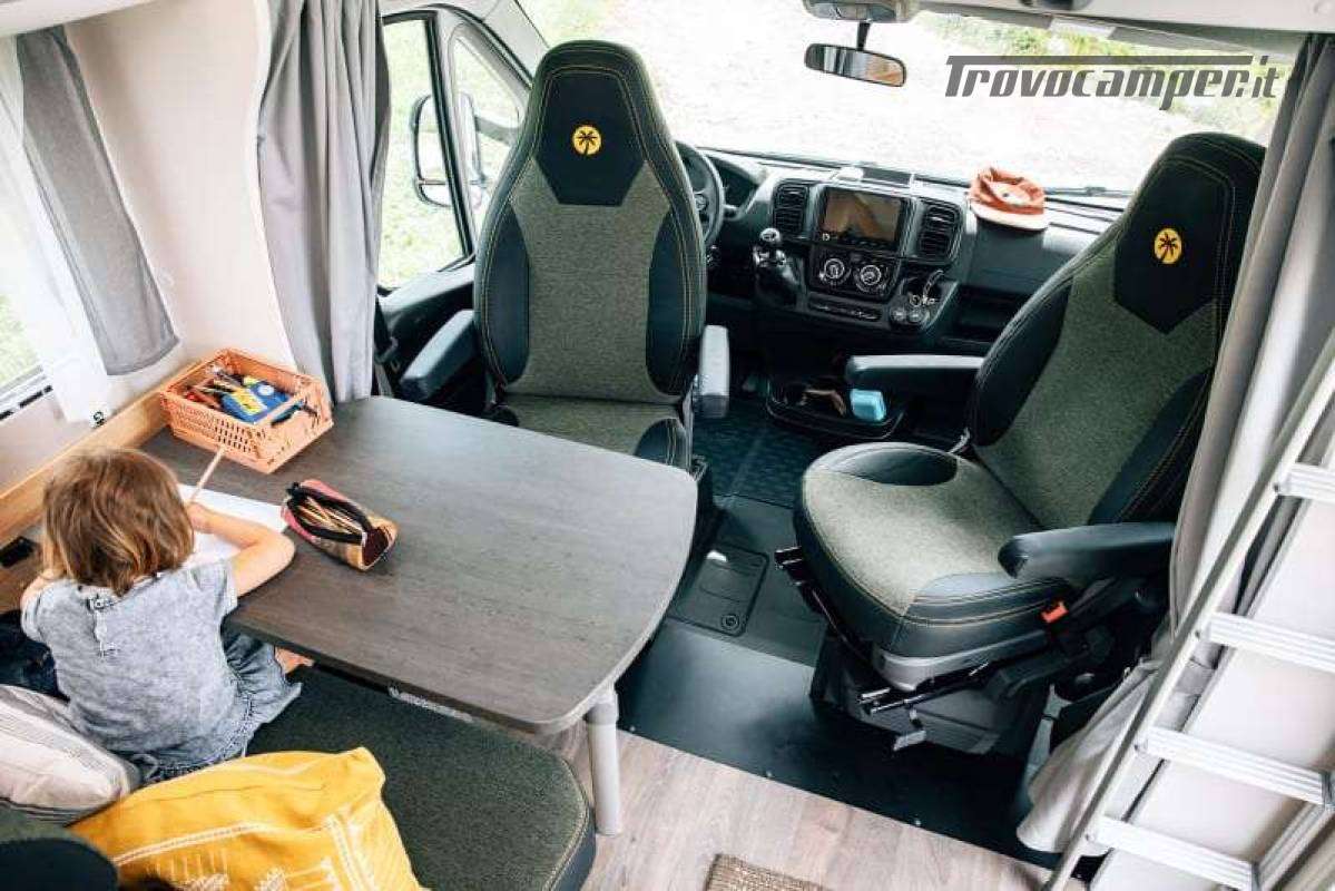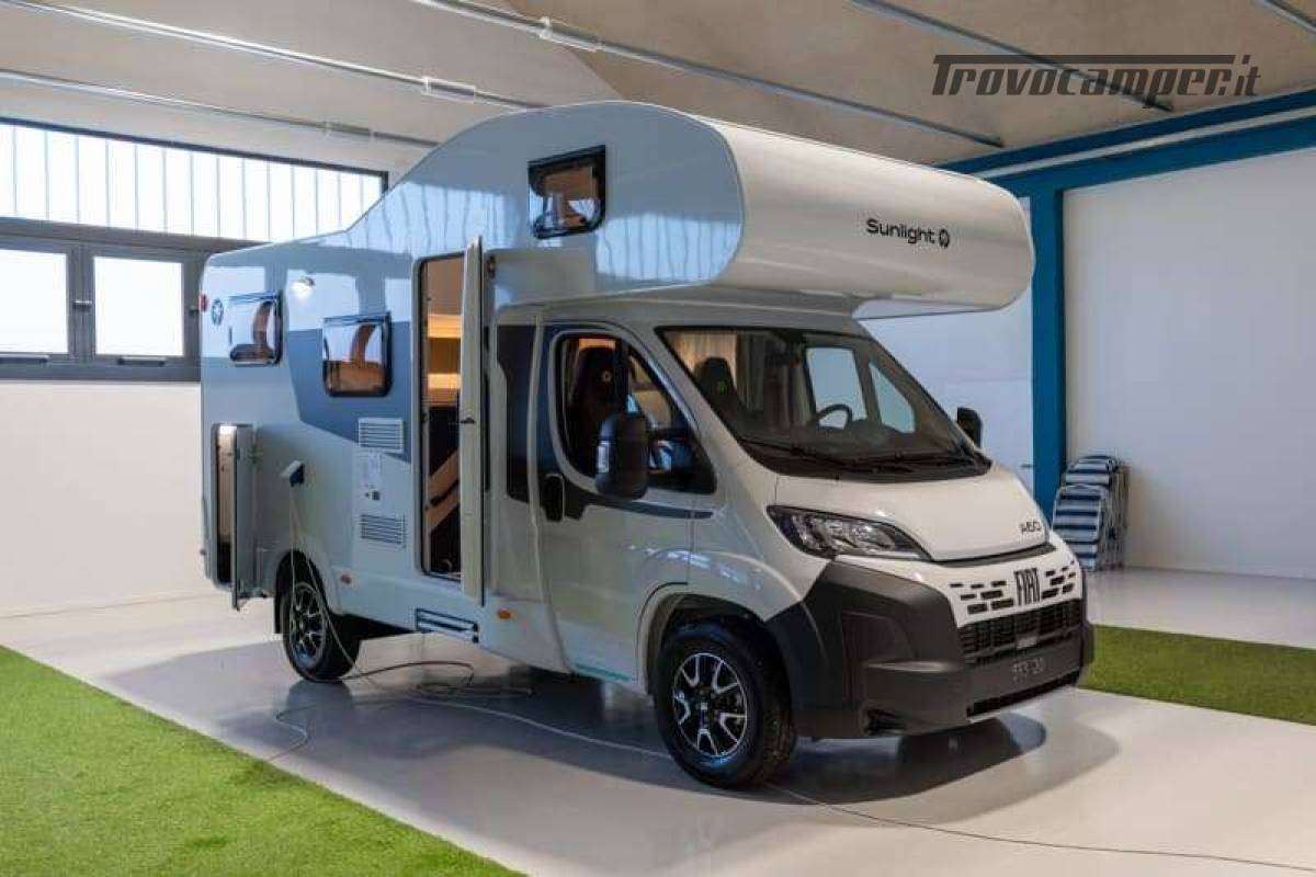 Il Sunlight A60 è un camper mansardato che unisce compattezza esterna a una sorprendente spaziosità interna. Con una lunghezza contenuta di 594 cm, si guida facilmente anche nei centri urbani e in montagna, rimanendo sotto i 6 metri per agevolare parcheggi e manovre. Nonostante le dimensioni ridotte, offre 4 posti omologati e 4 posti letto, risultando ideale per famiglie o coppie dinamiche.