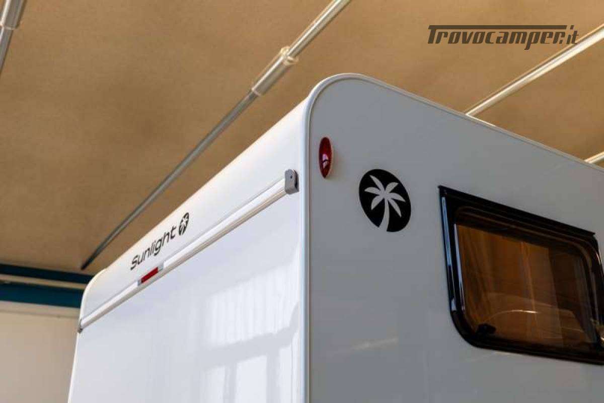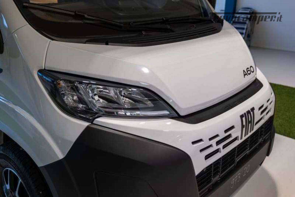 Basato su autotelaio Fiat Ducato 2.2 Multijet, il Sunlight A60 offre affidabilità, potenza e semplicità di manutenzione. Il passo di 345 cm contribuisce alla stabilità su strada, mentre il telaio è progettato per durare, anche se nella versione fornita la struttura non è specificata (di solito vetroresina o alluminio). Il garage posteriore, accessibile da entrambi i lati, completa l’offerta con spazio utile per bici, attrezzatura sportiva o bagagli voluminosi.