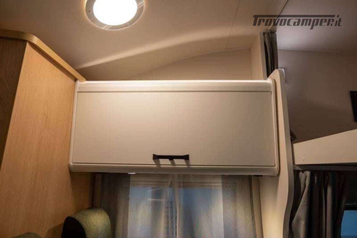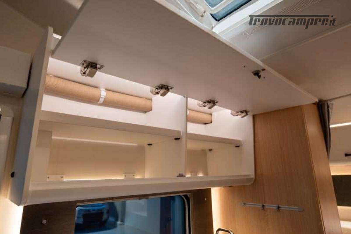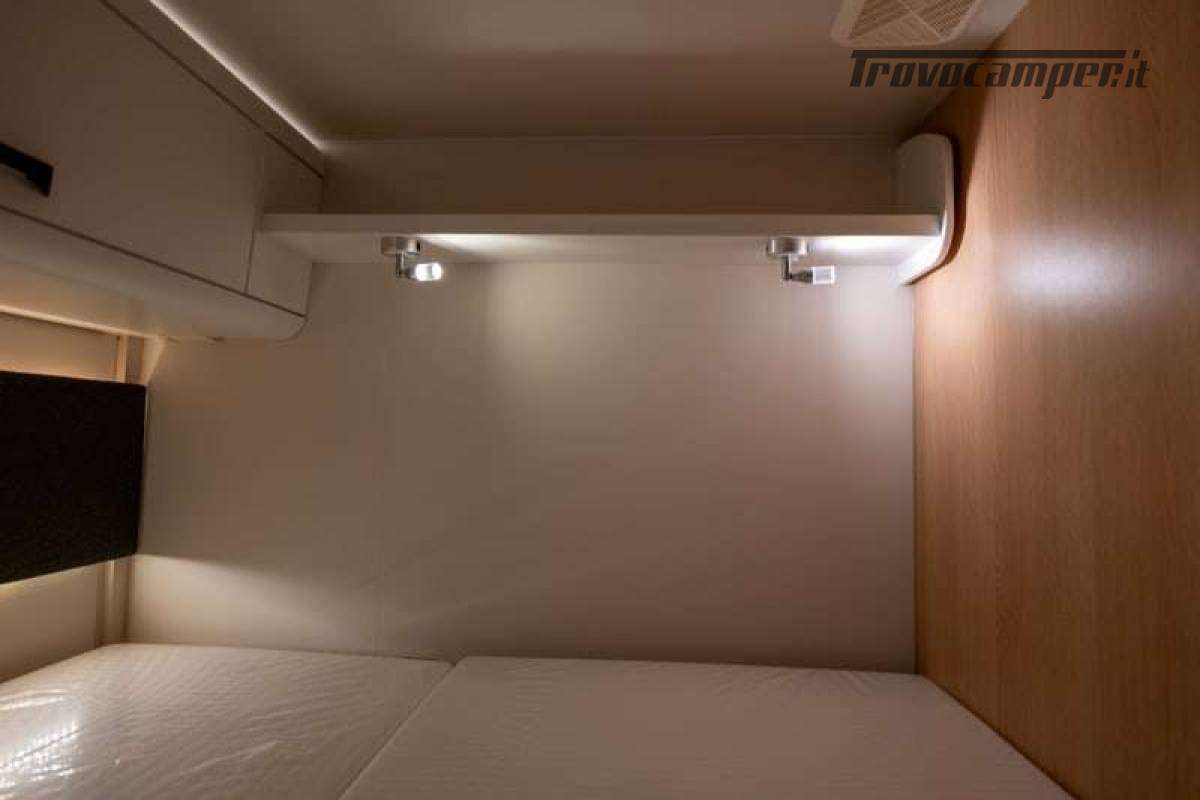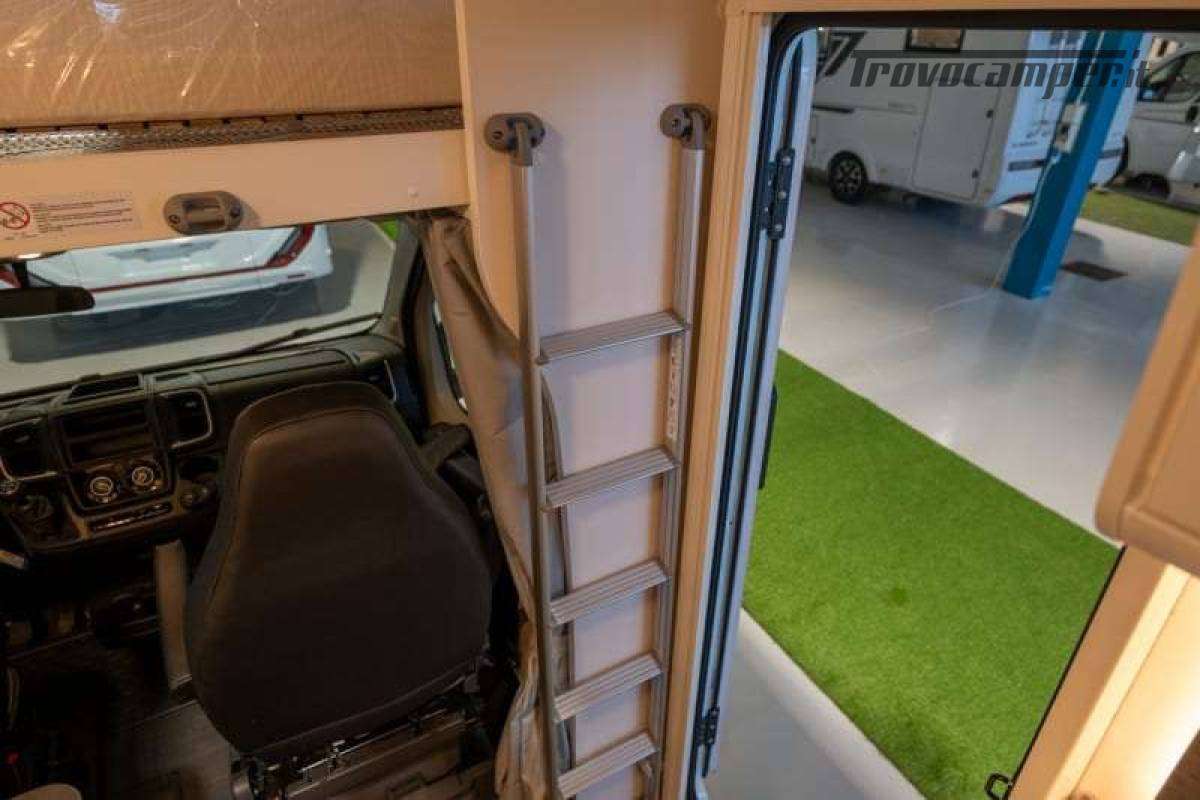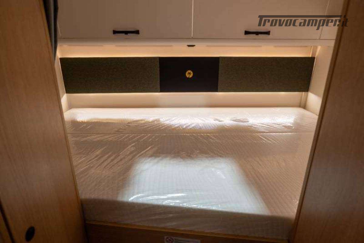 All’interno troviamo una disposizione funzionale, con letto matrimoniale in mansarda (210 x 160 cm) e letto trasversale posteriore (210 x 140/130 cm), che garantiscono riposo comodo per tutti gli occupanti. La dinette accogliente, un armadio ben posizionato, e numerosi spazi contenitivi rendono il soggiorno a bordo comodo e ben organizzato.