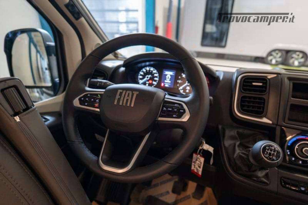 Costruito su base Fiat Ducato 140 CV, il Sunlight Cliff 600X è dotato di un passo di 404 cm che garantisce ottima maneggevolezza e stabilità. La massa complessiva ammessa di 3500 kg consente la guida con patente B, rendendolo perfetto per la coppia dinamica o la famiglia che ama viaggiare in libertà.