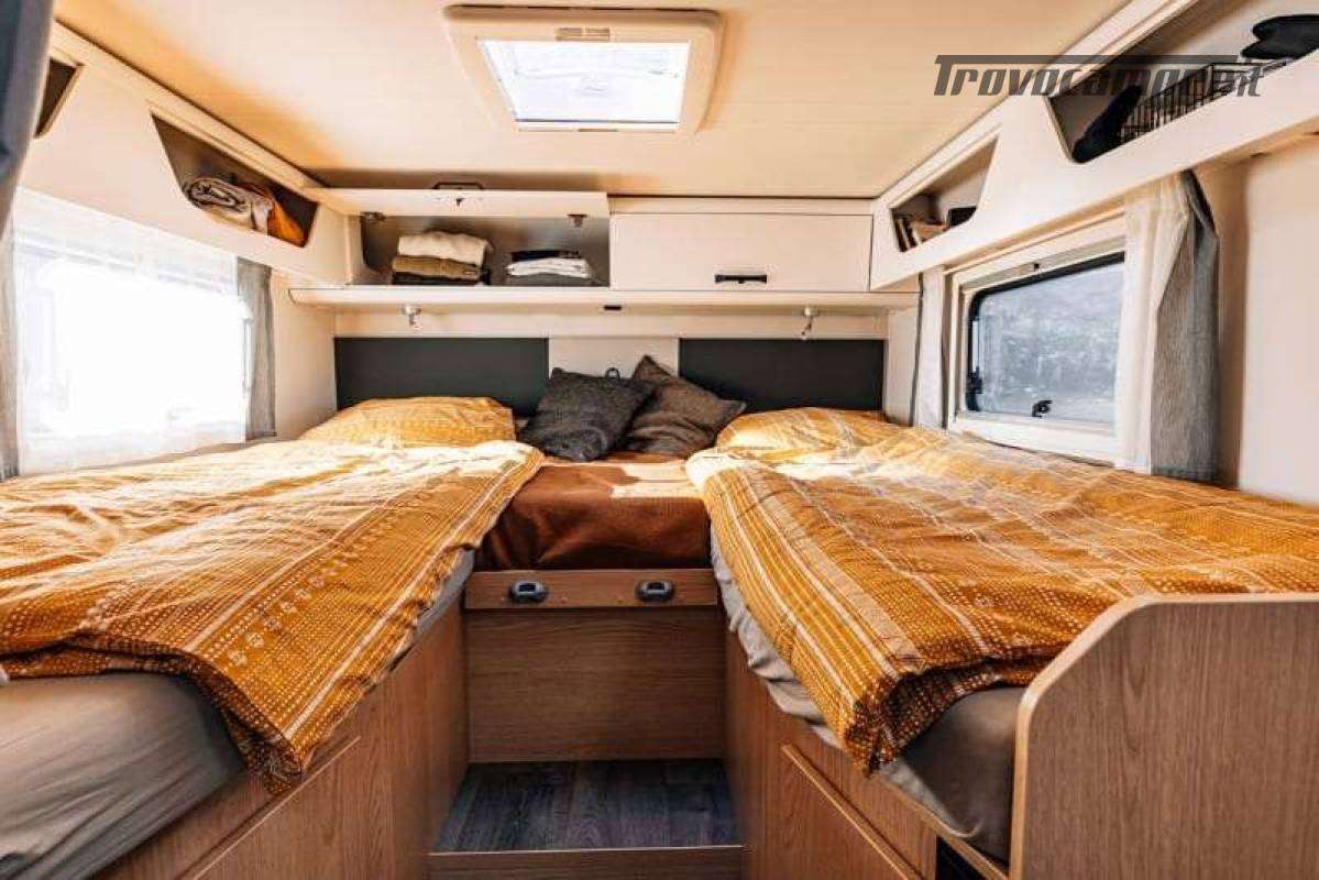 Letti gemelli posteriori trasformabili in maxi matrimoniale: 210 x 80 / 215 x 80 / 210 x 168 cm
