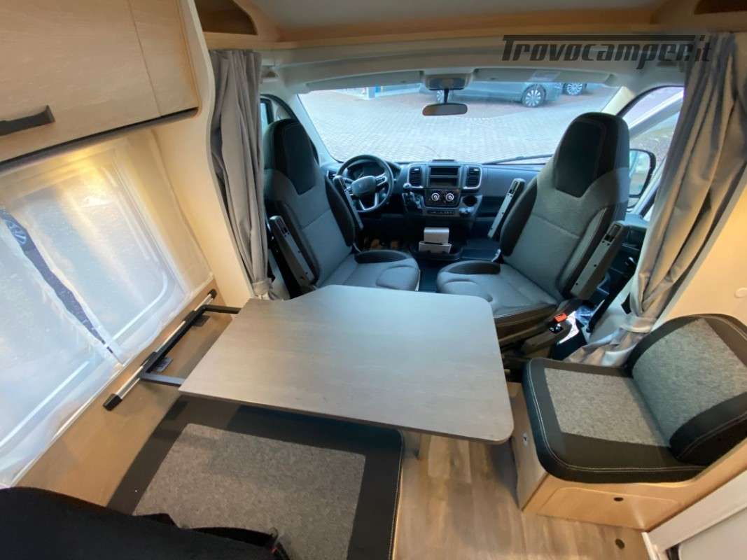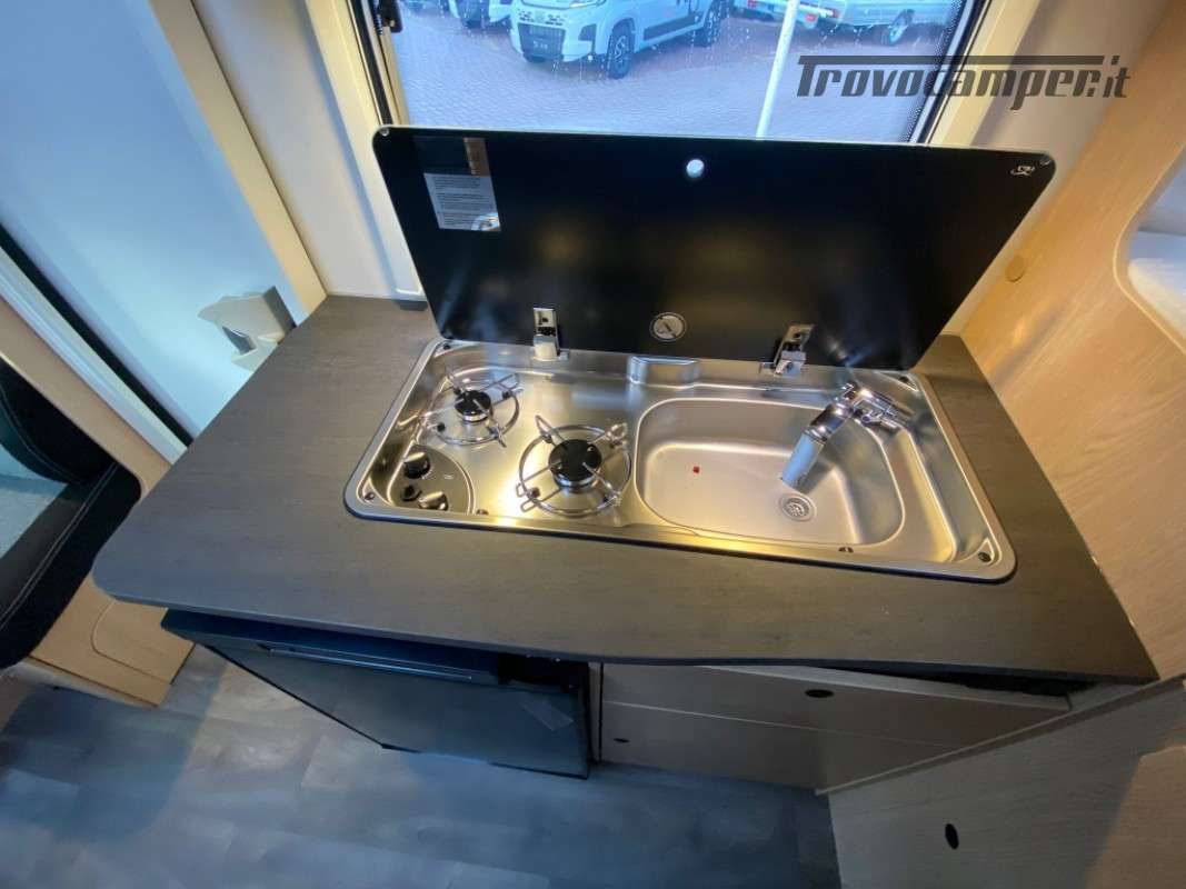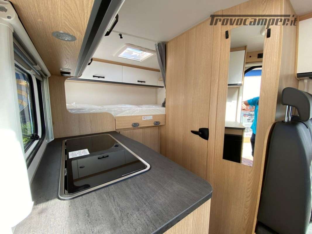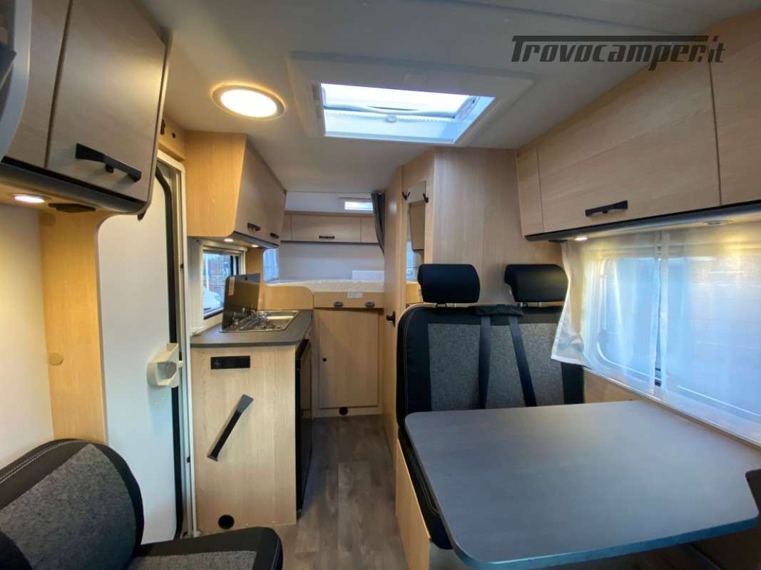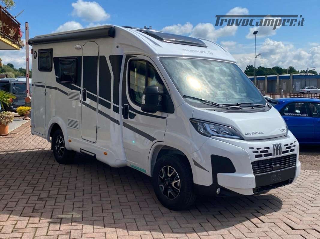 Sunlight Serie V: si tratta di semintegrali stretti praticamente quanto il furgonato, diventano una scelta particolarmente allettante per chi al camper associa la bicicletta, e quindi un bel garage, e soffre di un senso di claustrofobia tra le pareti più campanate del furgone. Più abitabilità, più stivaggio, generosa dotazione di serie, davvero completa, e un prezzo davvero competitivo. Grazie al passo ridotto da 345cm , è un profilato agile quanto un van 540!